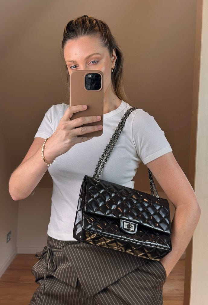 A modern reissue of Chanel’s iconic 2.55, this late 2000s edition offers timeless appeal with a nod to the original 1955 design. Crafted in rich chocolate brown quilted patent leather, it features the signature mademoiselle turn lock and all metal chain strap that can be worn doubled on the shoulder or long across the body.