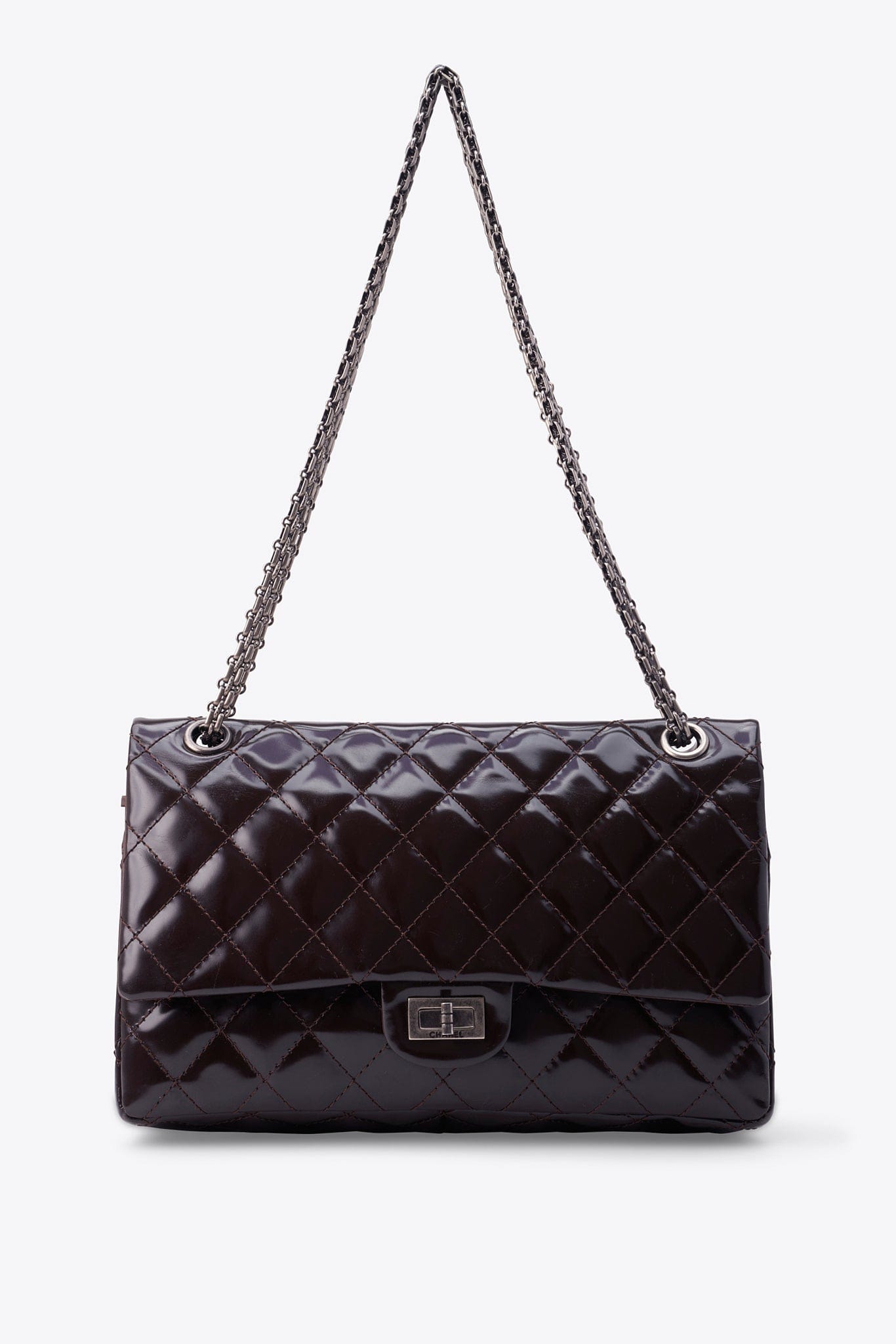 Chanel 2.55 Reissue Quilted Brown Patent Shoulder Bag