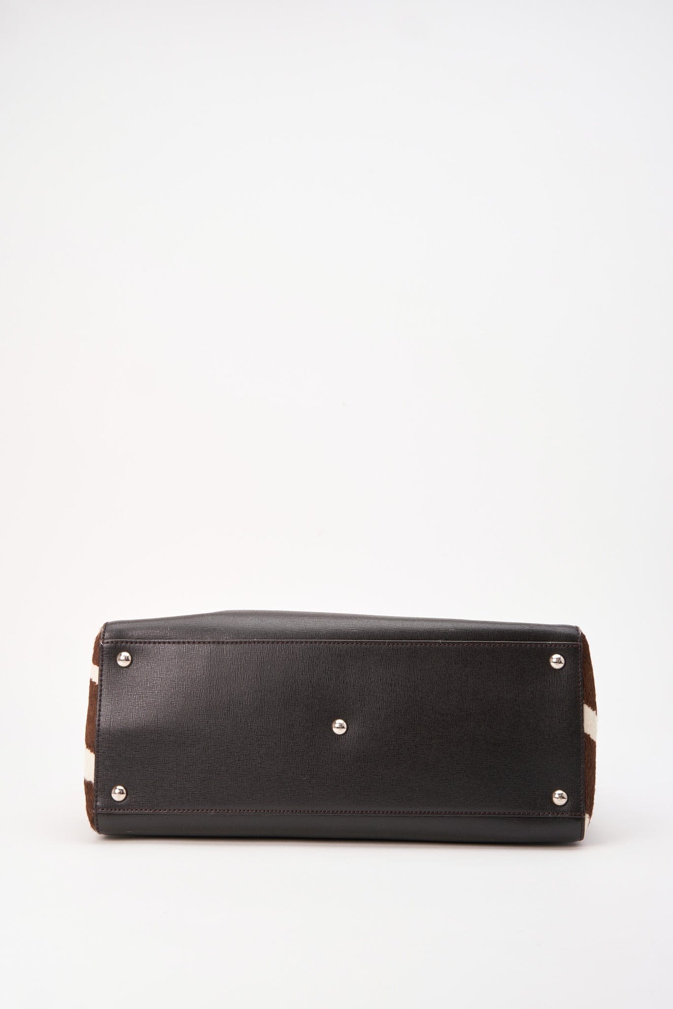 A beautiful bag for A/W the Fendi 2jours in a brown and white printed calf hair, textured brown leather and silver/enamel hardware.