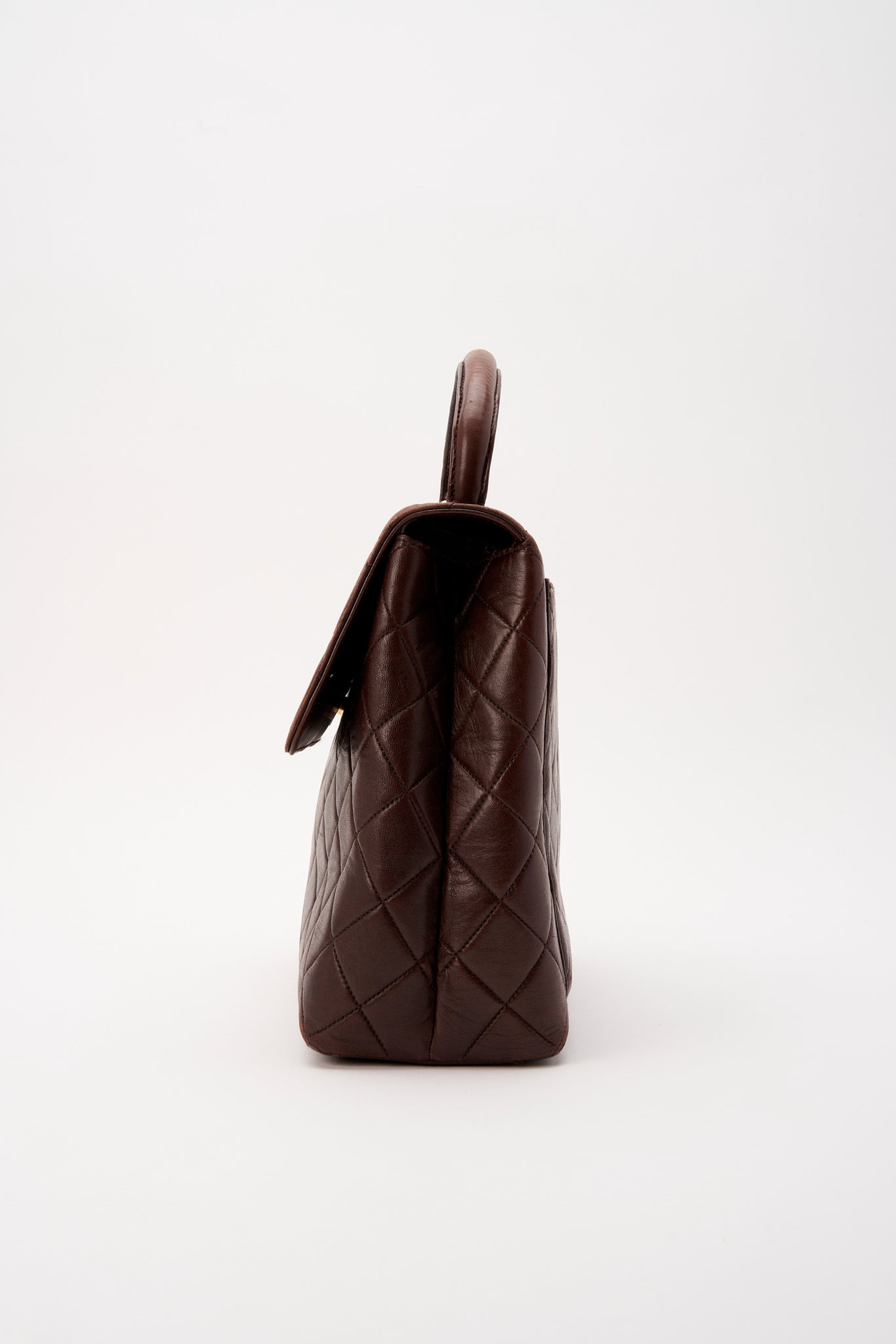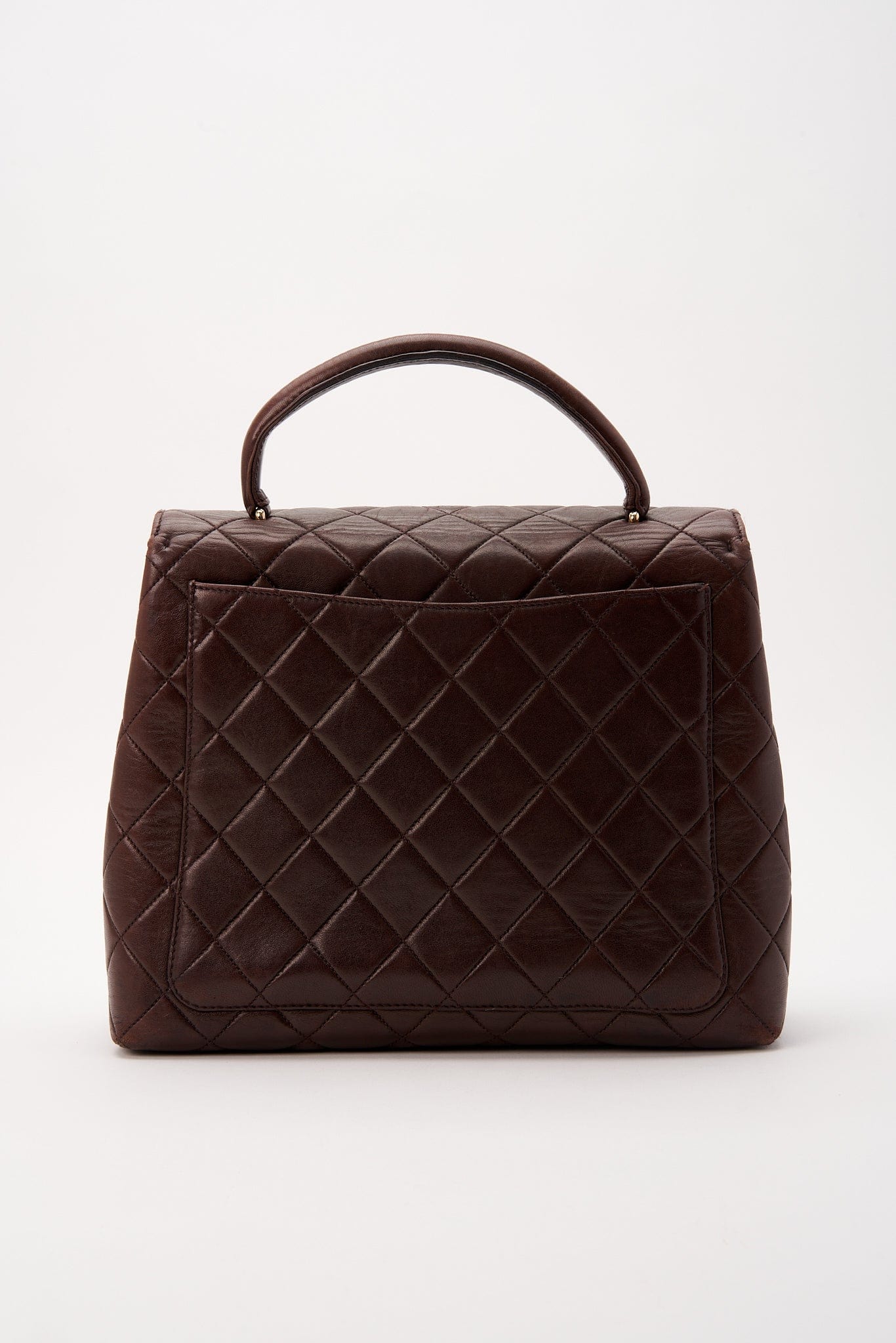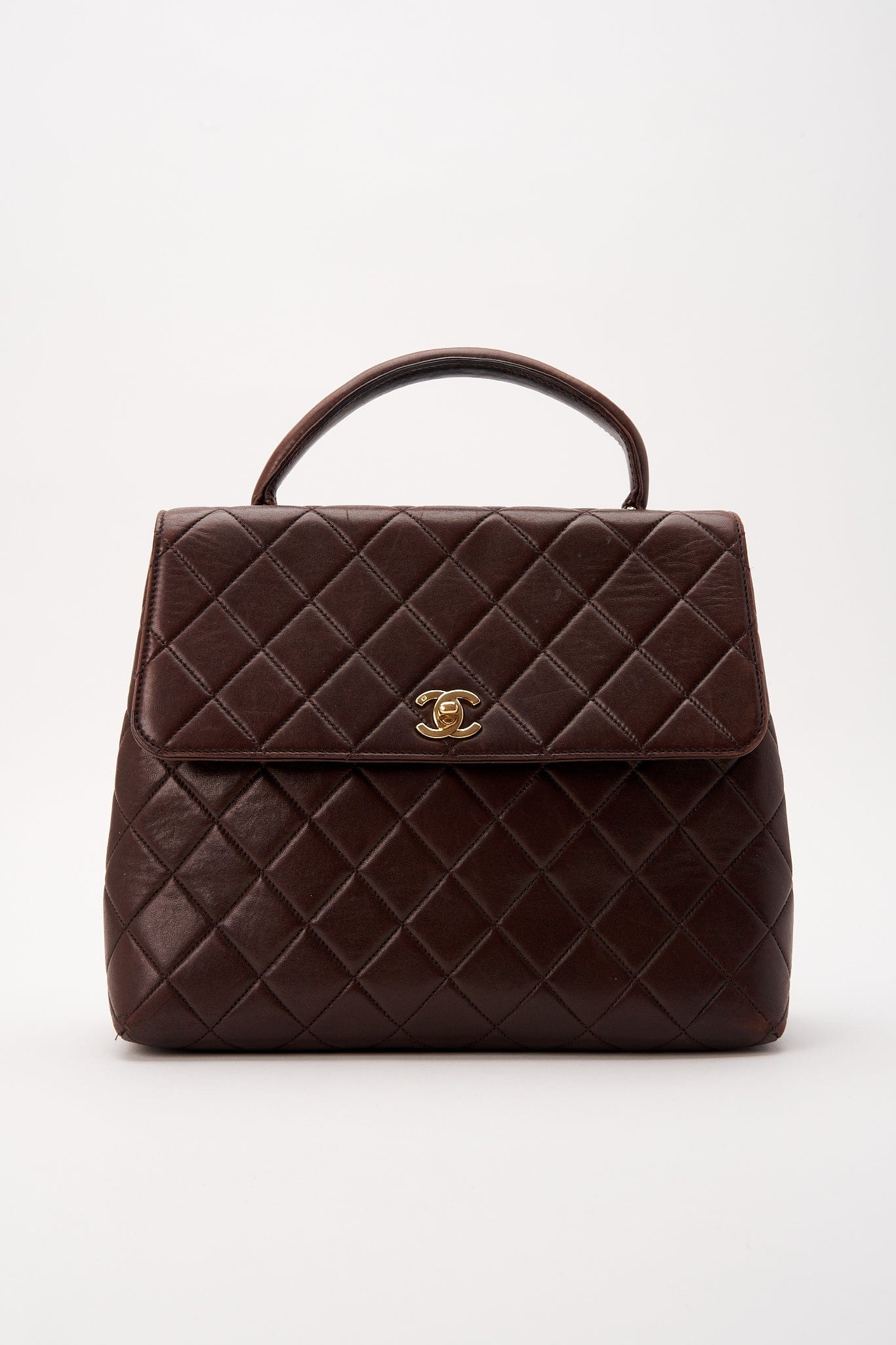 A beautiful vintage Chanel Kelly bag. Crafted from a chocolate brown quilted lambskin leather featuring the iconic CC turn-lock and 24k gold plated hardware.