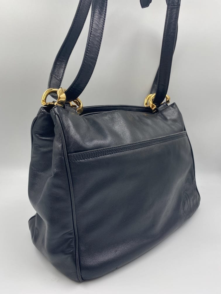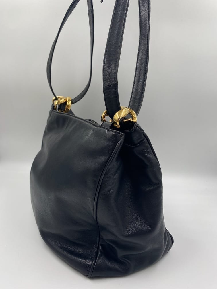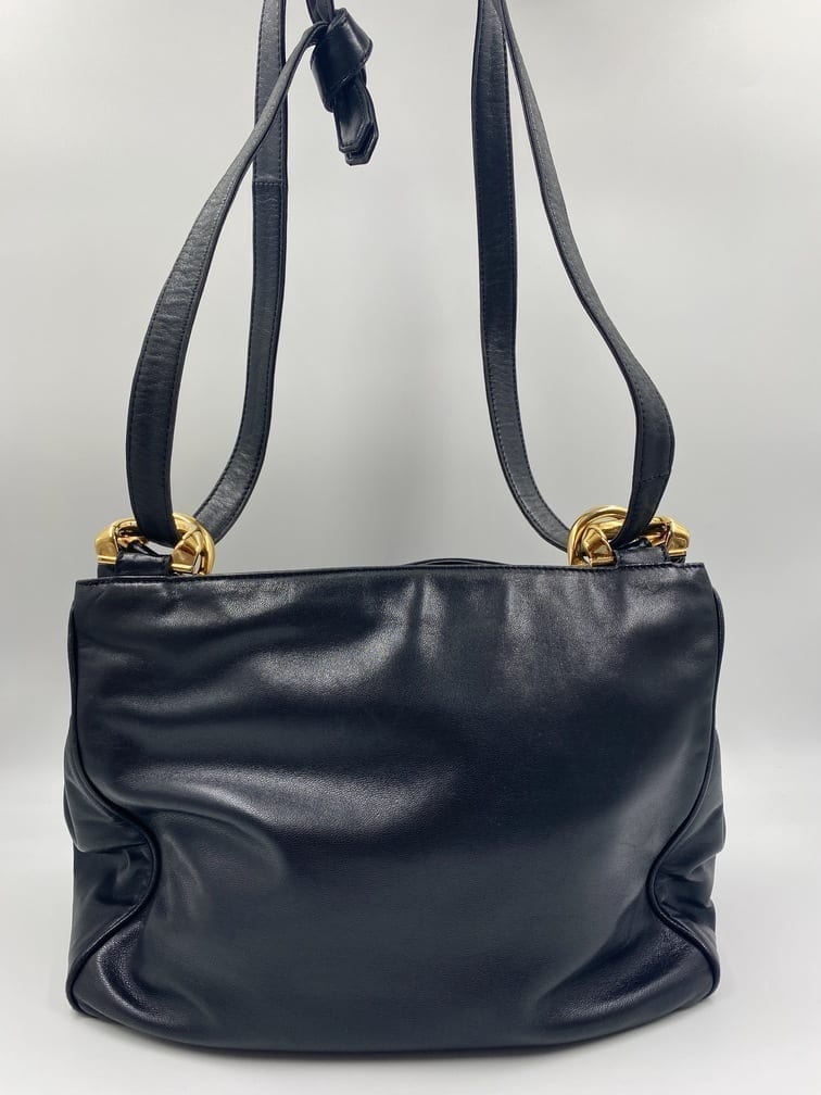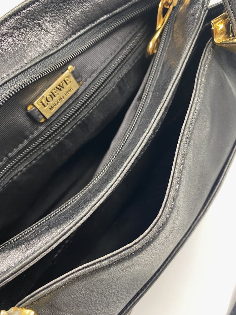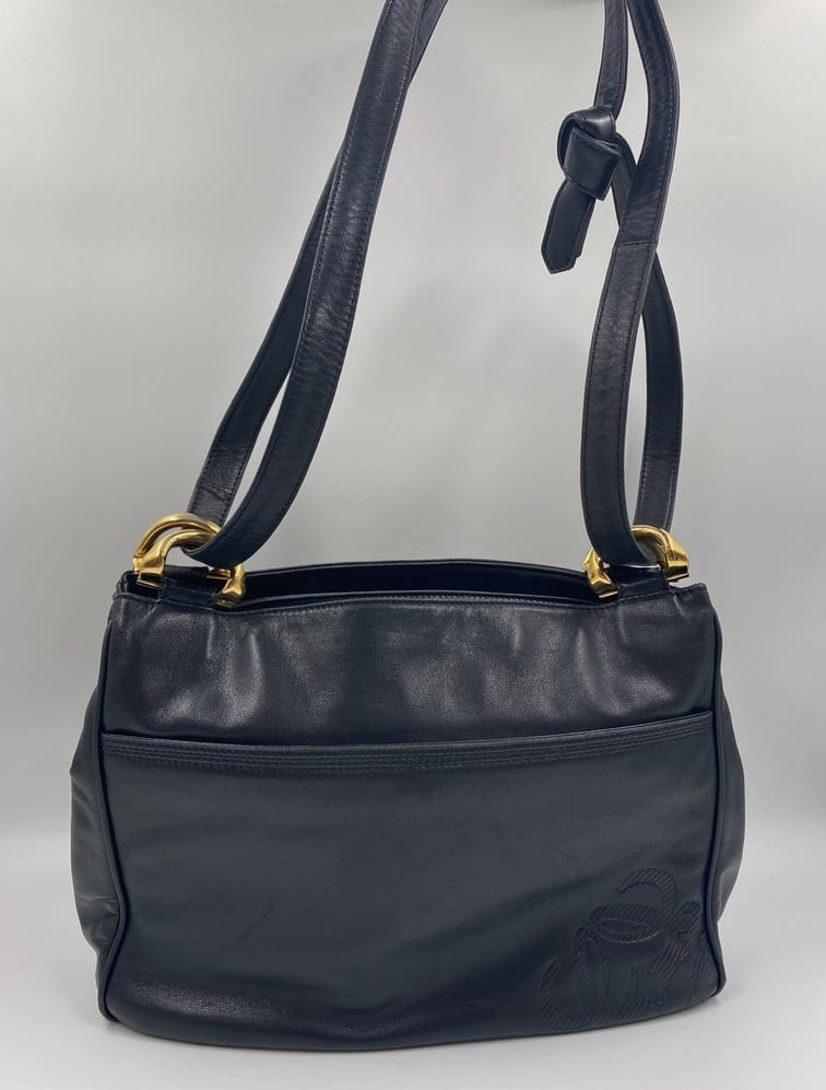 Vintage Loewe Black Leather and Nylon Sling Bucket Bag