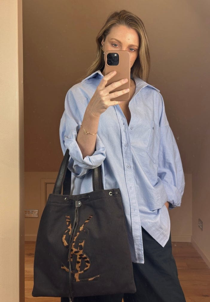 Vintage YSL Leopard Printed Calf Hair and Canvas Tote Bag