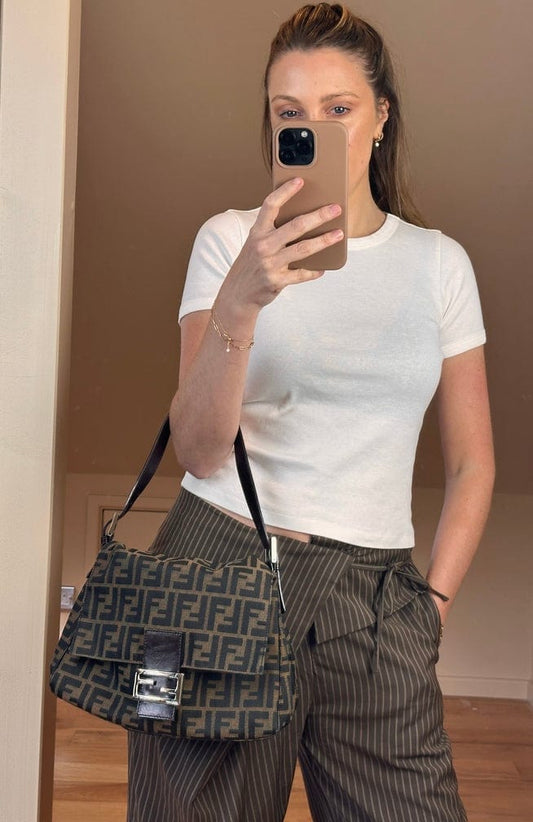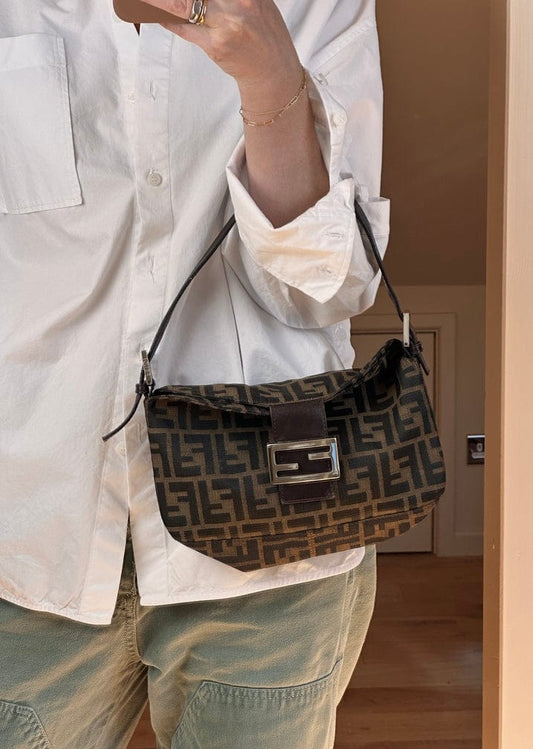 Vintage Fendi Mamma Baguette - lienzo de Zucca Beige/Brown