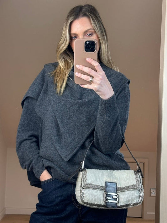 Baguette de mamá fendi vintage en cachemir gris tejido
