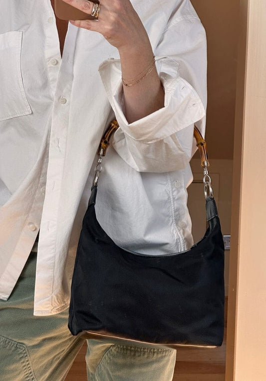 Introducido en la década de 1940, Gucci ha lanzado una variedad de diseños destacados distinguidos por su mango de bambú esculpido. Debido a la escasez de materiales convencionales como resultado del racionamiento de materiales durante la Segunda Guerra Mundial, los artesanos de Gucci tuvieron que ser innovadores y decidieron usar el bambú, que todavía estaba disponible y podía importarse desde Japón, a la moda mangos bruñidos para sus bolsos. Los bolsos de bambú de Gucci siguen siendo icónicos y buscados.
