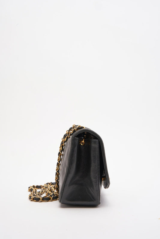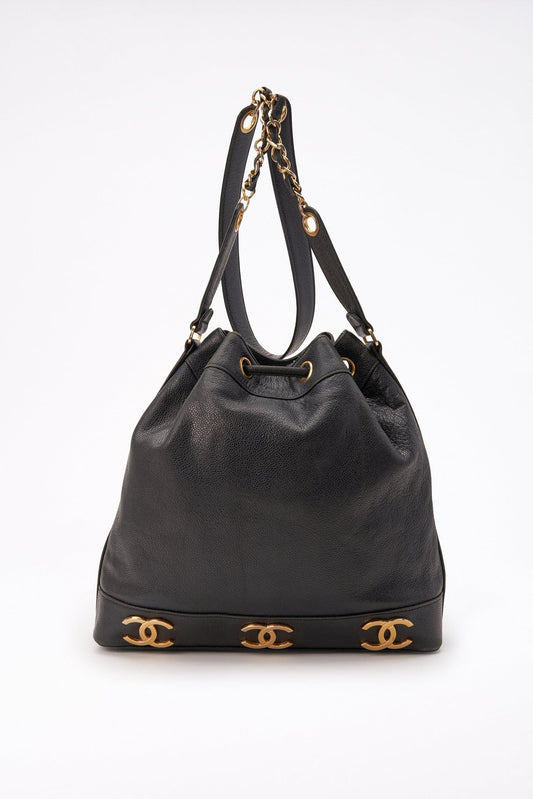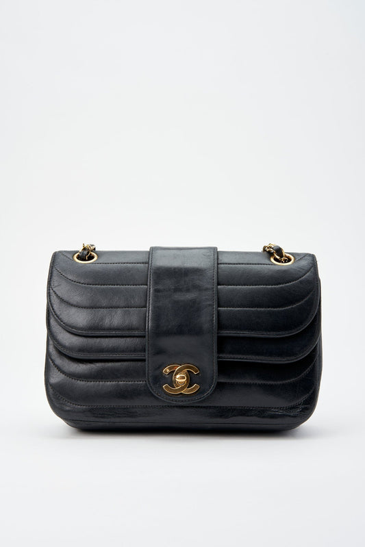 Funda single de media luna negra vintage de Chanel con hardware chapado en oro de 24k