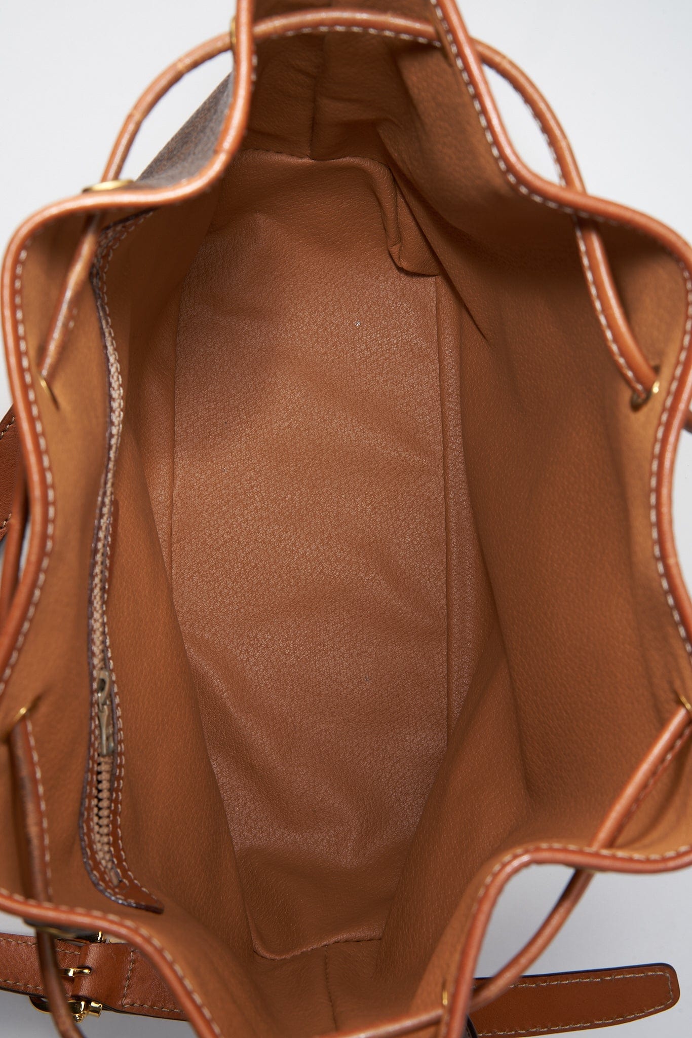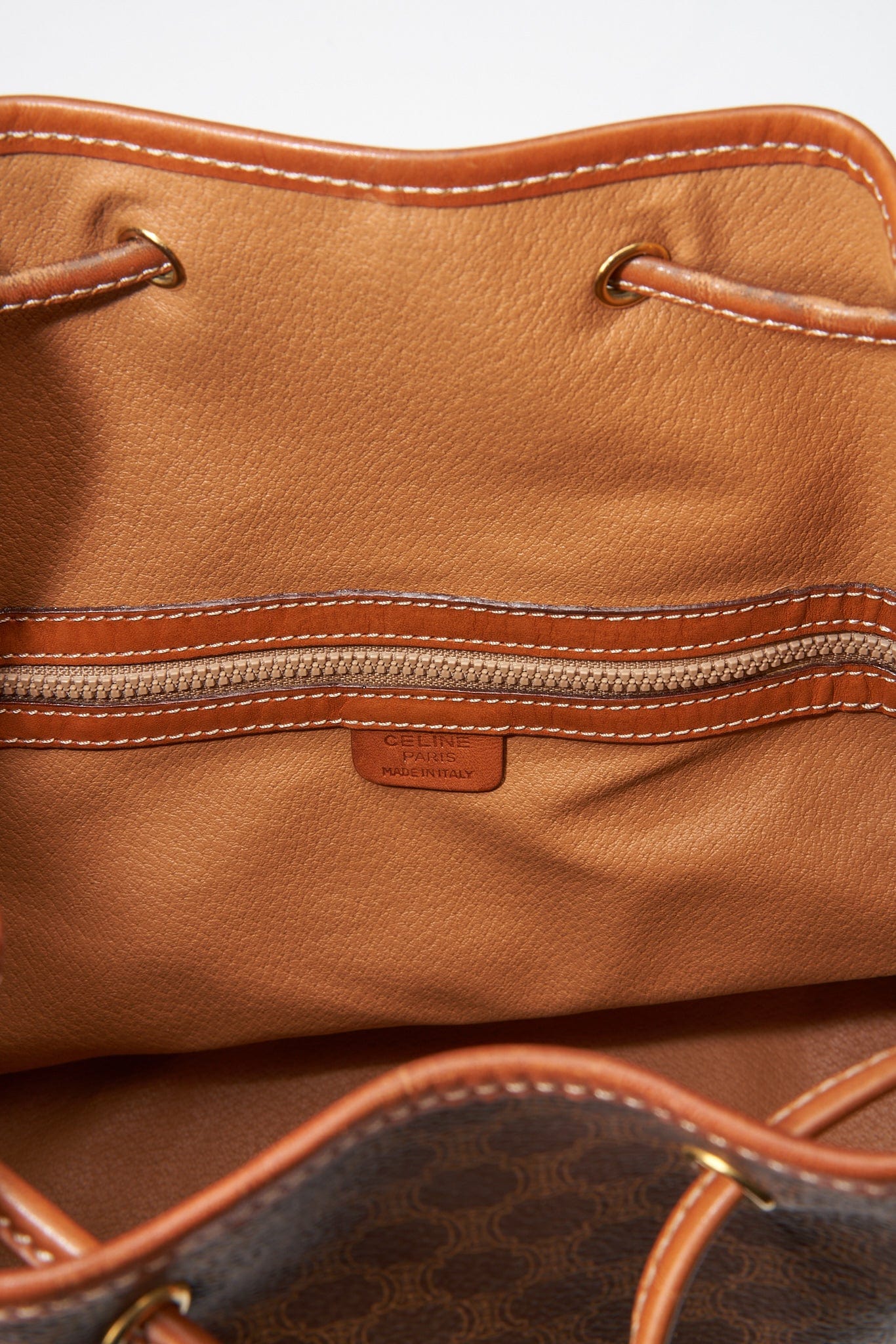 Hecho a partir de un lienzo de cuero liso tostado, Celine Monogram con un cierre de cordón.