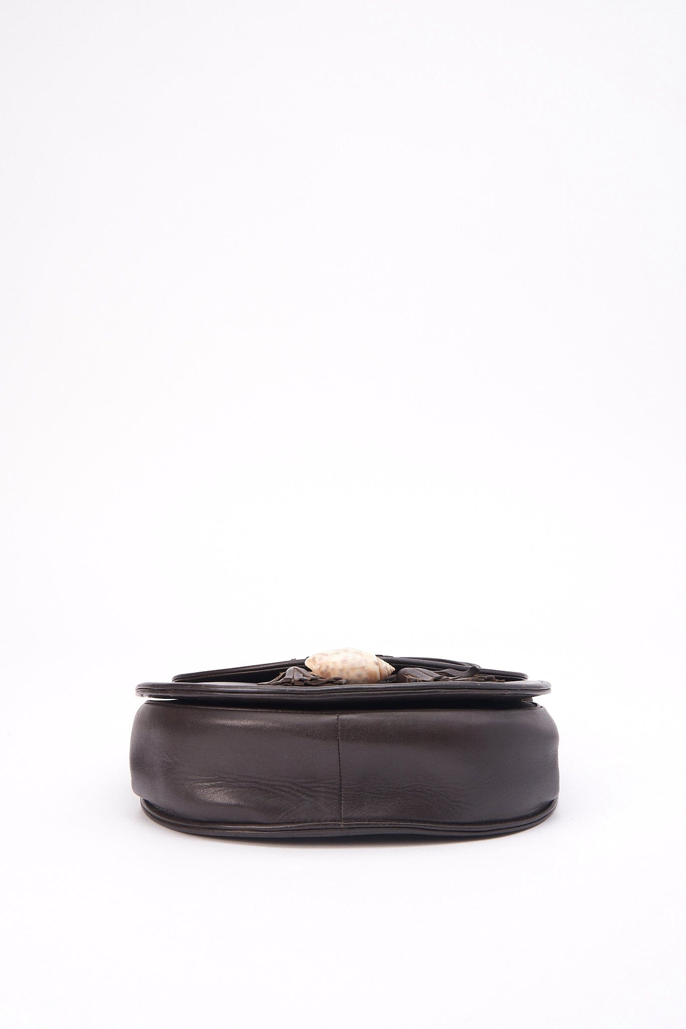 Una elegante bolsa de estilo Crossbody YSL hecha de un cuero marrón suave y sedoso, con detalles de concha y borla. Este estilo es atemporal y mínimo.