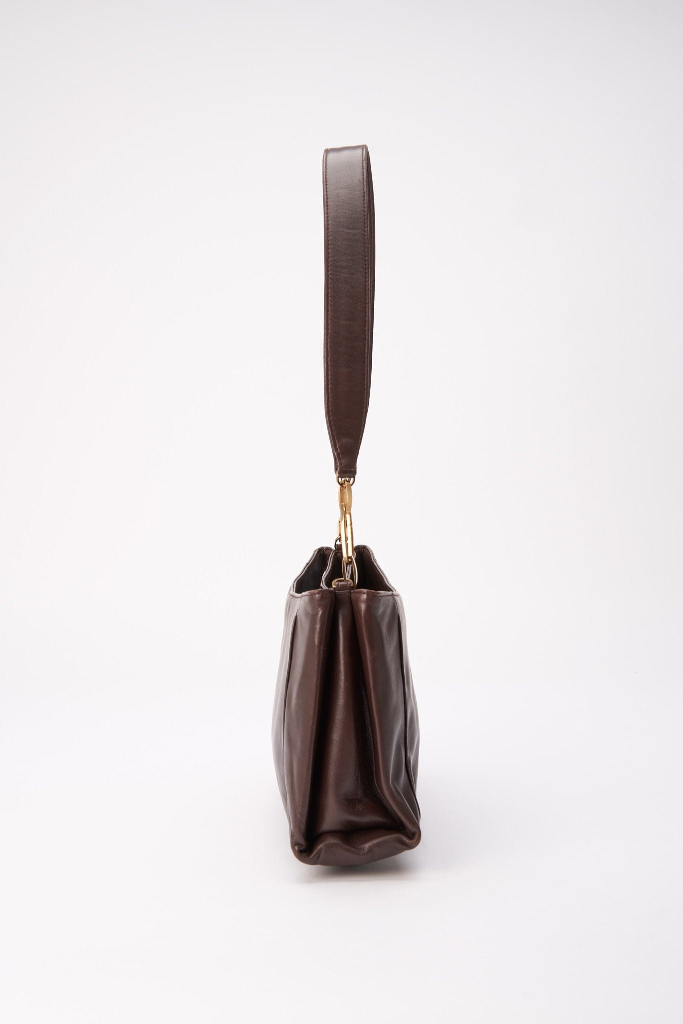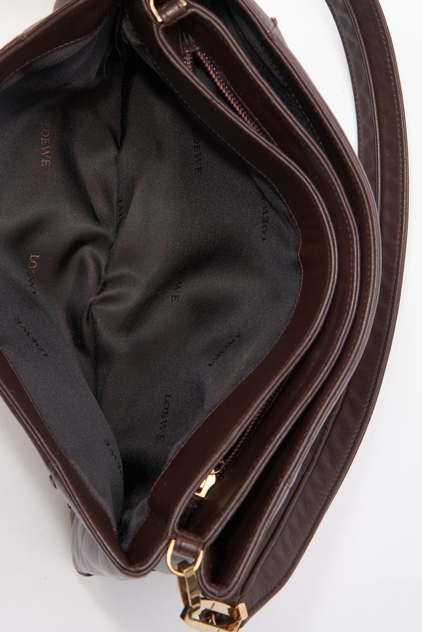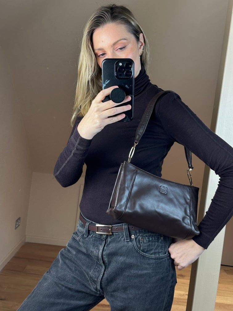 Así que no deberíamos tener favoritos, pero esta Loewe vintage es la perfección. Hecho de cuero marrón con el monograma Loewe sutilmente en relieve en el frente. La bolsa tiene un compartimento con cremallera principal con dos bolsillos deslizantes a cada lado. La vista lateral es particularmente encantadora con un gran diseño doblado. El mango tiene un gran detalle de la cadena de oro y el tirador es oro con Loewe grabado. En el interior hay un bolsillo con cremallera para objetos de valor.