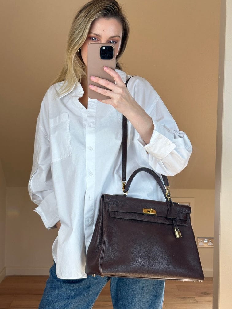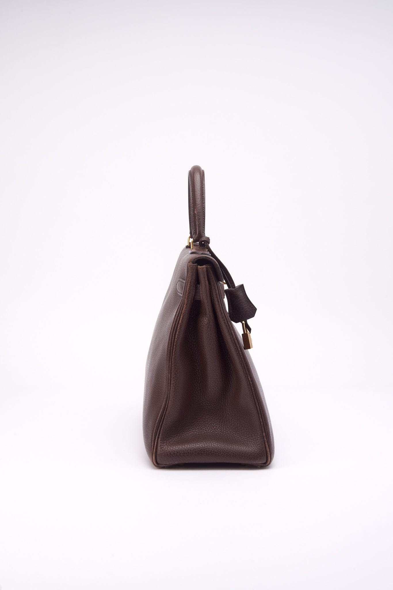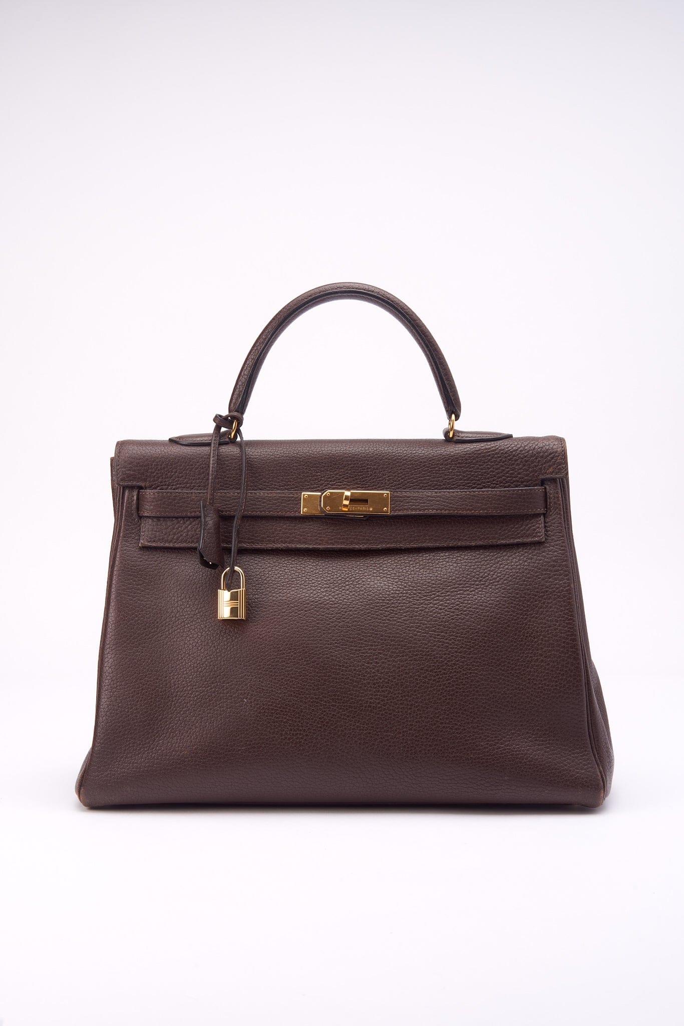 Hermès Kelly Returne 35 en un cuero marrón Taurillon Clemence