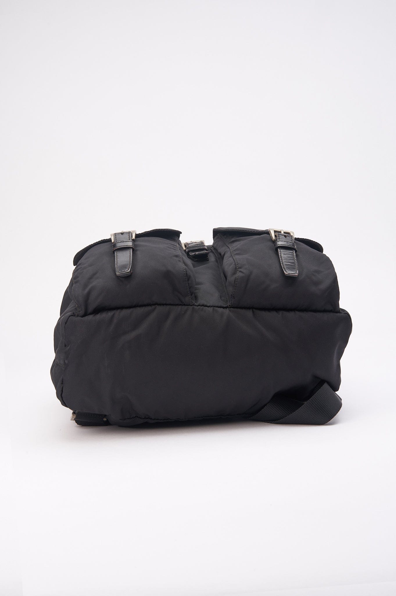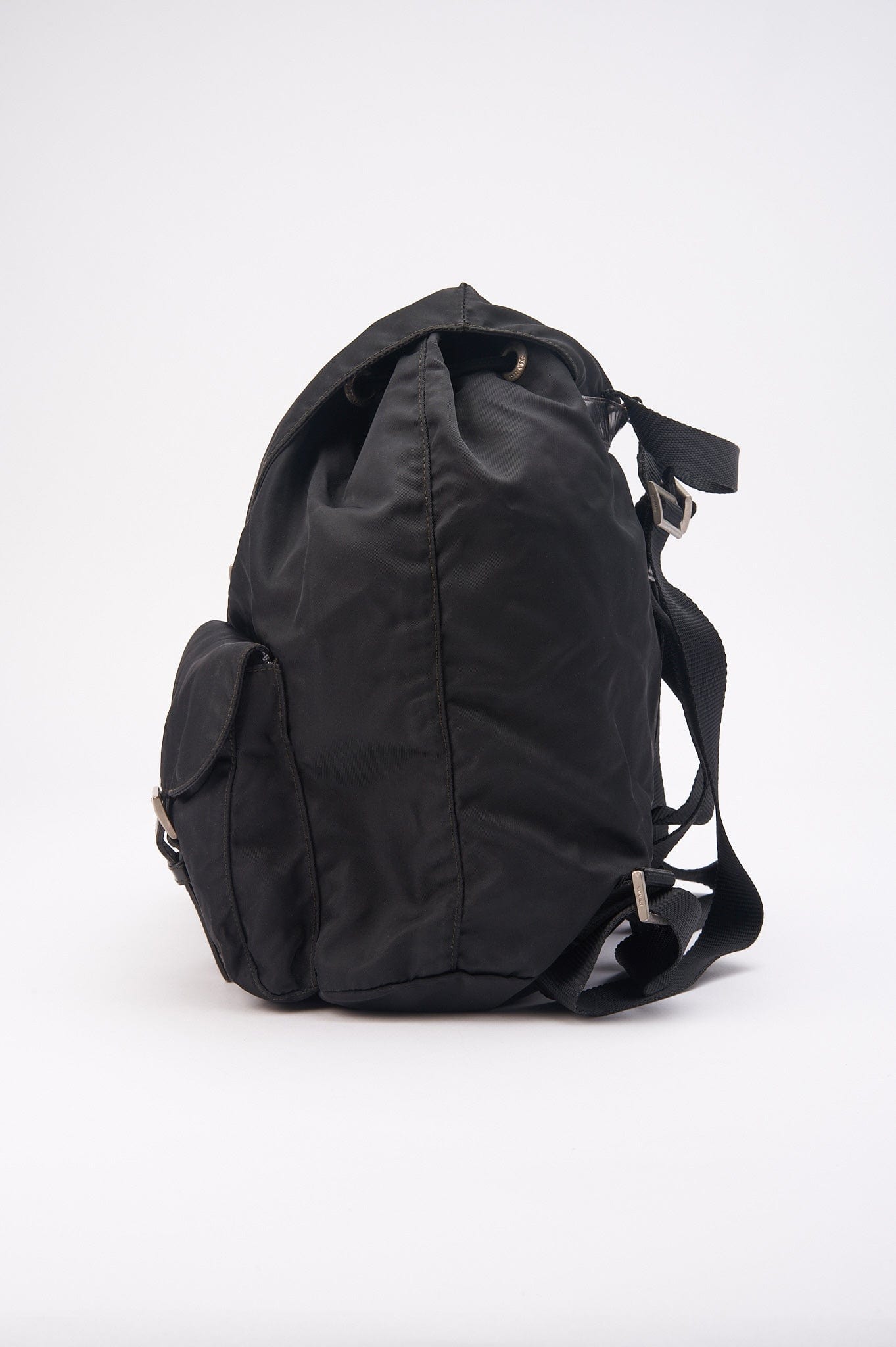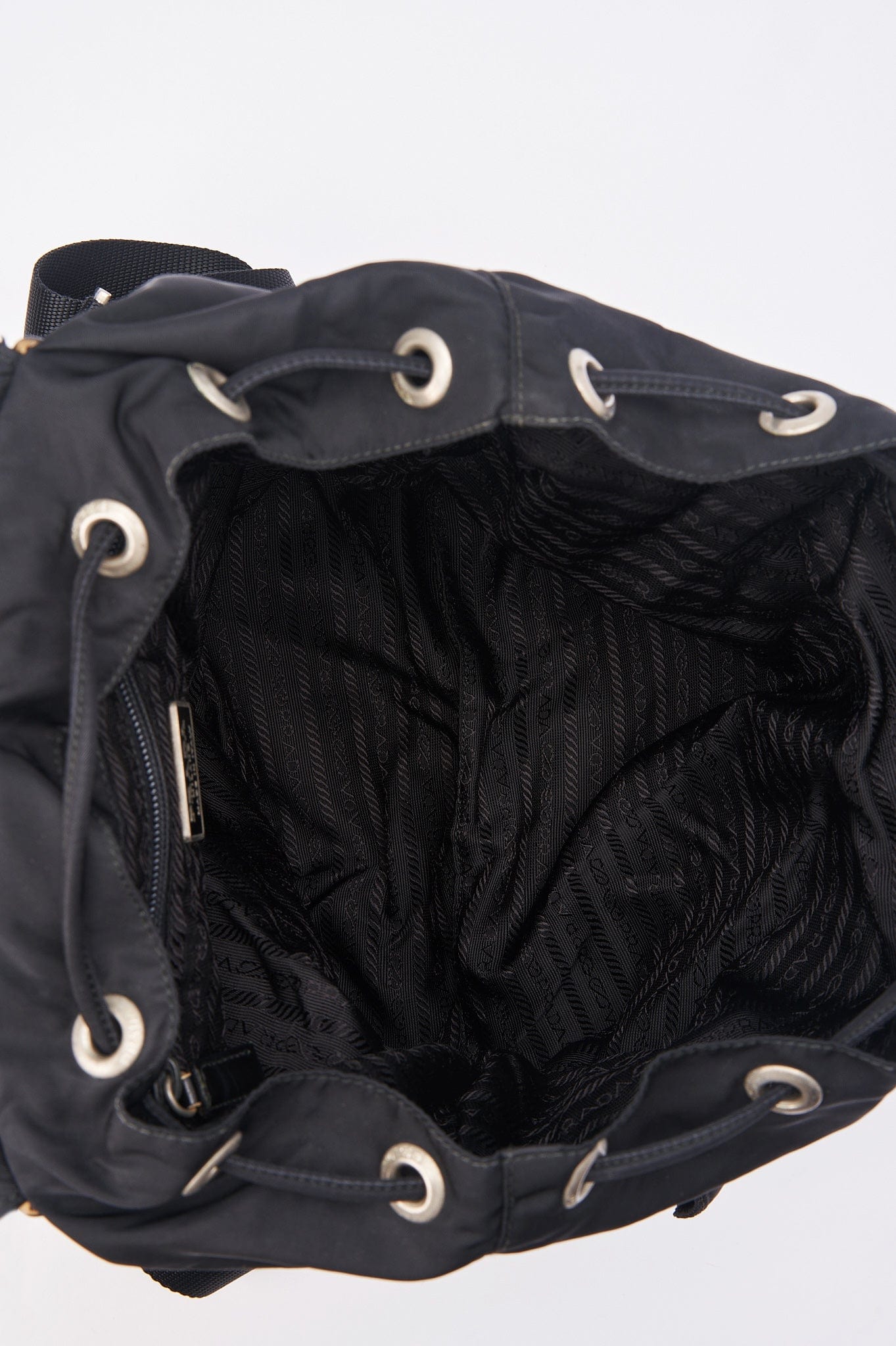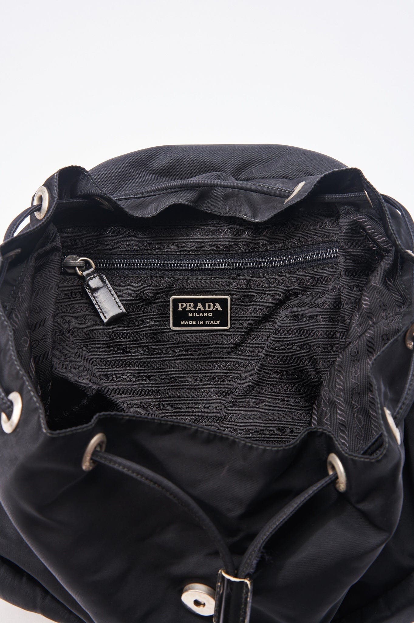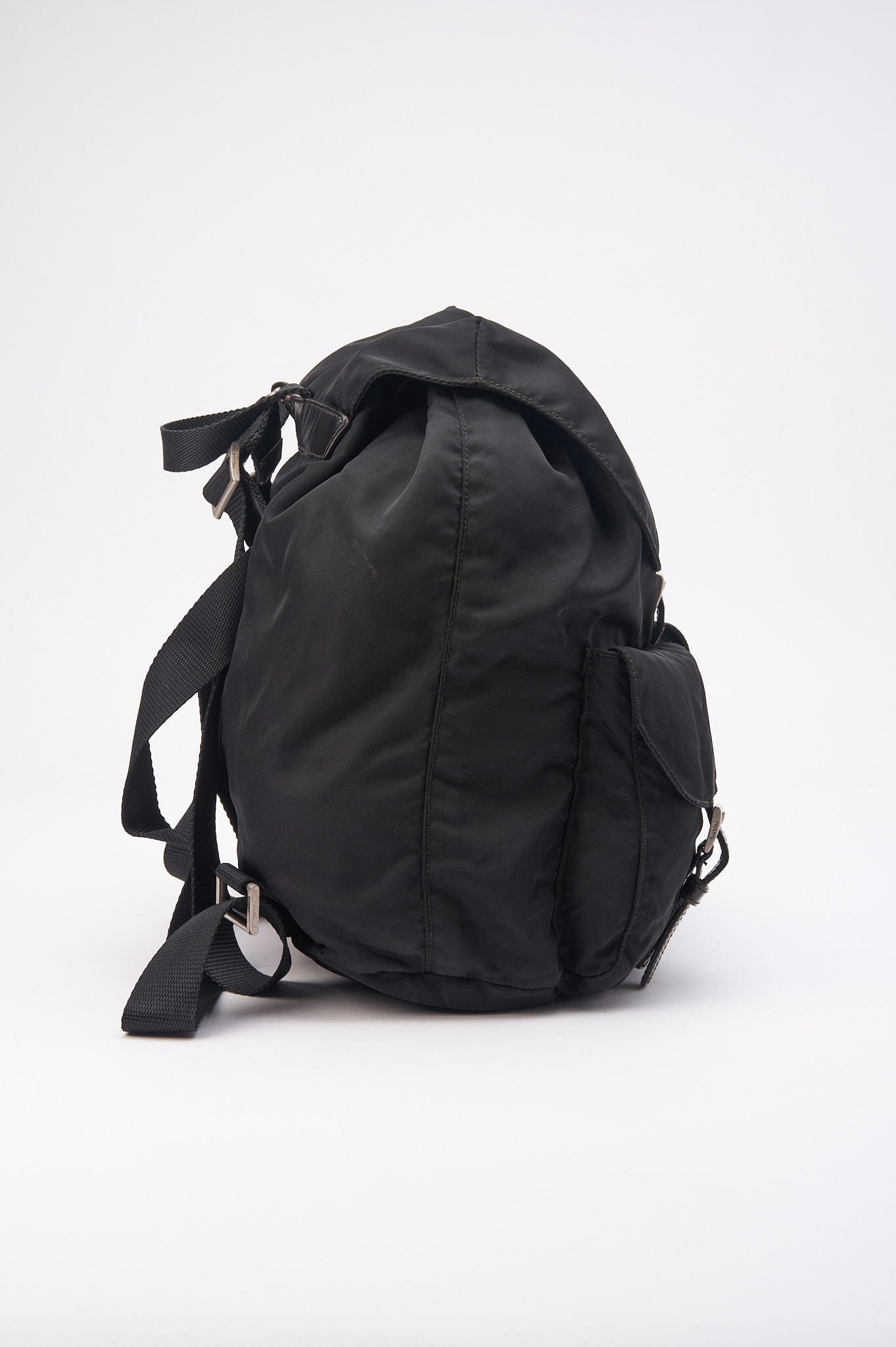 Cuando Prada lanzó su mochila Nylon original en 1984, fue un éxito instantáneo. Esta mochila de nylon con un diseño moderno y minimalista está decorado con el logotipo del triángulo del esmalte Prada. Debajo de la aleta con una correa de cuero y la hebilla, hay un cierre de cordón.