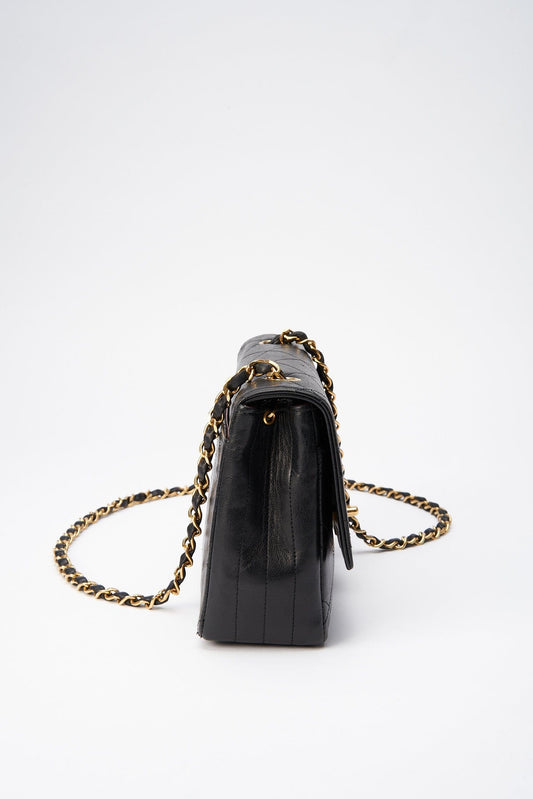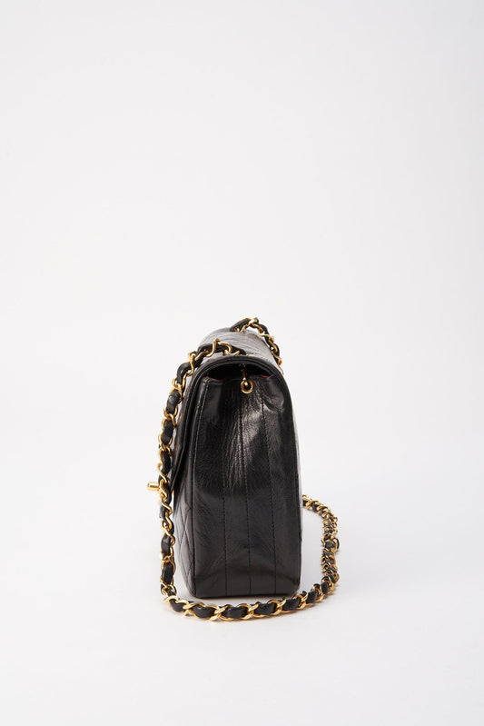 Sac d'embrayage en cuir noir Chanel Vintage avec quincaillerie plaquée à l'or 24K
