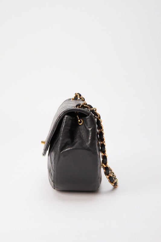 Vintage Chanel Classic Double Valm Sac Medium Black Patent Cuir avec quincaillerie plaqué or 24K