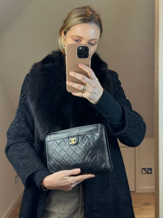Borsa da frizione in pelle nera Chanel vintage con hardware oro 24k oro