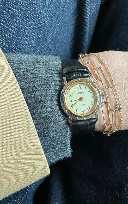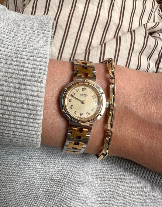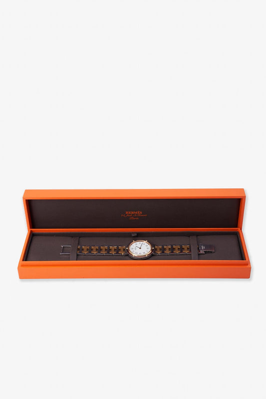 Scopri l'artigianato senza tempo con la nostra collezione di orologi Hermès usati. Ogni orologio è selezionato a mano per la sua eleganza, precisione e condizione, quindi ispezionata con cura per garantire che sia in perfetto ordine di lavoro. Con la loro miscela di design raffinato e in stile Hermès, questi orologi sono fatti per essere indossati e preziosi. Esplora i nostri ultimi arrivi e trova un orologio che porta la classica raffinatezza in ogni momento.