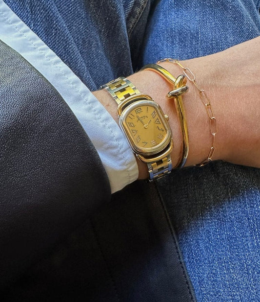 Orologio oro oro oro oro e argento vintage - dimensioni medium