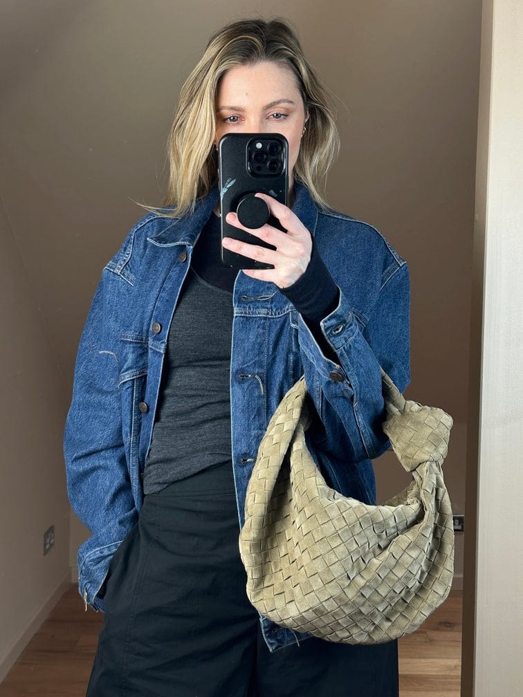 Bottega Veneta's Jodie Teen bag has been on the wishlist of fashion insiders since it was launched. This style is made from taupe Intrecciato-woven suede and has a knotted handle that looks ever so modern.