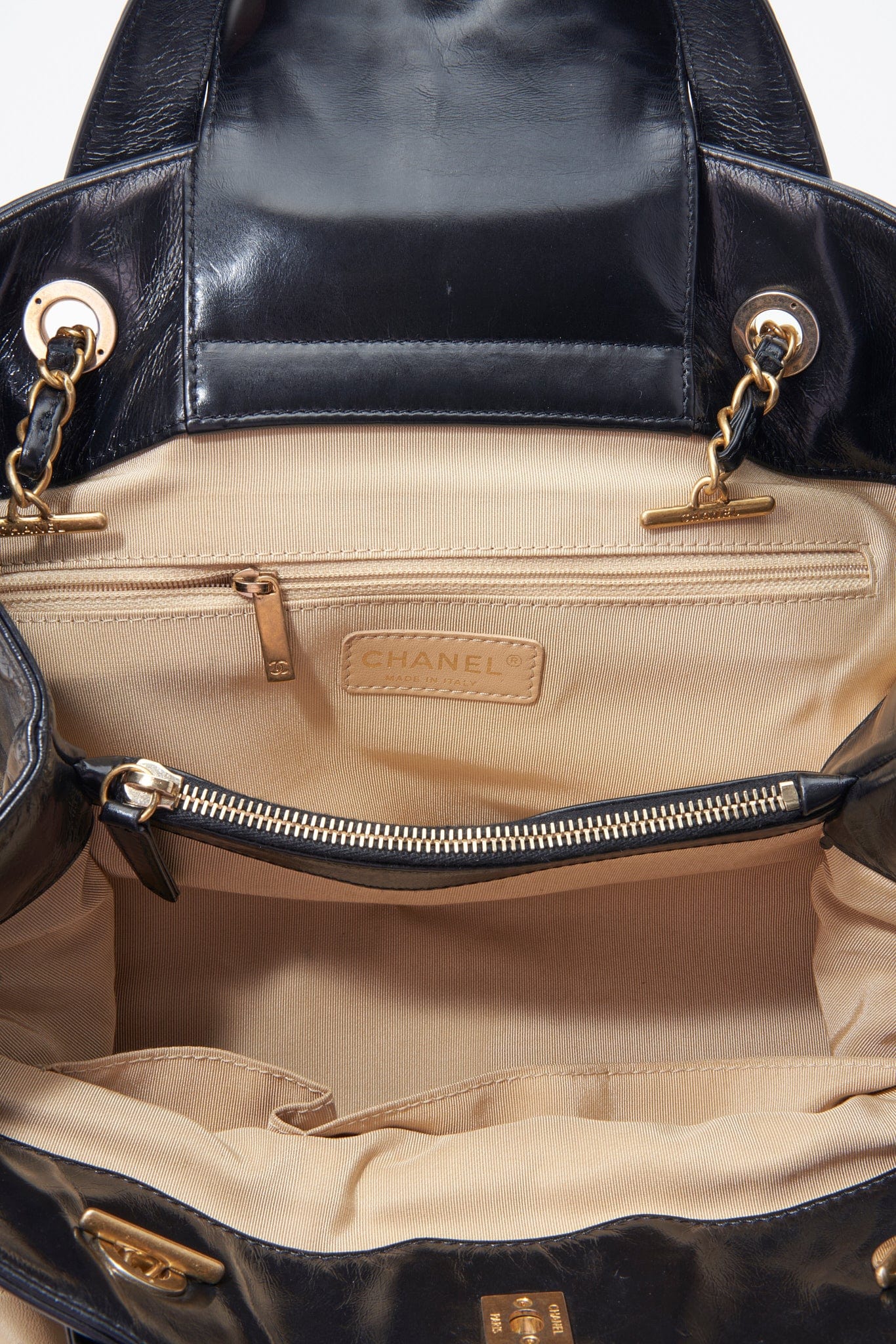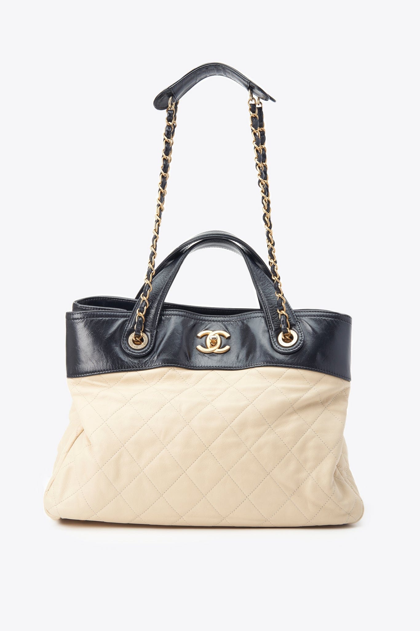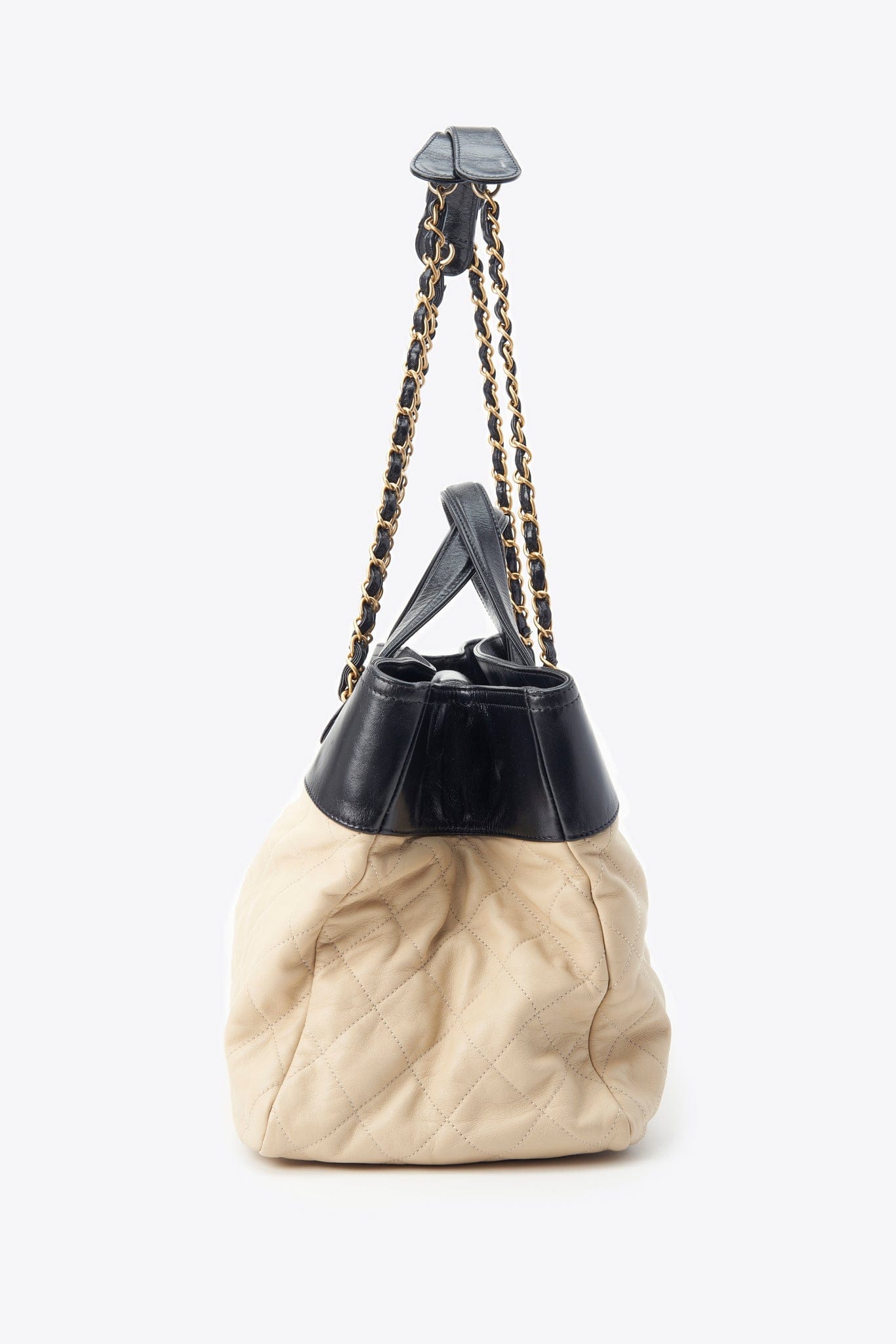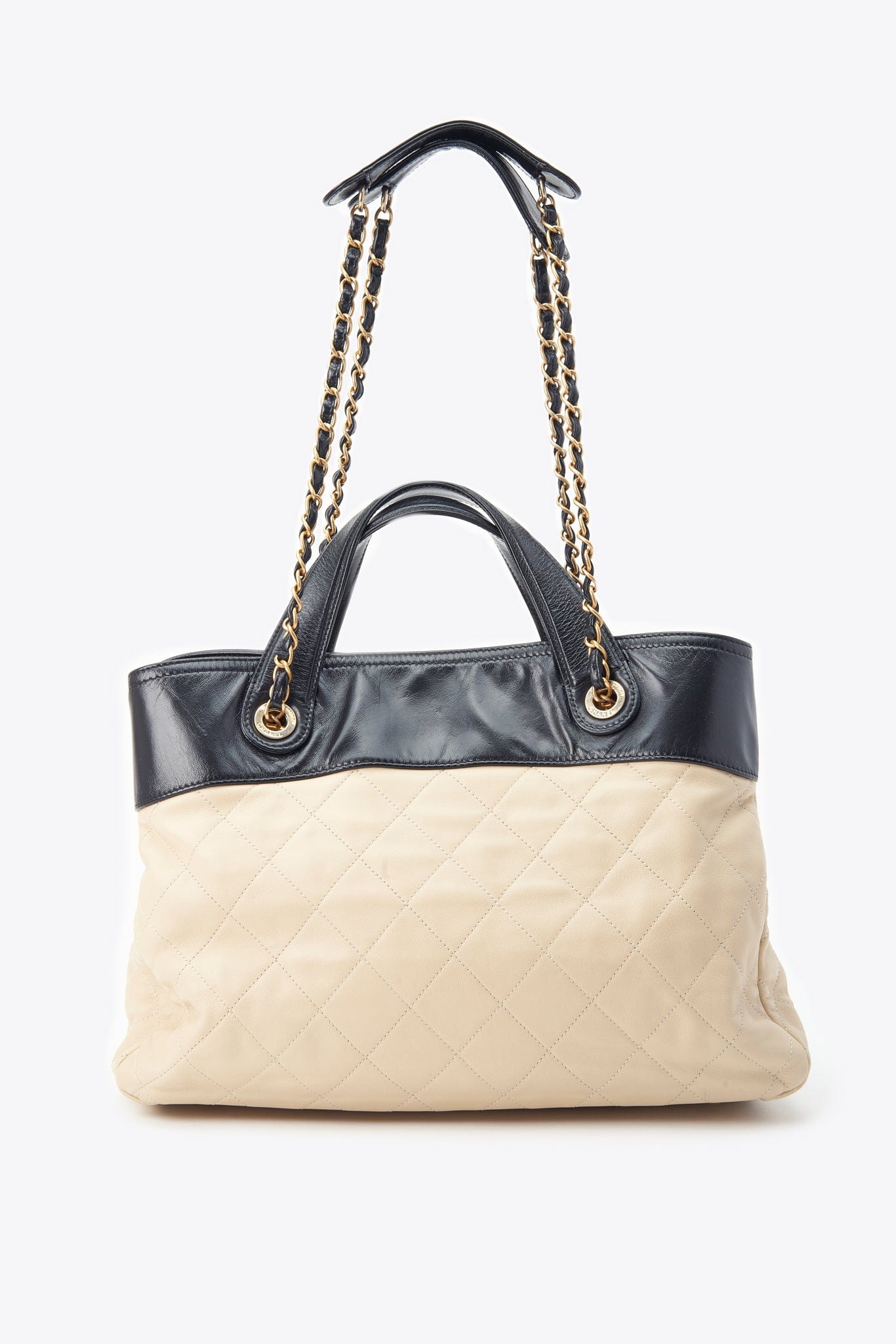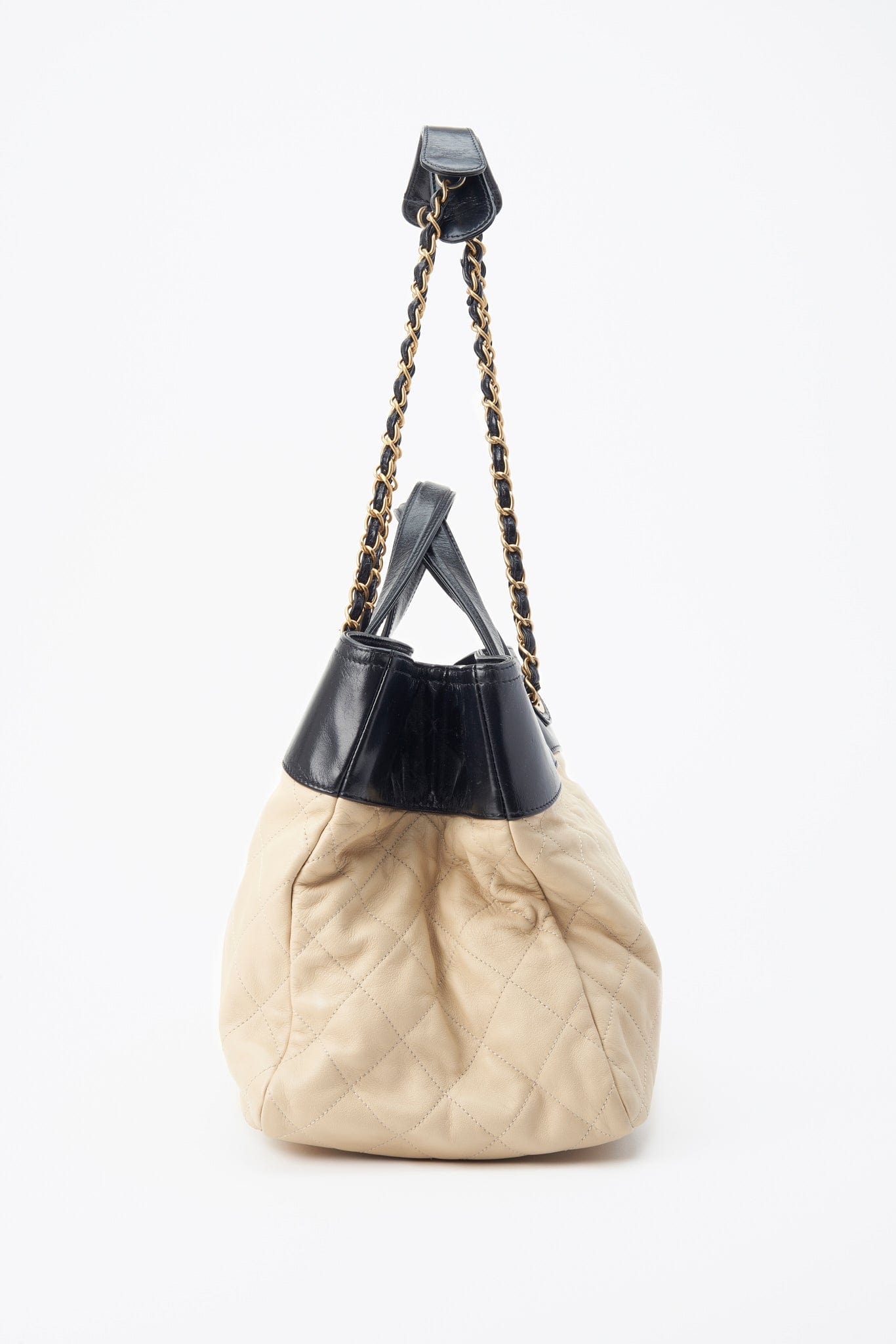 Chanel Black And Cream Leather Quilted Chain Tote Bag