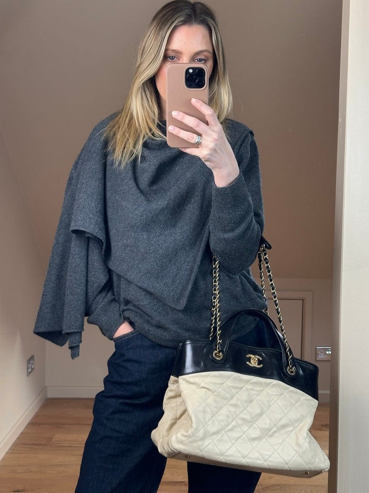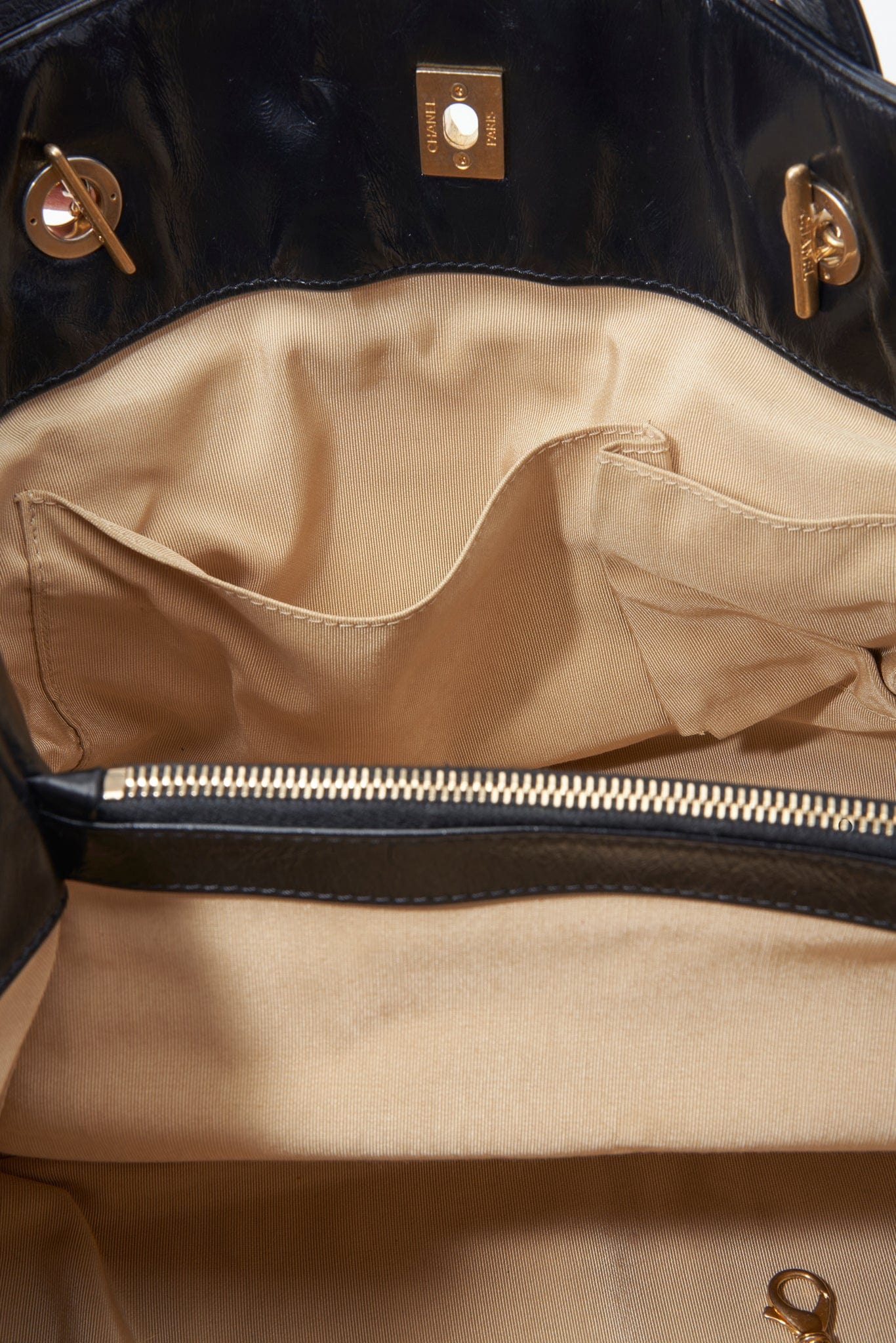 The black and cream lambskin leather is beautiful and silky soft. The gold coloured hardware is also in good condition, with minor signs of wear.
