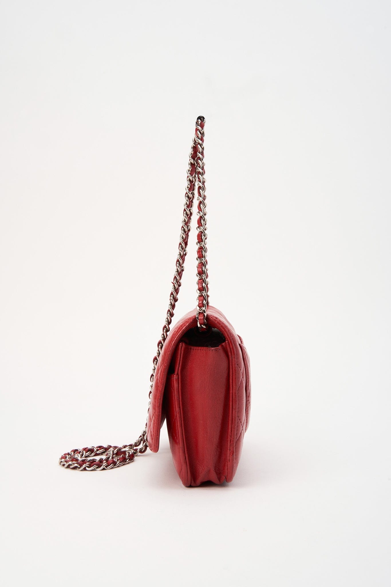 Vintage Chanel Red Lambskin Leather Wallet On Chain