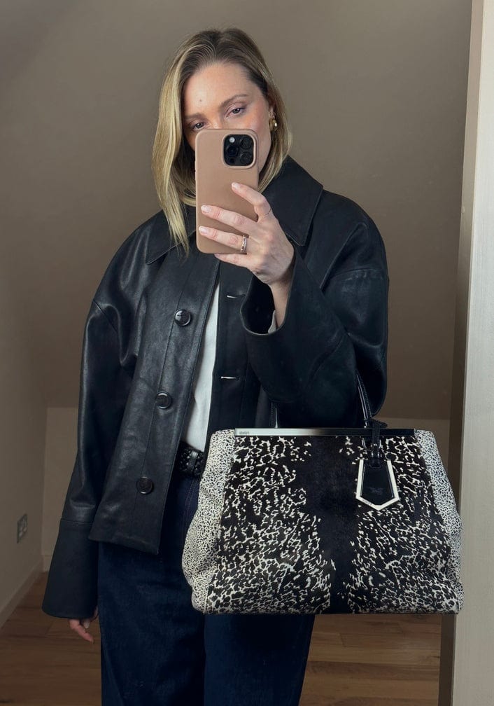 A beautiful bag for A/W the Fendi 2jours in a black and white printed calf hair, patent black leather and silver/enamel hardware.