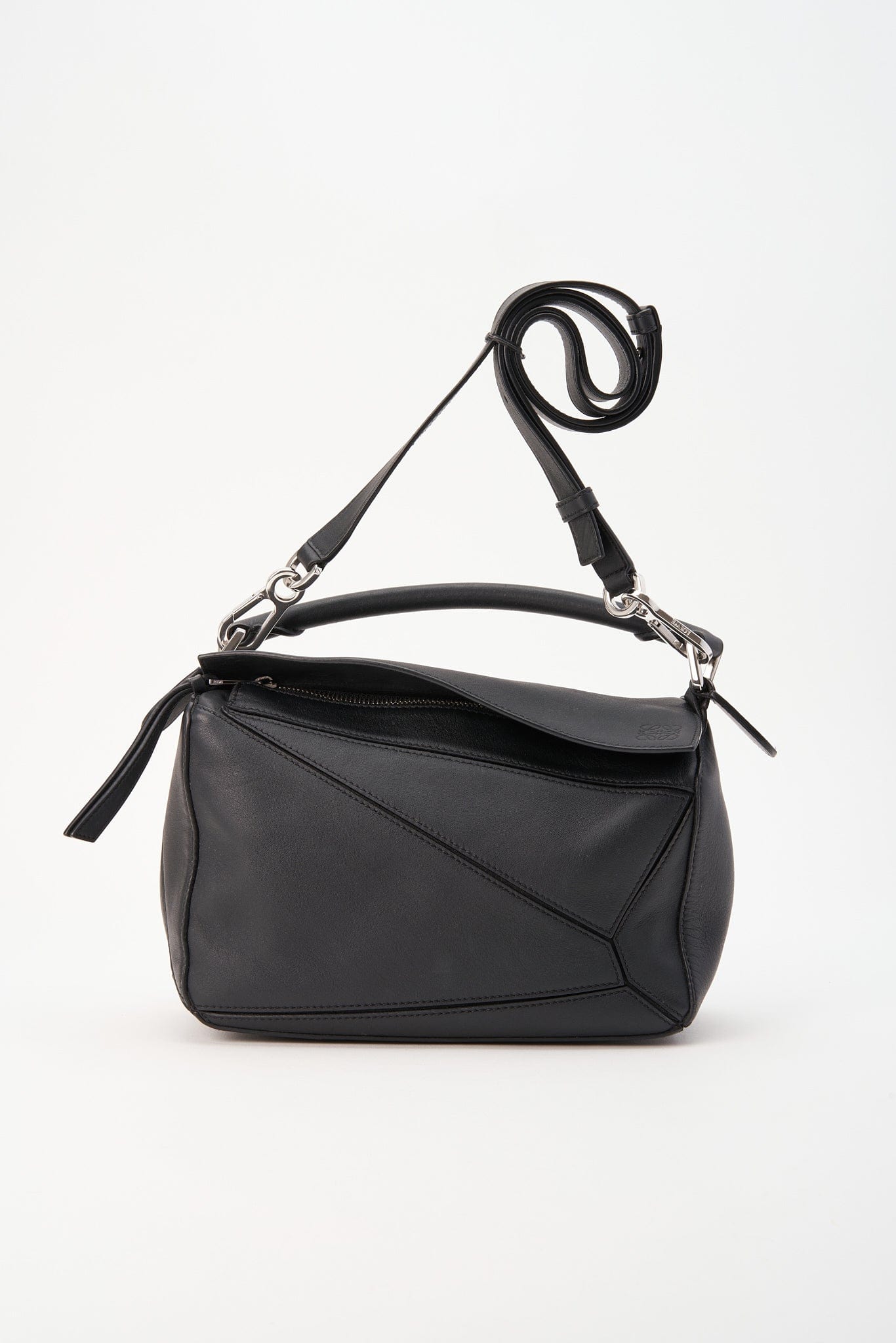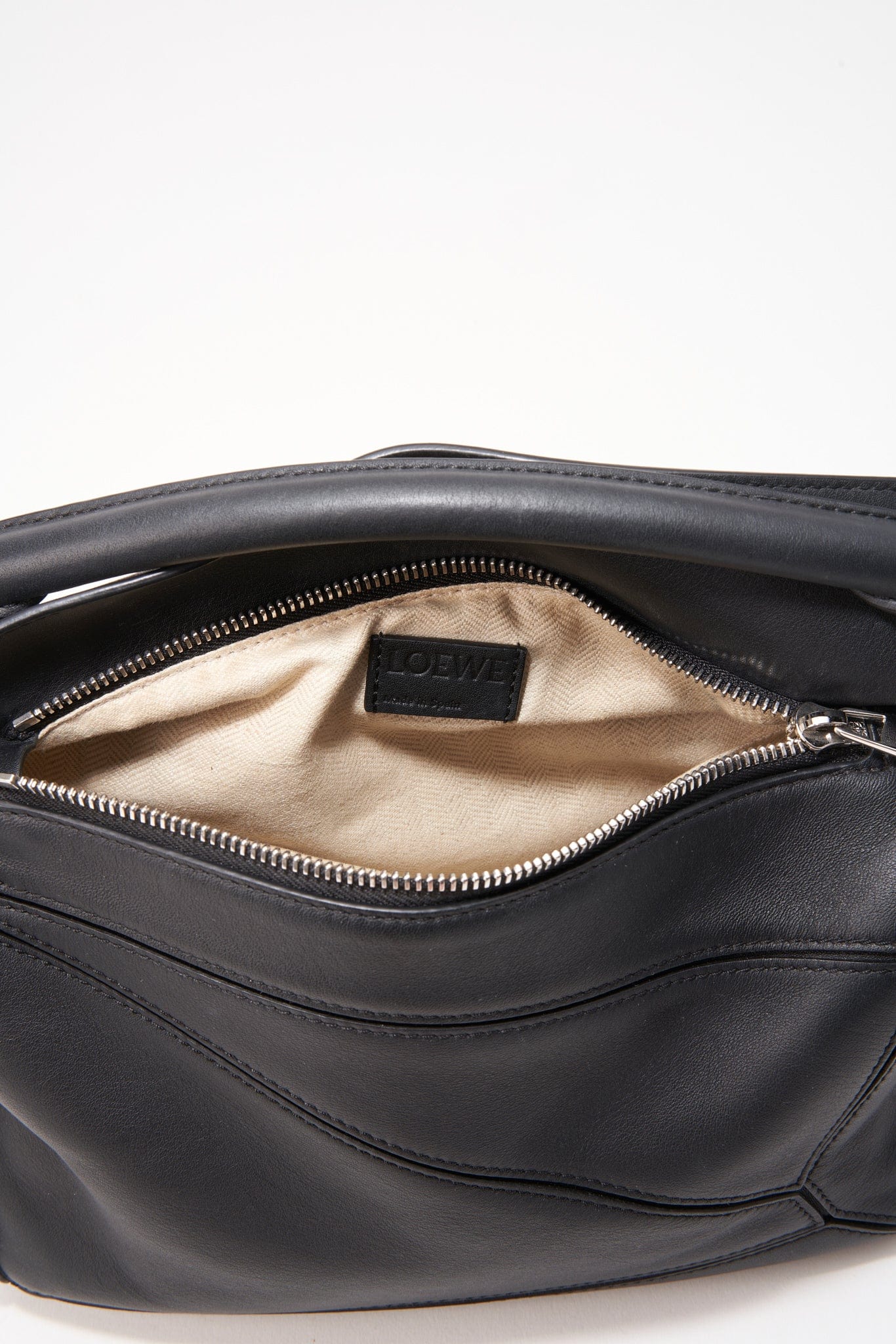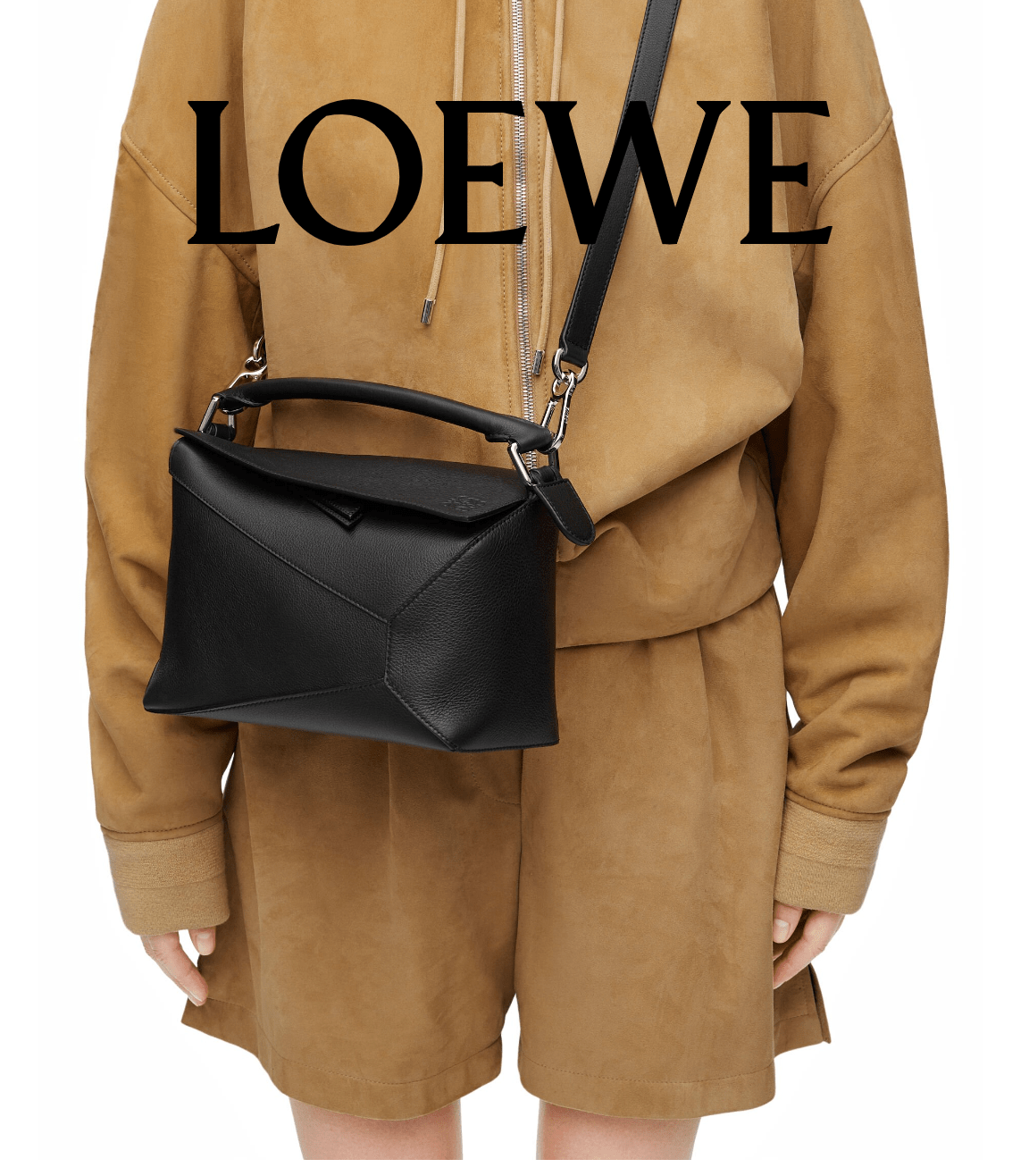 The Puzzle bag is the debut bag for LOEWE by Creative Director Jonathan Anderson. A cuboid shape and precise cutting technique create Puzzle’s distinctive geometric lines. This small version is crafted in classic calfskin.