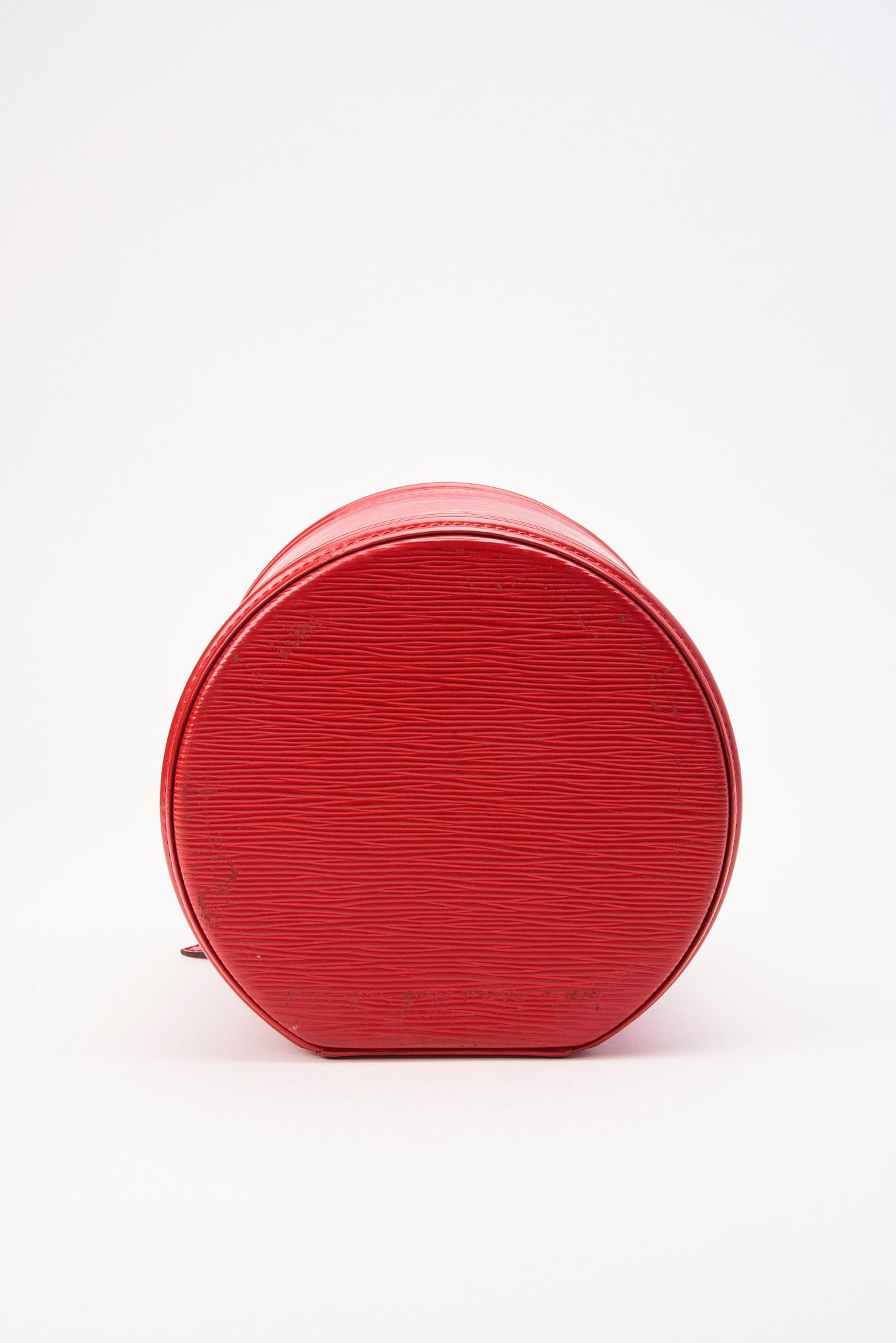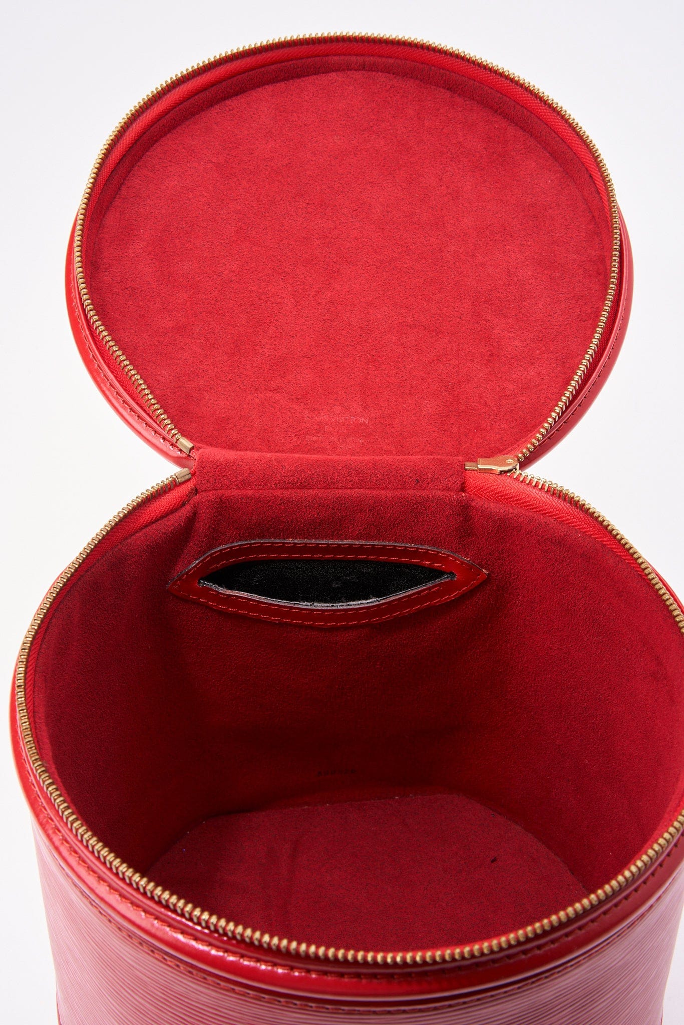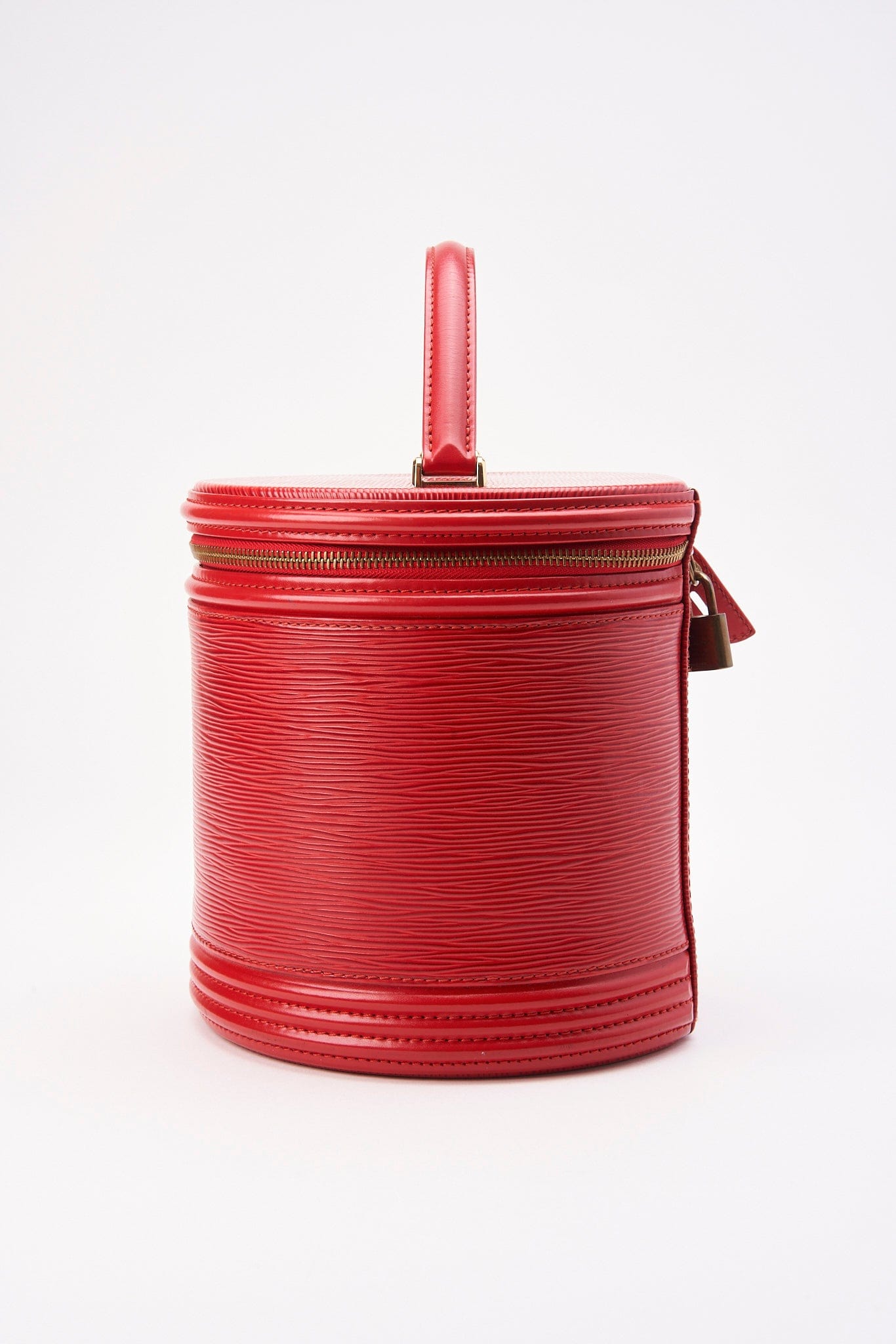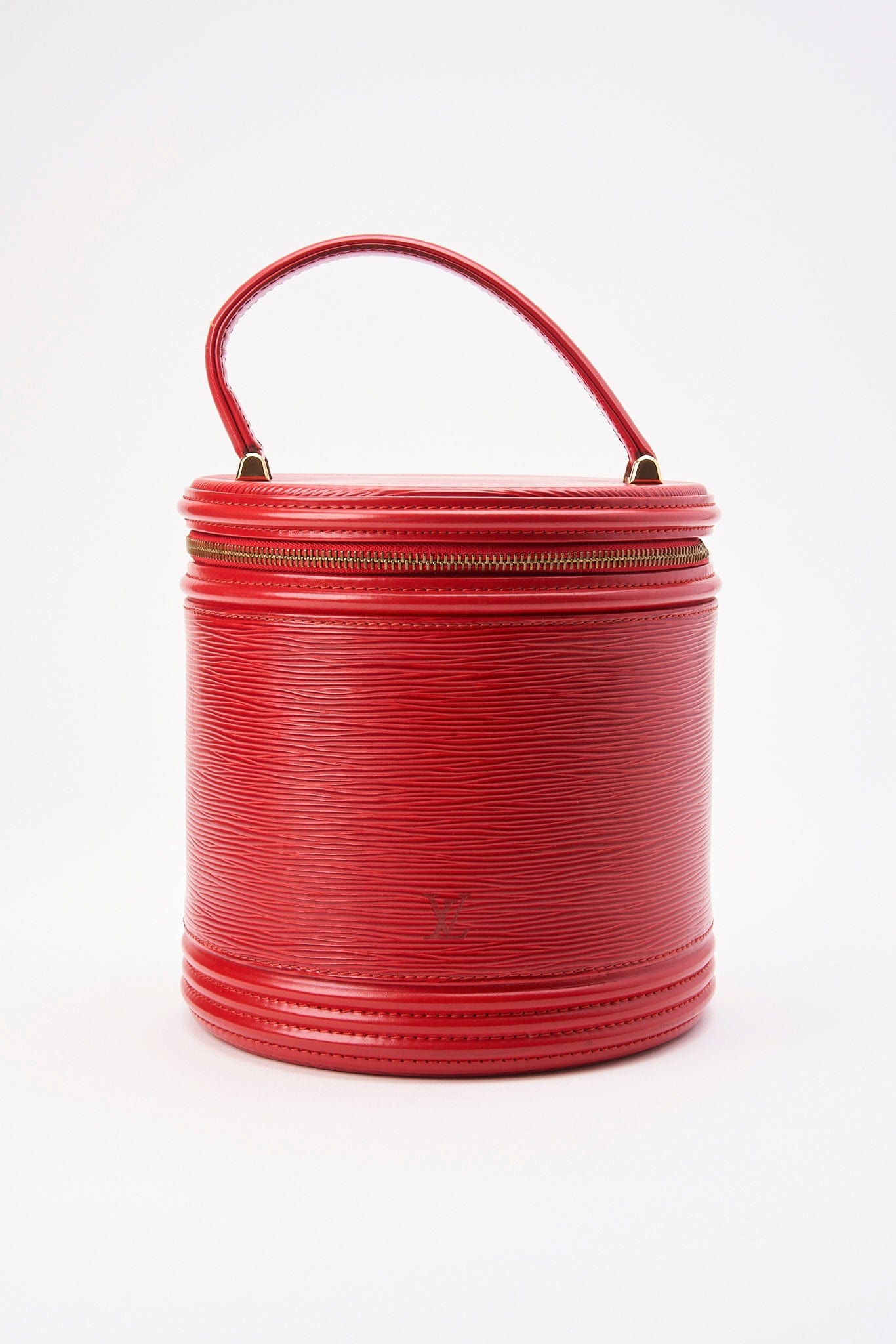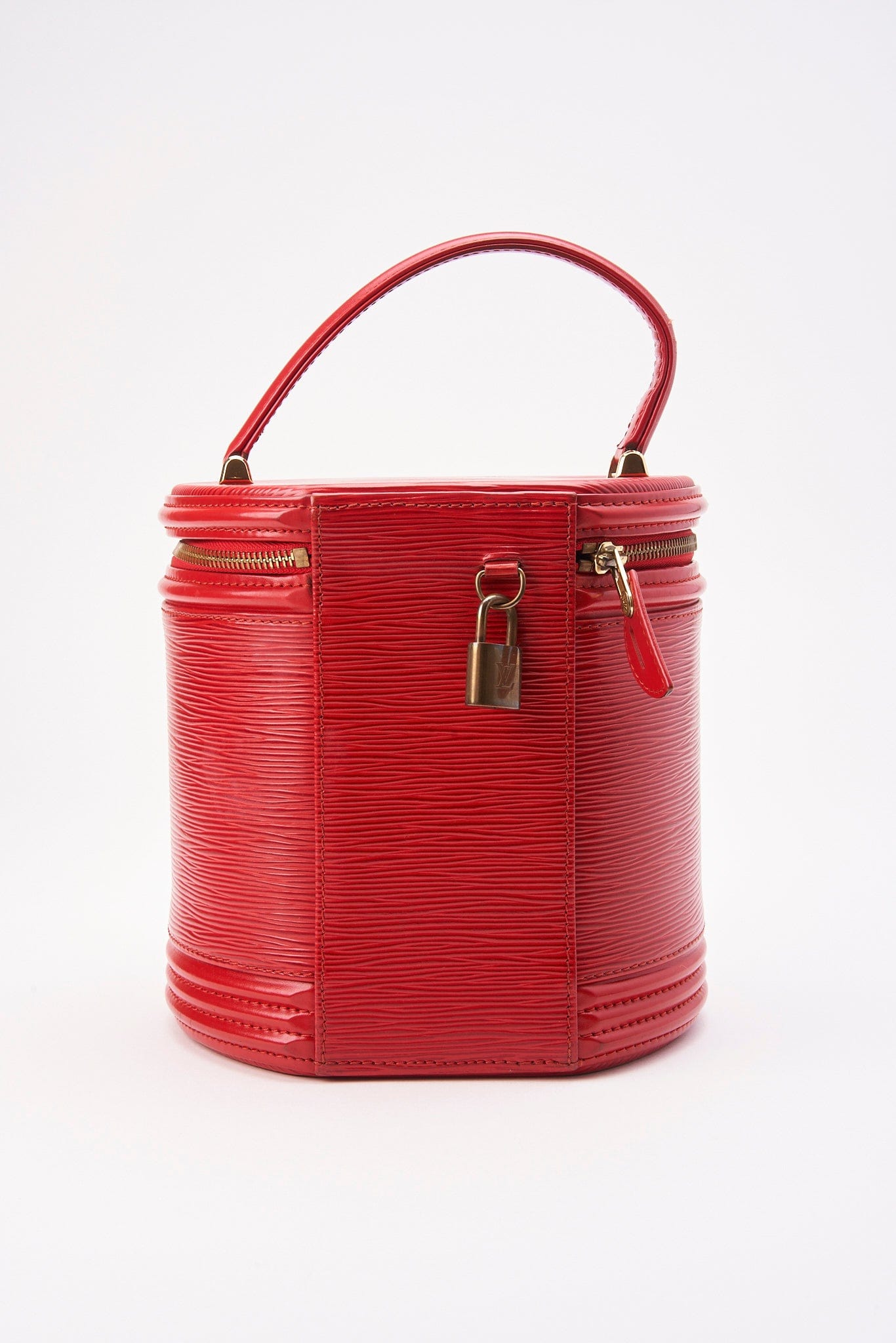 Check out this vintage Louis Vuitton Cannes handbag in a vibrant red Epi leather.