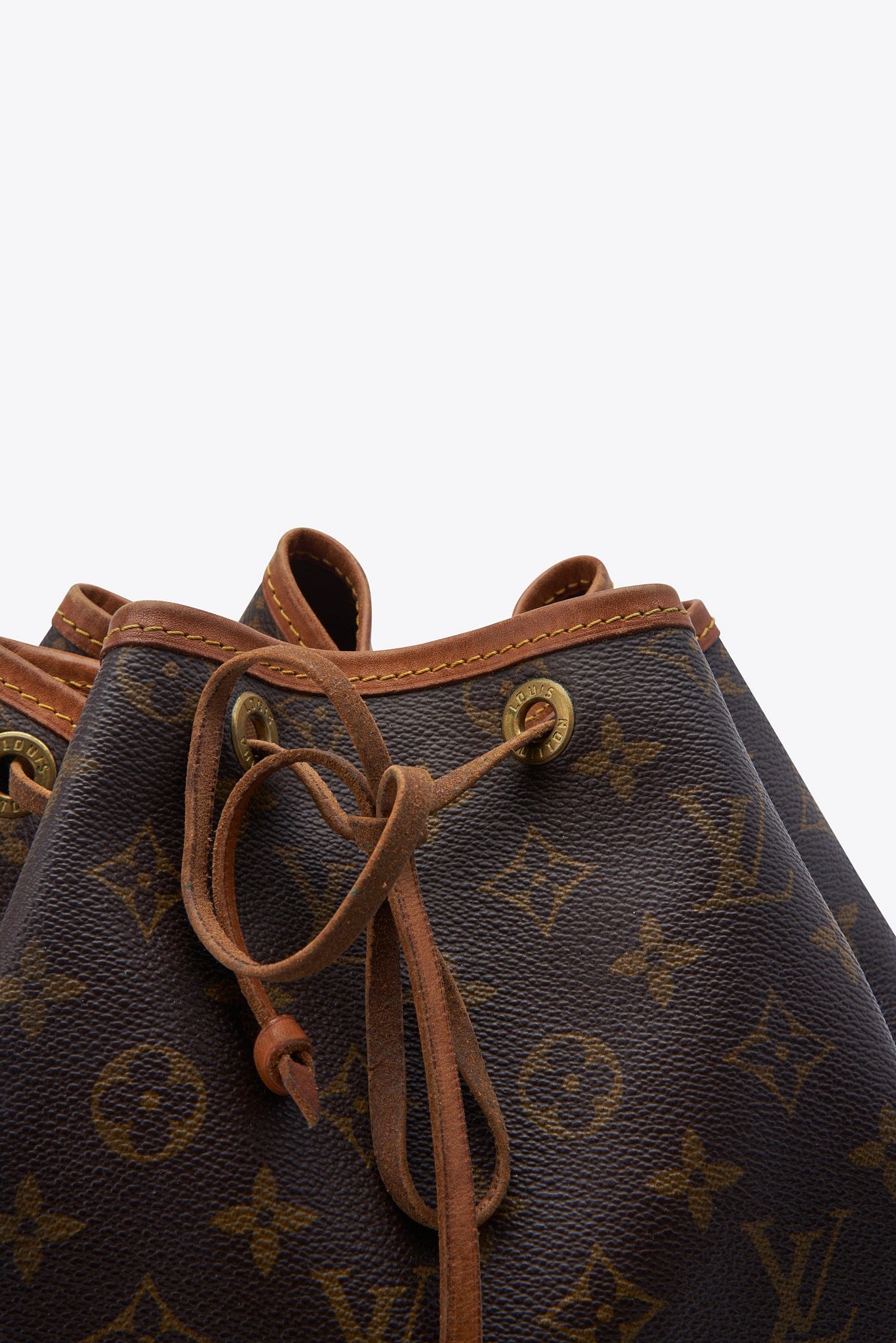 The Noé bucket bag was originally designed in 1932. A Champagne producer asked Gaston-Louis Vuitton to develop a sturdy, stylish bag in which he could transport five bottles of bubbly. Made in the iconic Louis Vuitton Monogram canvas with a leather base and a drawstring leather closure.