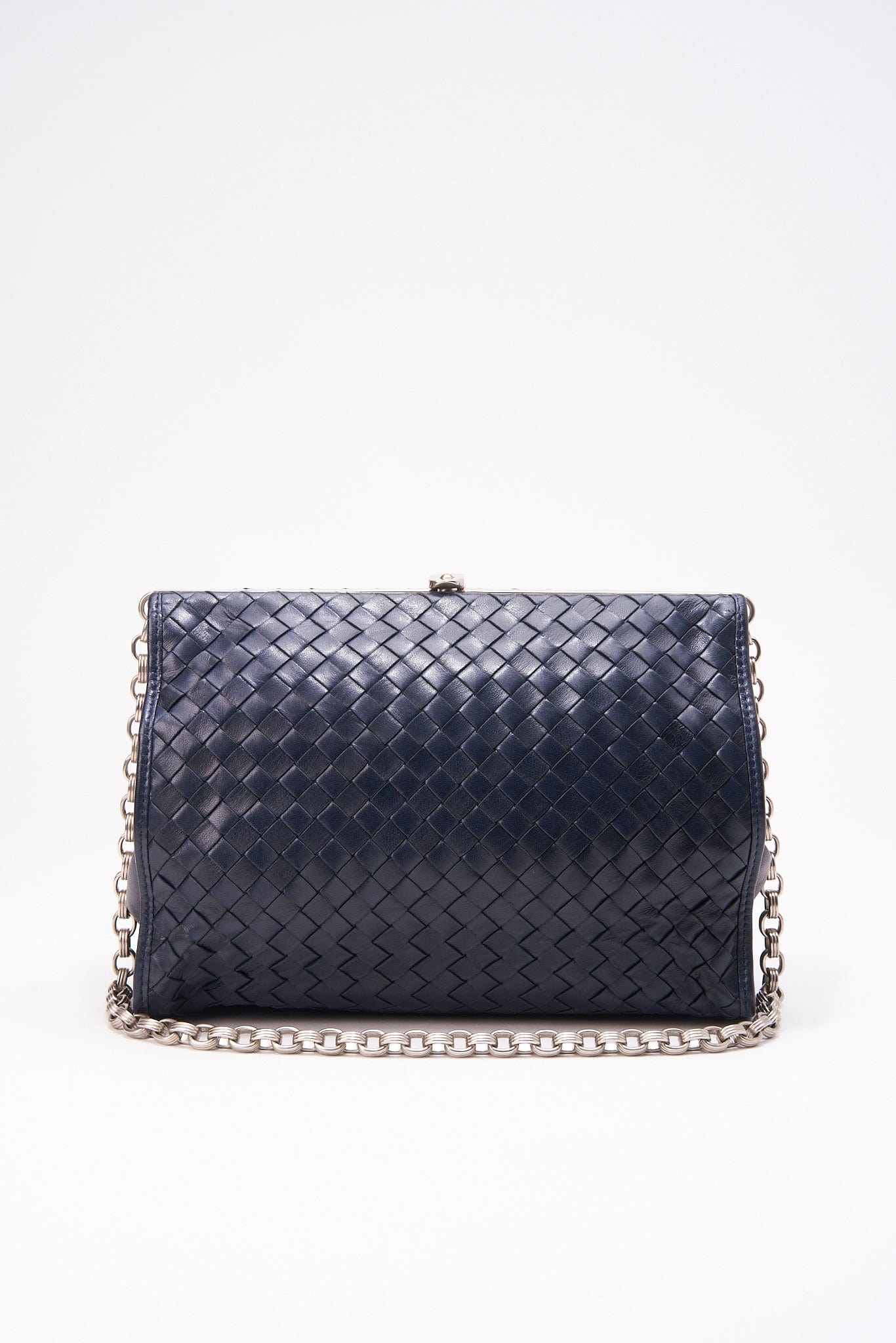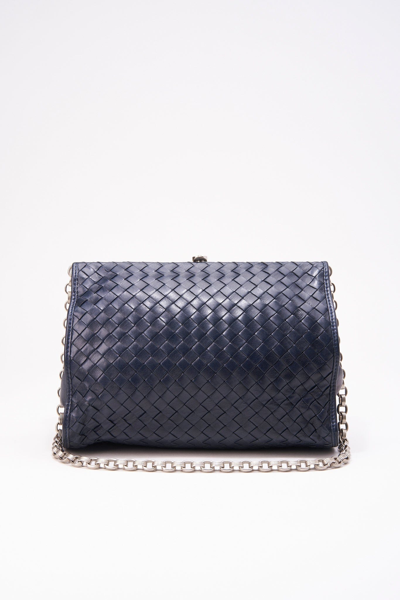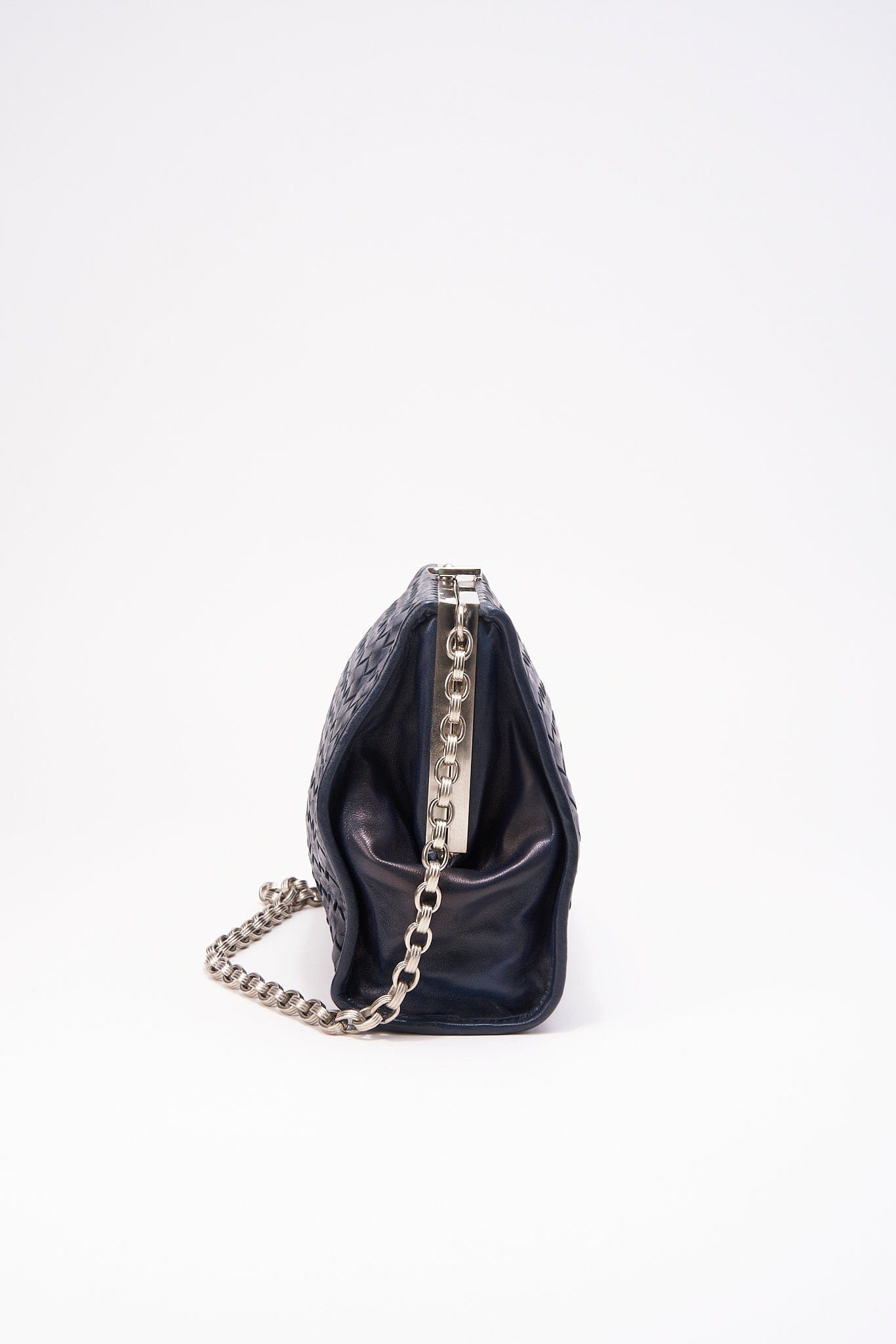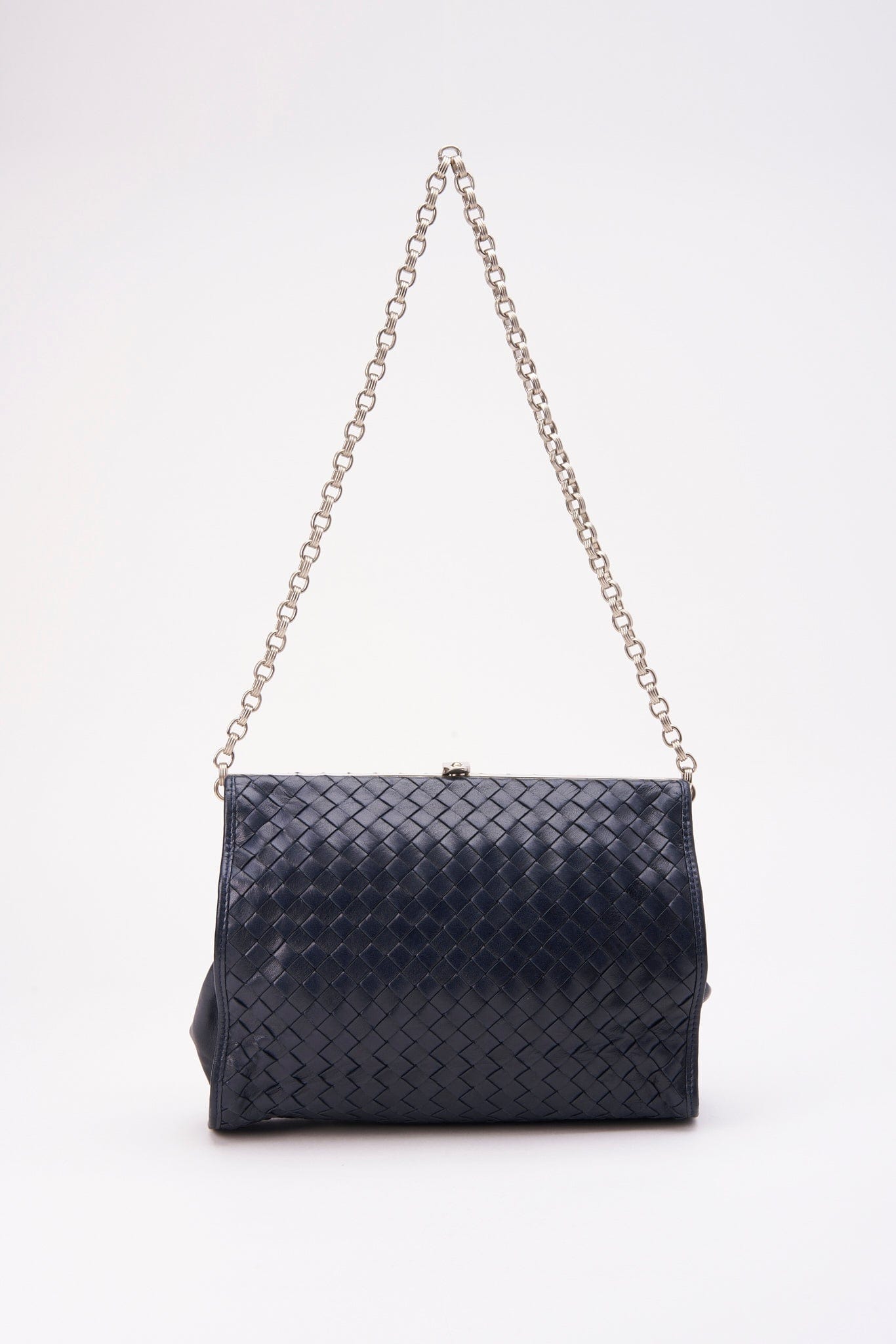 Vintage Bottega Veneta Navy Intrecciato Chain Shoulder Bag