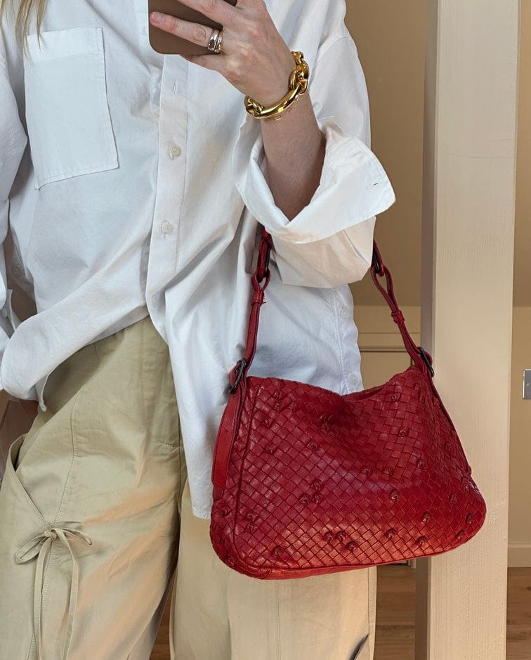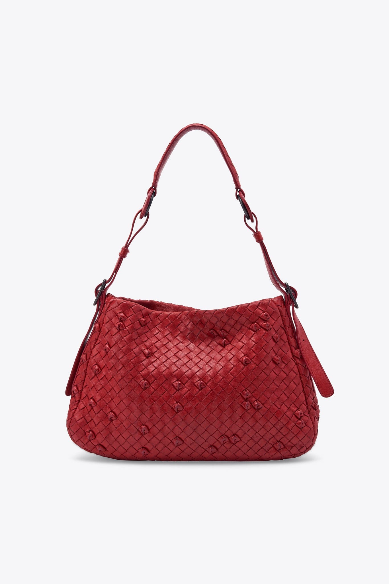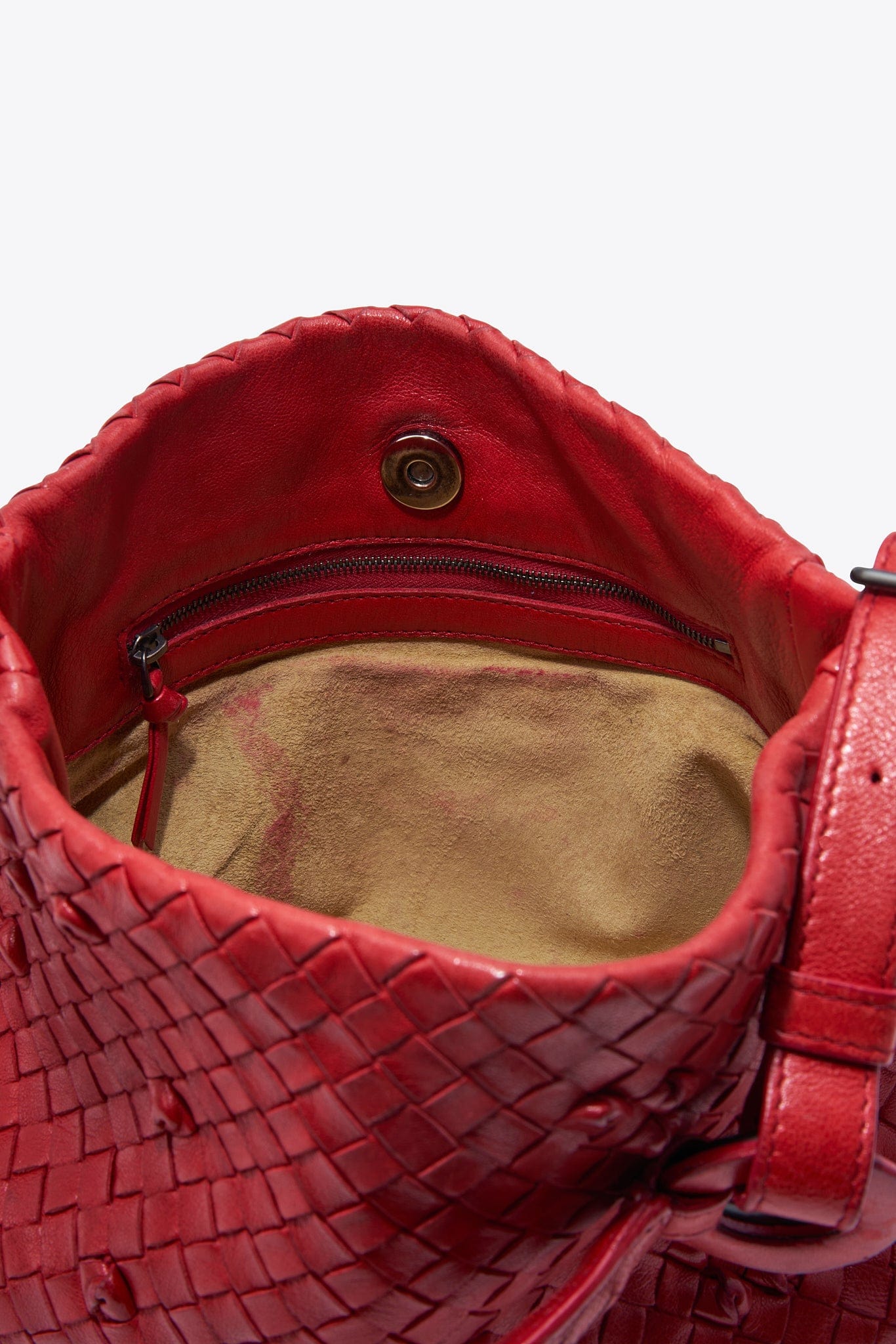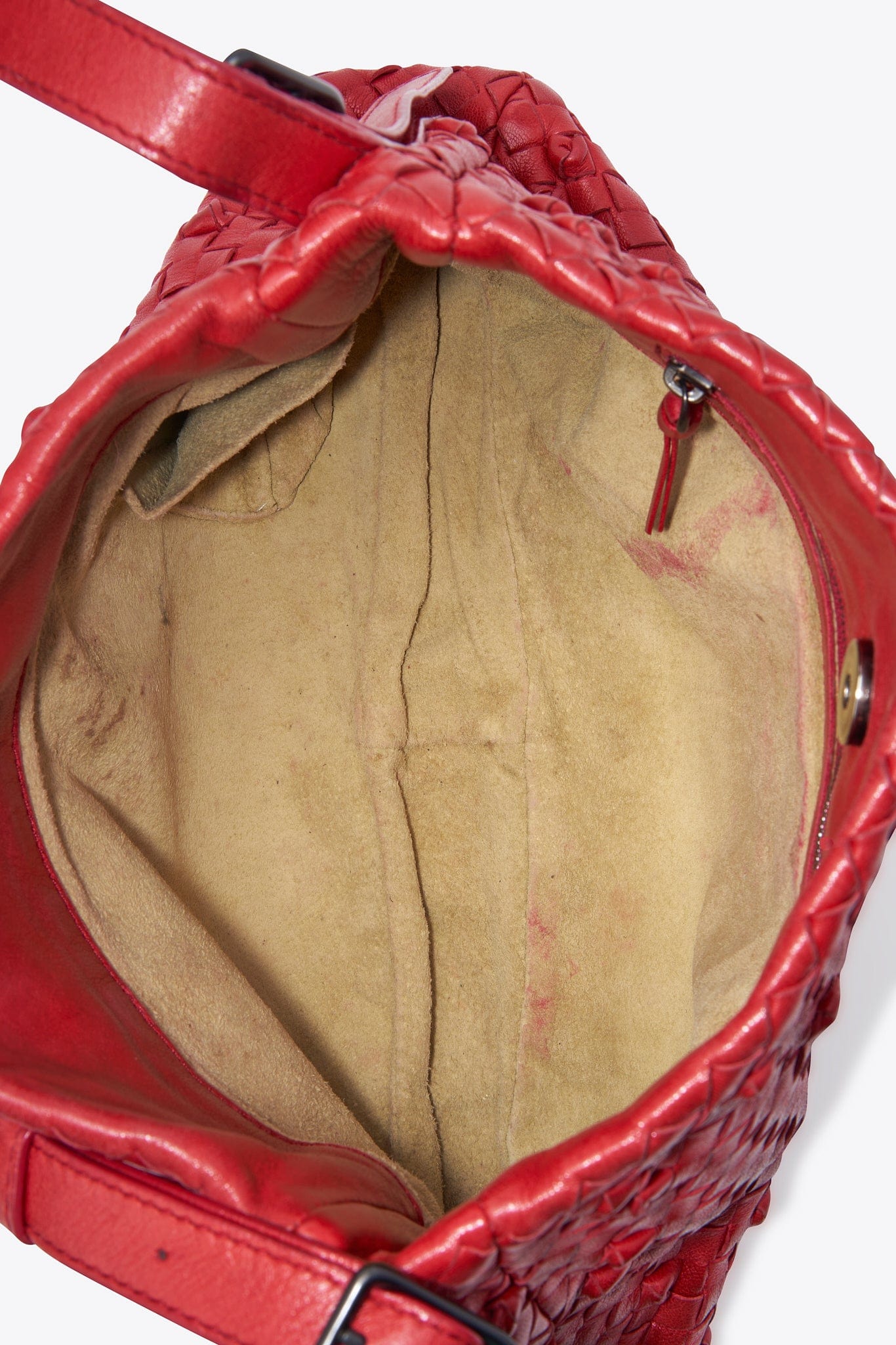 Vintage Bottega Veneta Red Intrecciato Leather Shoulder Bag