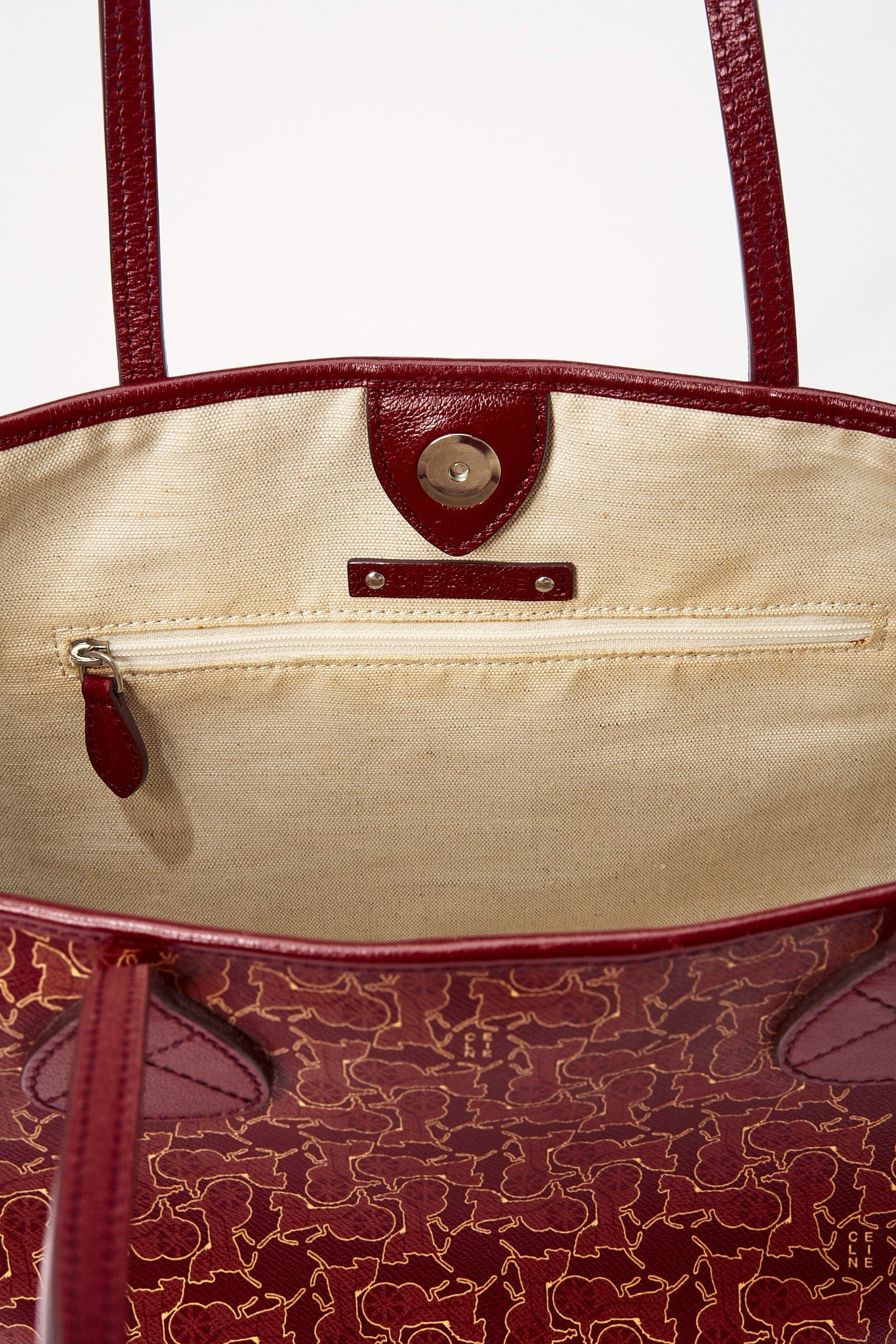 A beautiful vintage Celine coated canvas top handle bag with tan leather trim detail and zip closure.