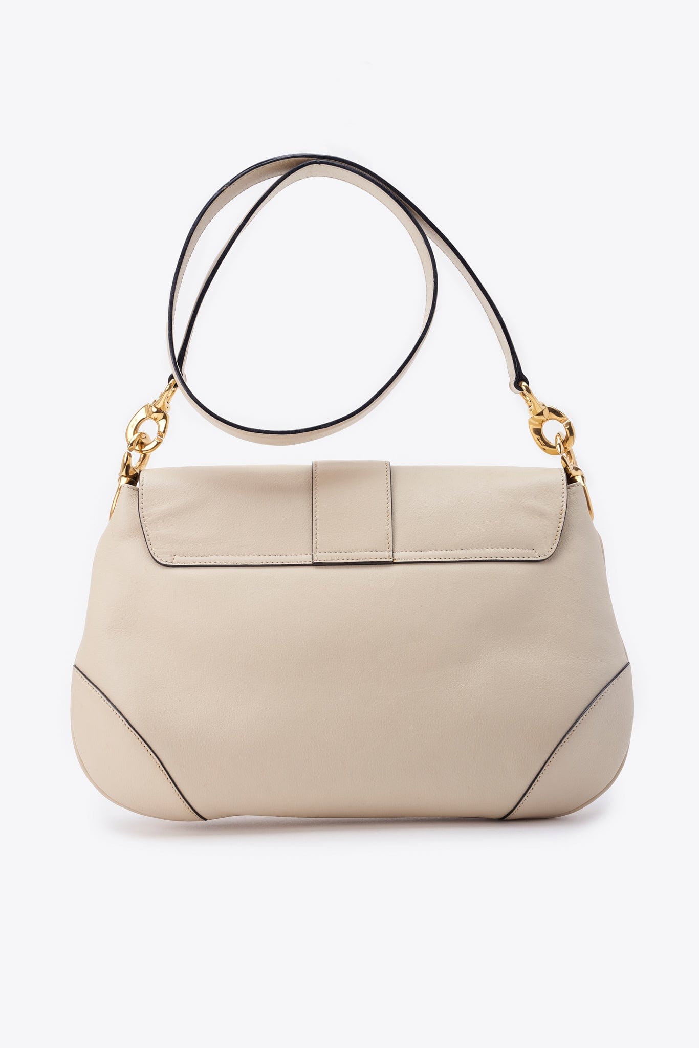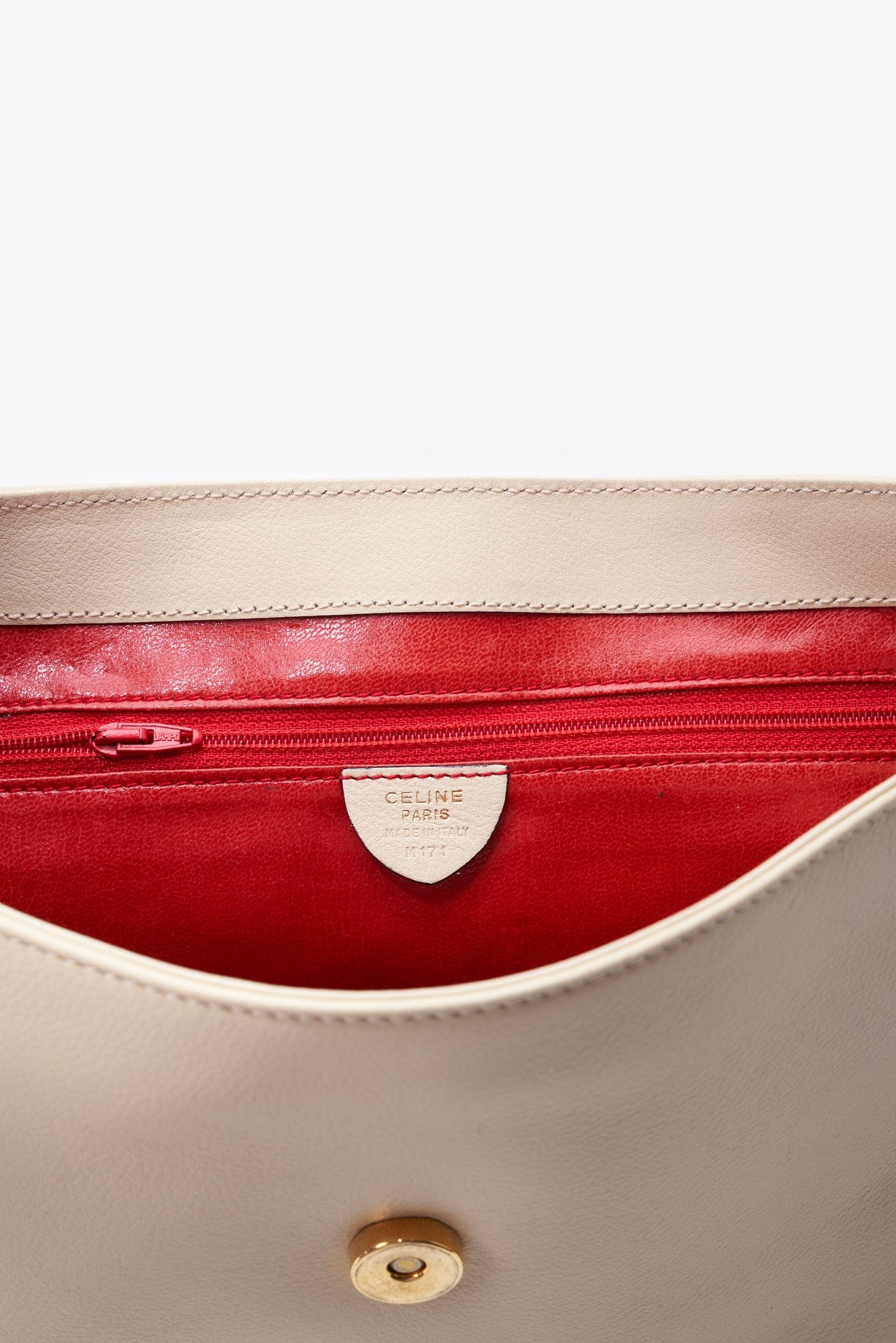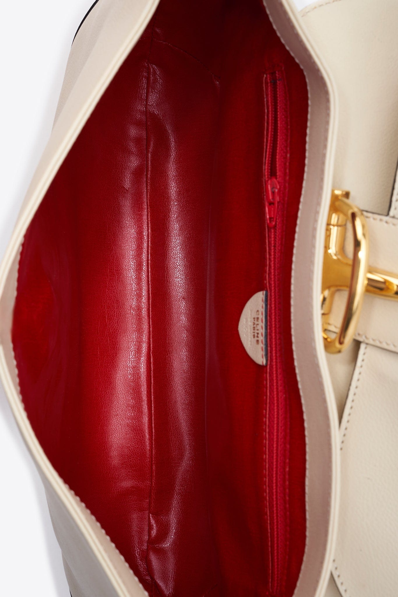 A super chic vintage Celine shoulder bag crafted from a smooth cream leather with gold Celine branded hardware.