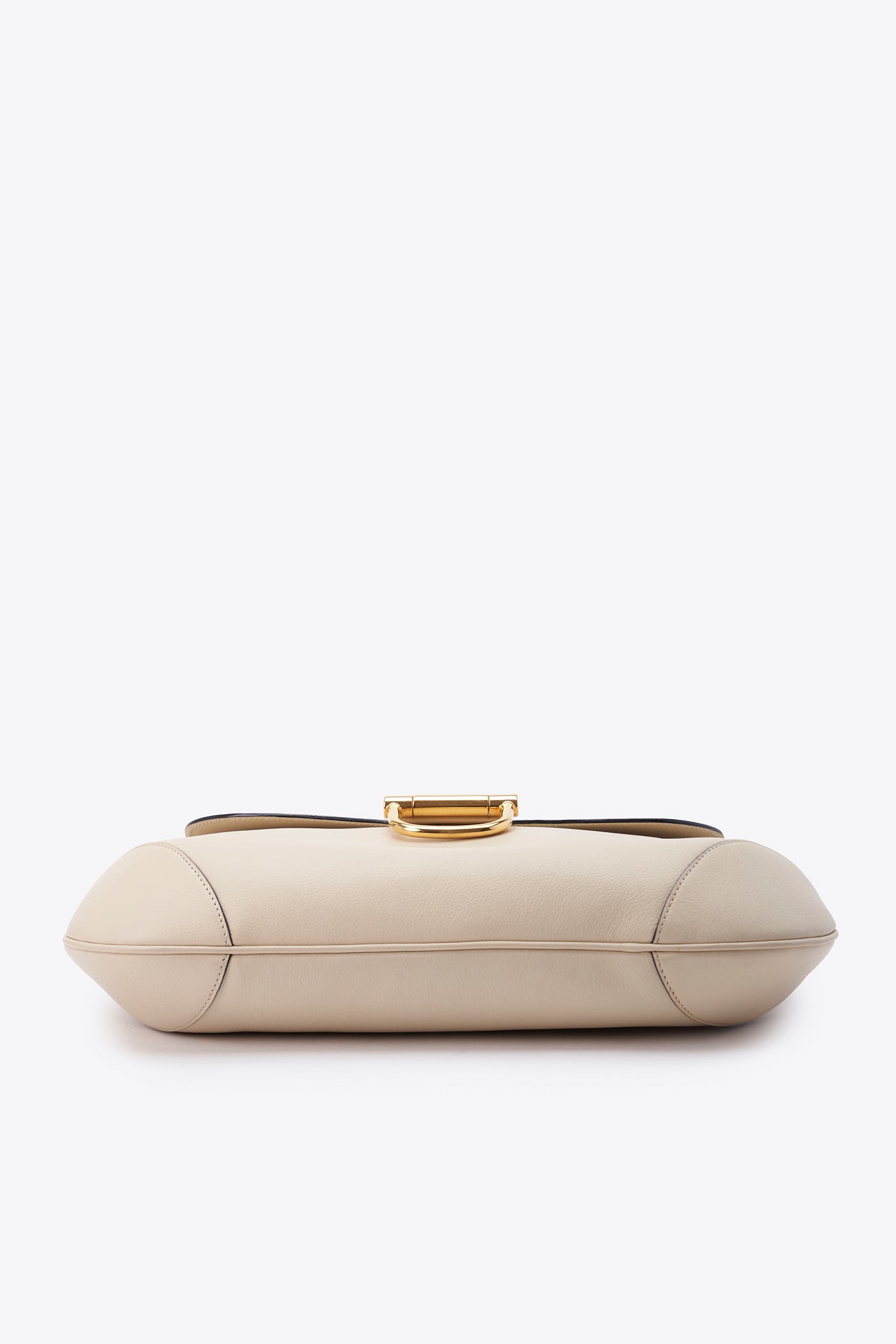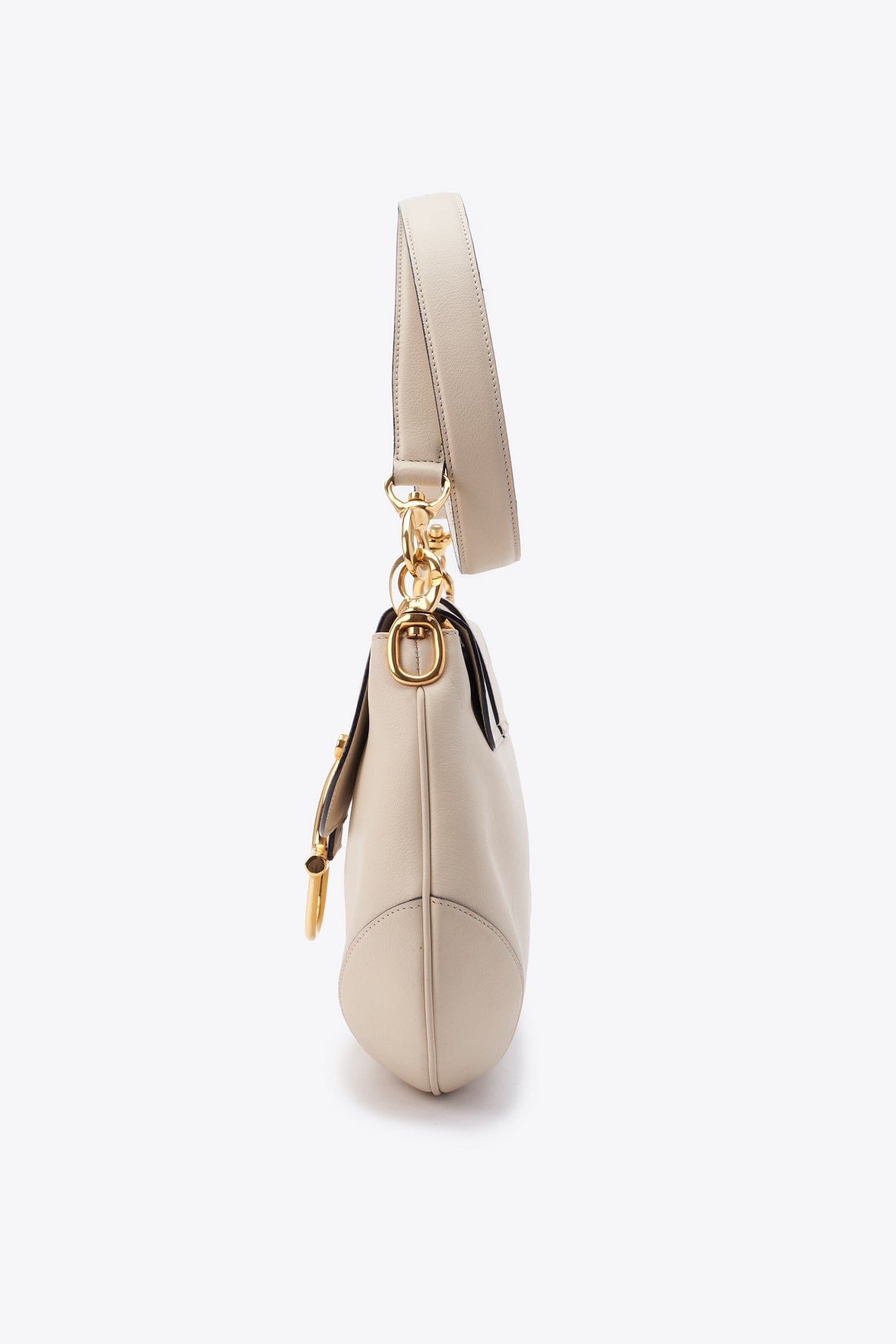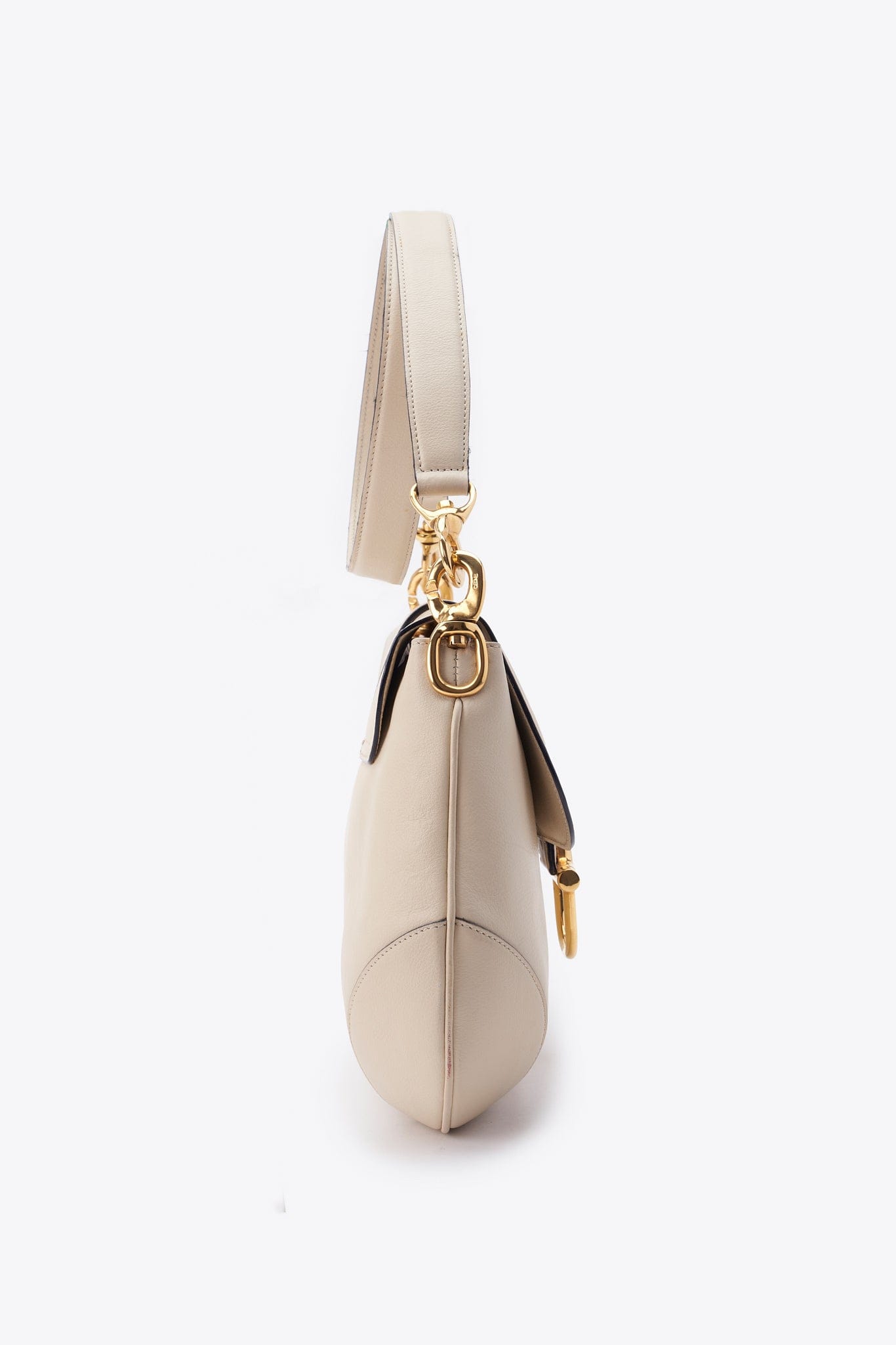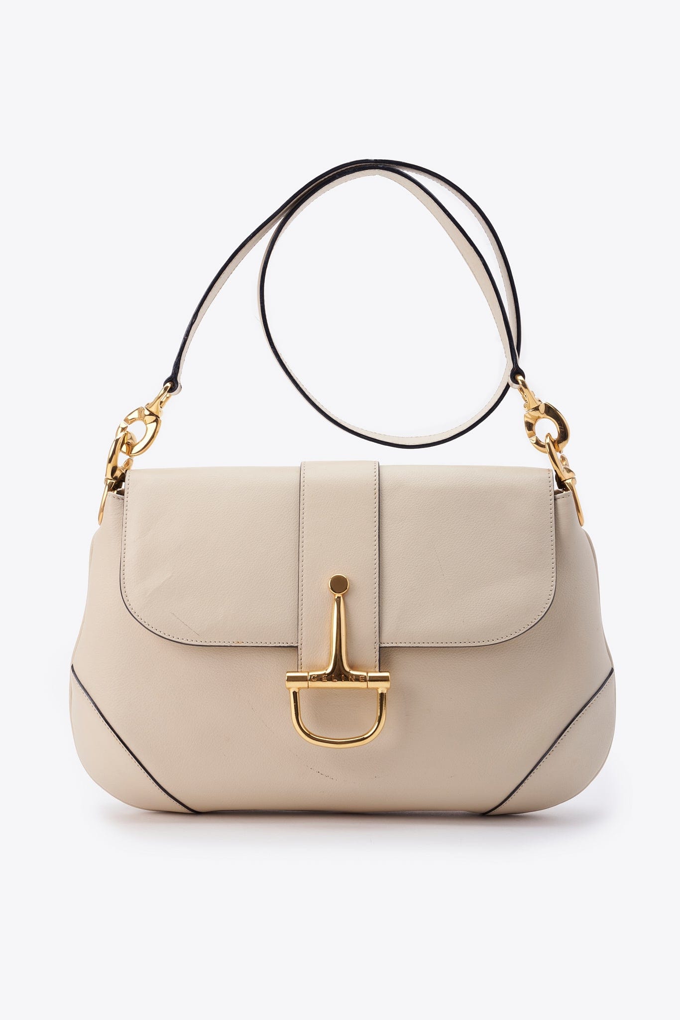 A super chic vintage Celine shoulder bag crafted from a smooth cream leather with gold Celine branded hardware.