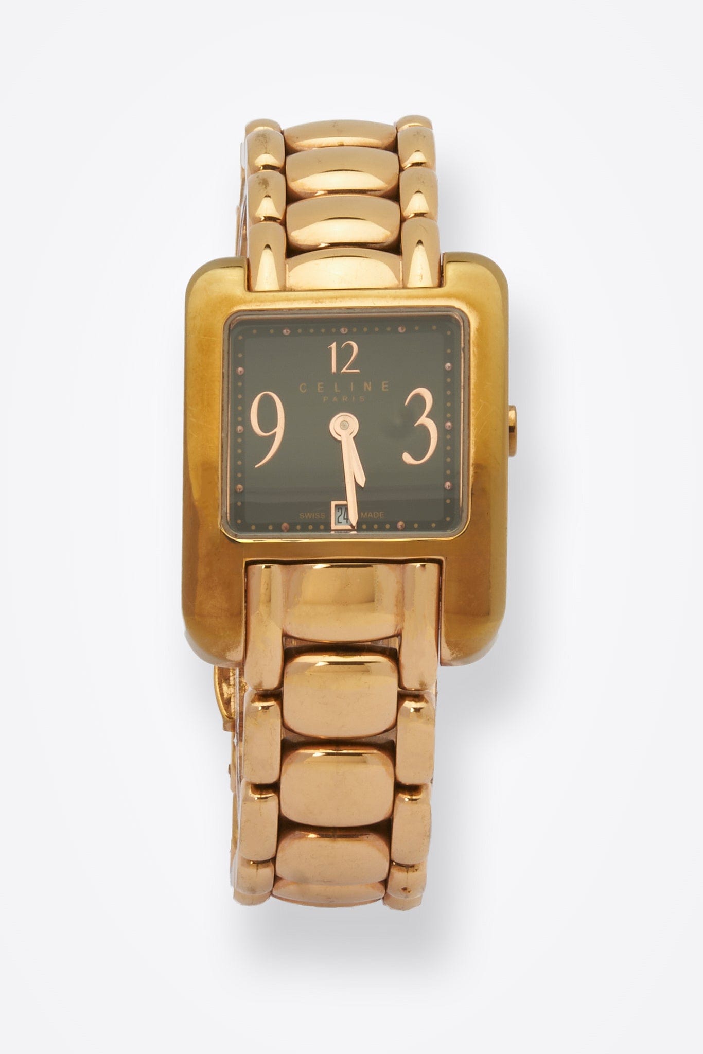 A super chic gold-plated Celine vintage watch, with a subtle black dial.