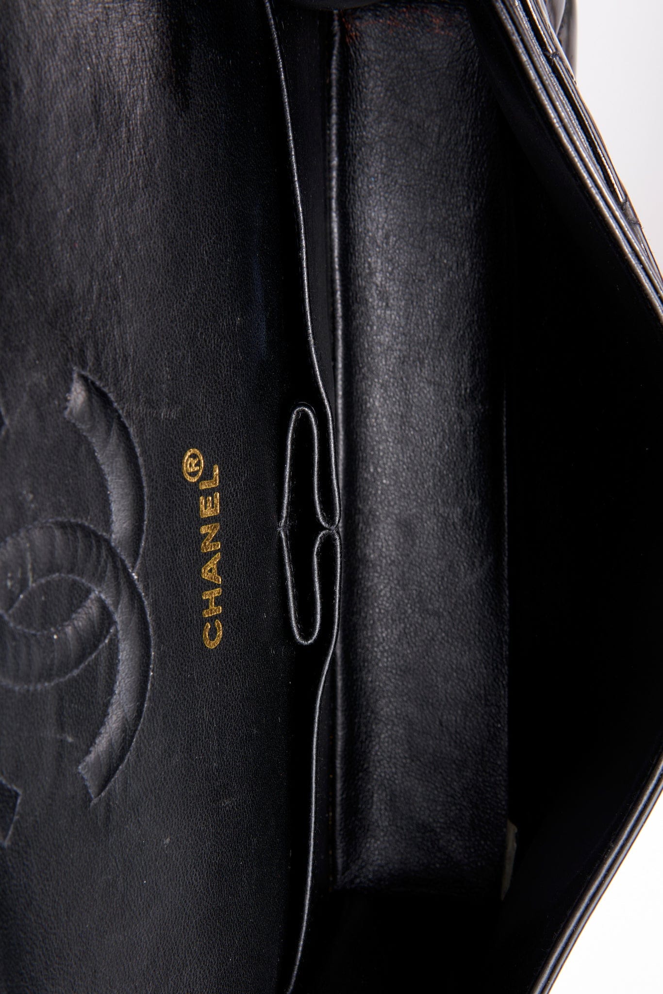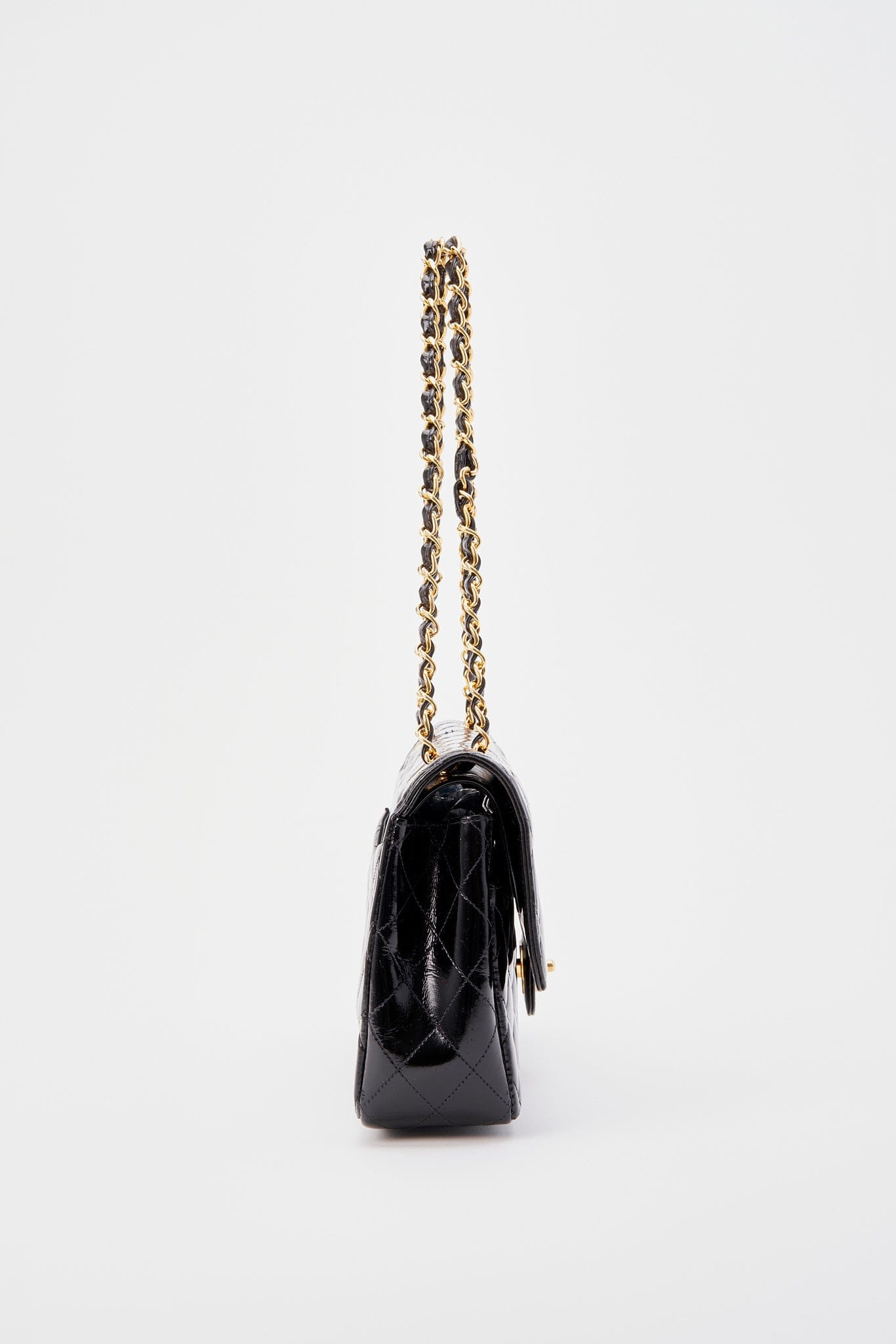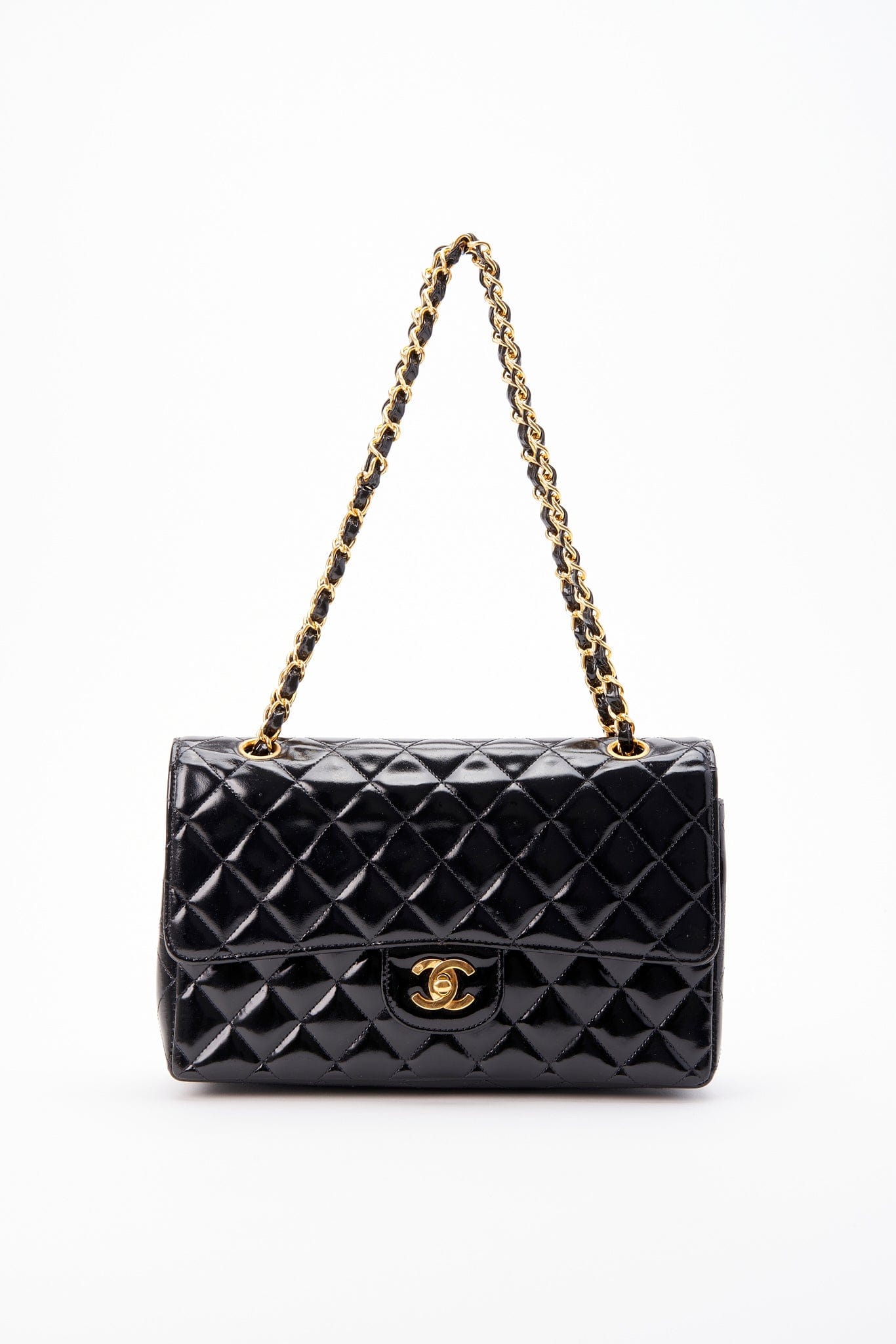 Vintage Chanel Classic Double Flap Bag Medium Black Patent Leather With 24K Gold Plated Hardware
