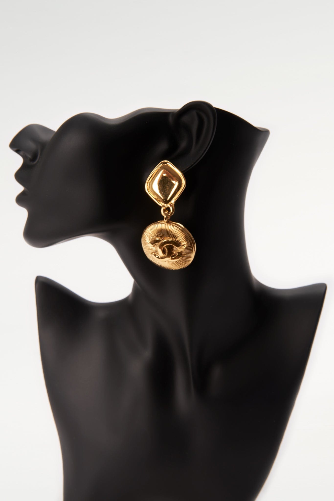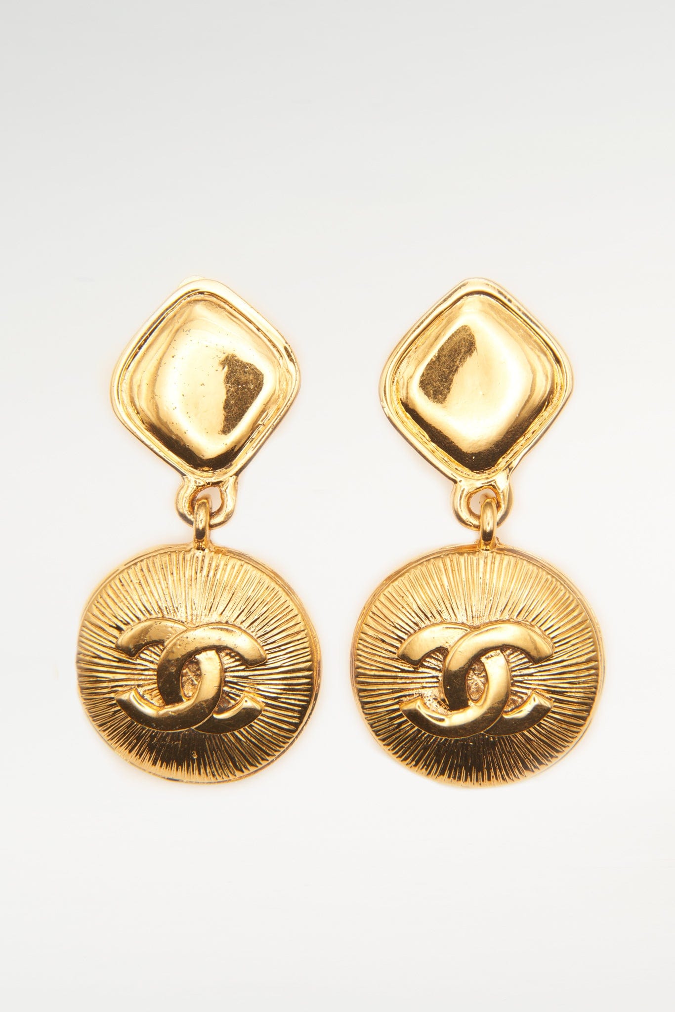 A pair of fabulous clip on vintage Chanel gold earrings from the 1980's.