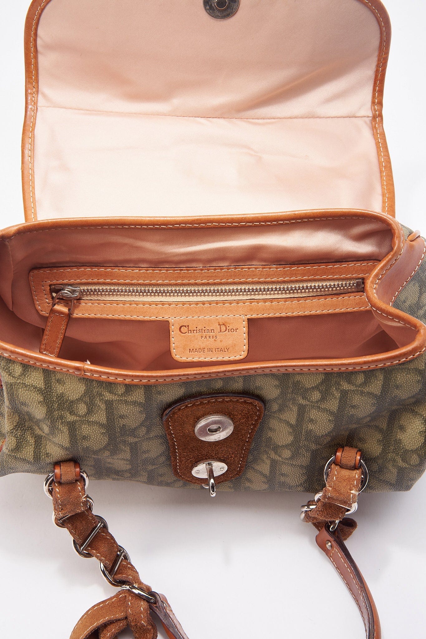 This bag is lined in a beigey pink satin and has a zipped internal pocket for your valuables.