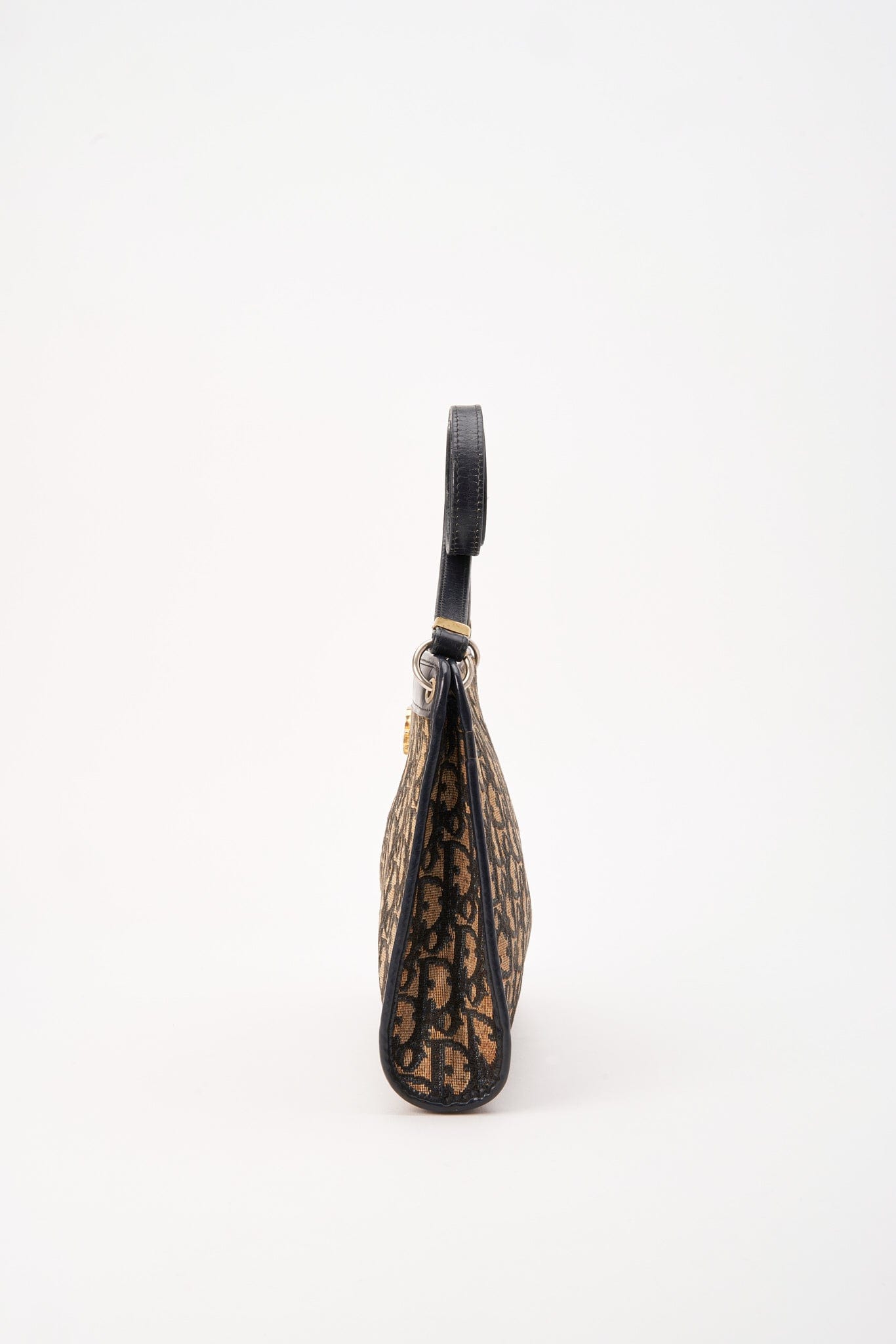 A vintage Christian Dior shoulder bag crafted from the blue iconic Dior Oblique canvas with navy leather trim and gold hardware.