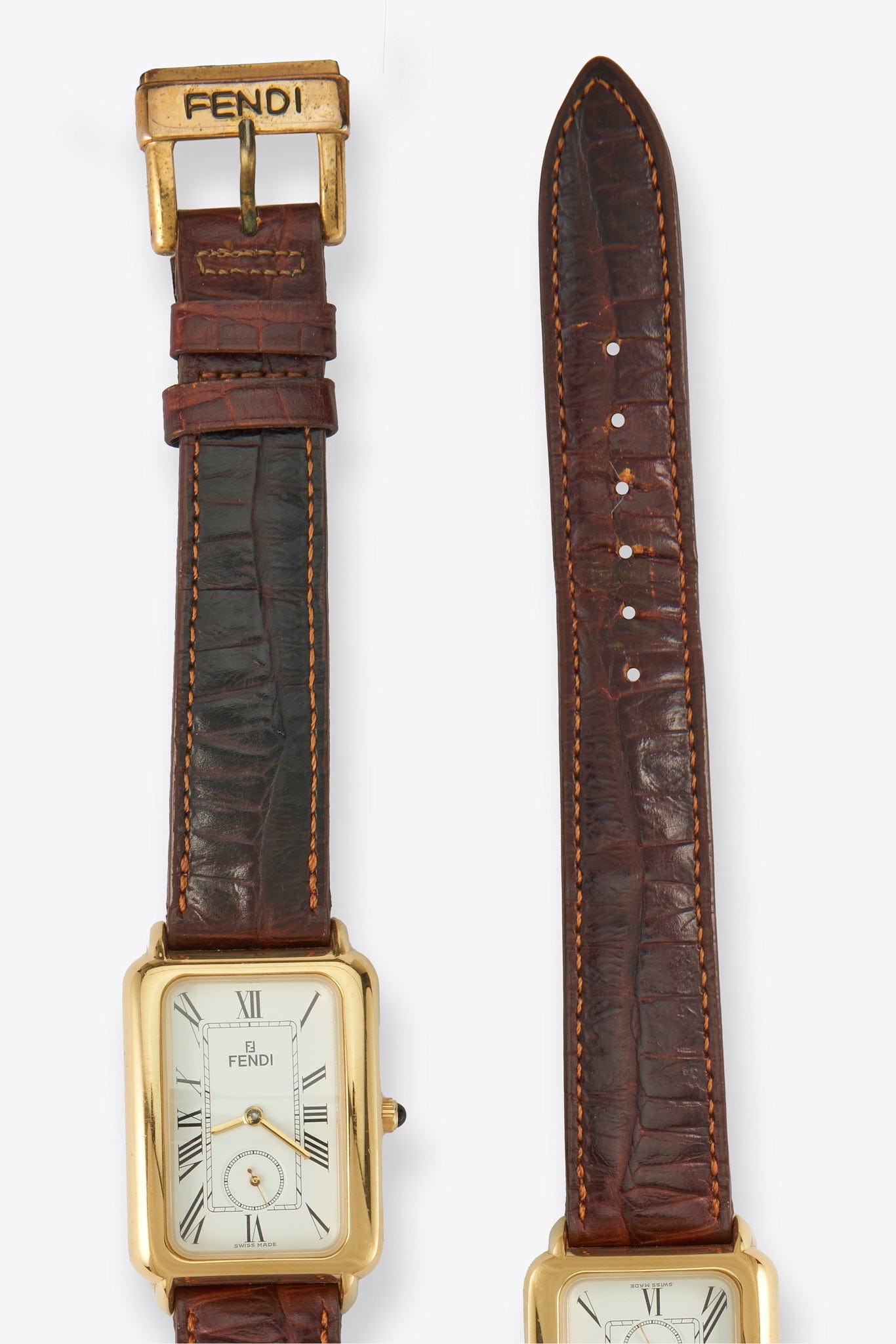 Vintage Fendi Gold Plated Watch with Brown Croc Leather Strap