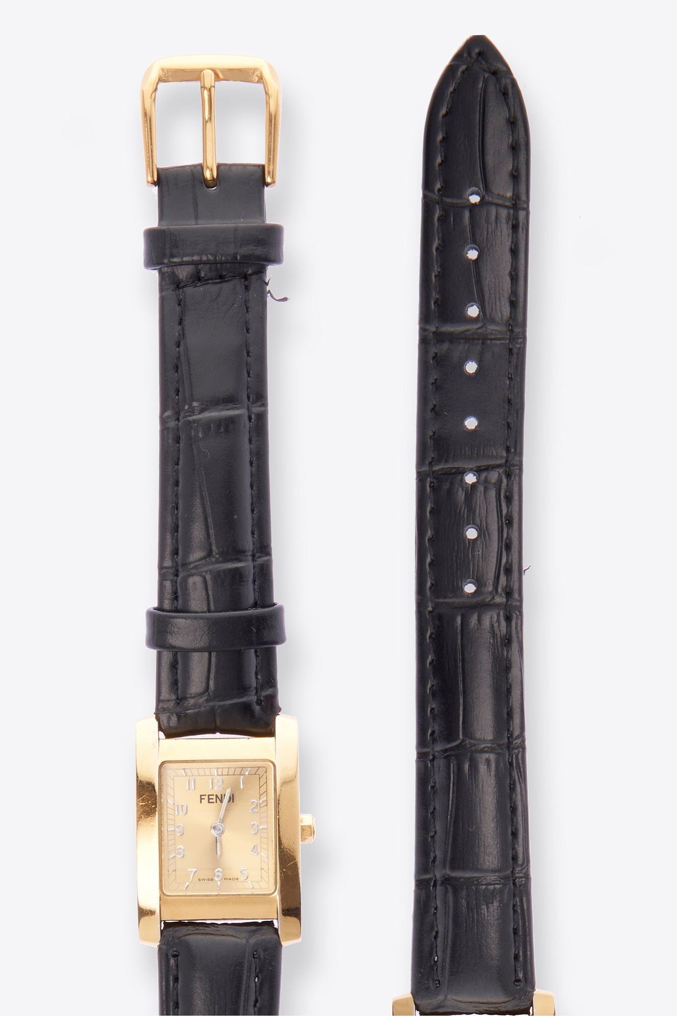 A super chic gold-plated Fendi vintage watch, with black croc embossed leather strap.