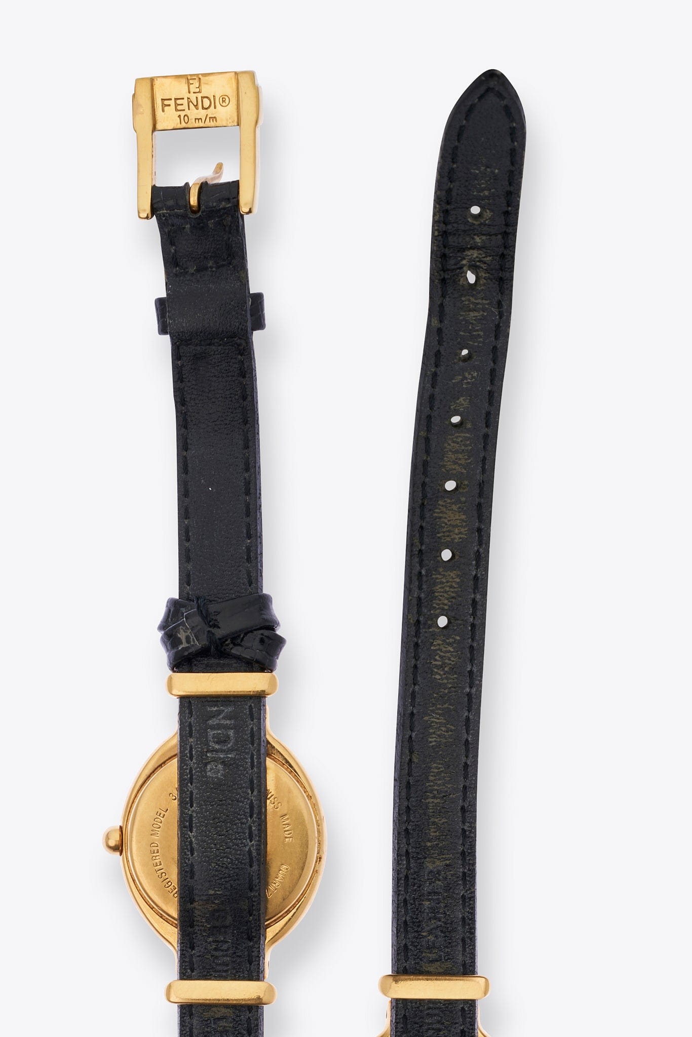 A super chic gold-plated Fendi vintage watch, with a black lizard embossed leather strap.