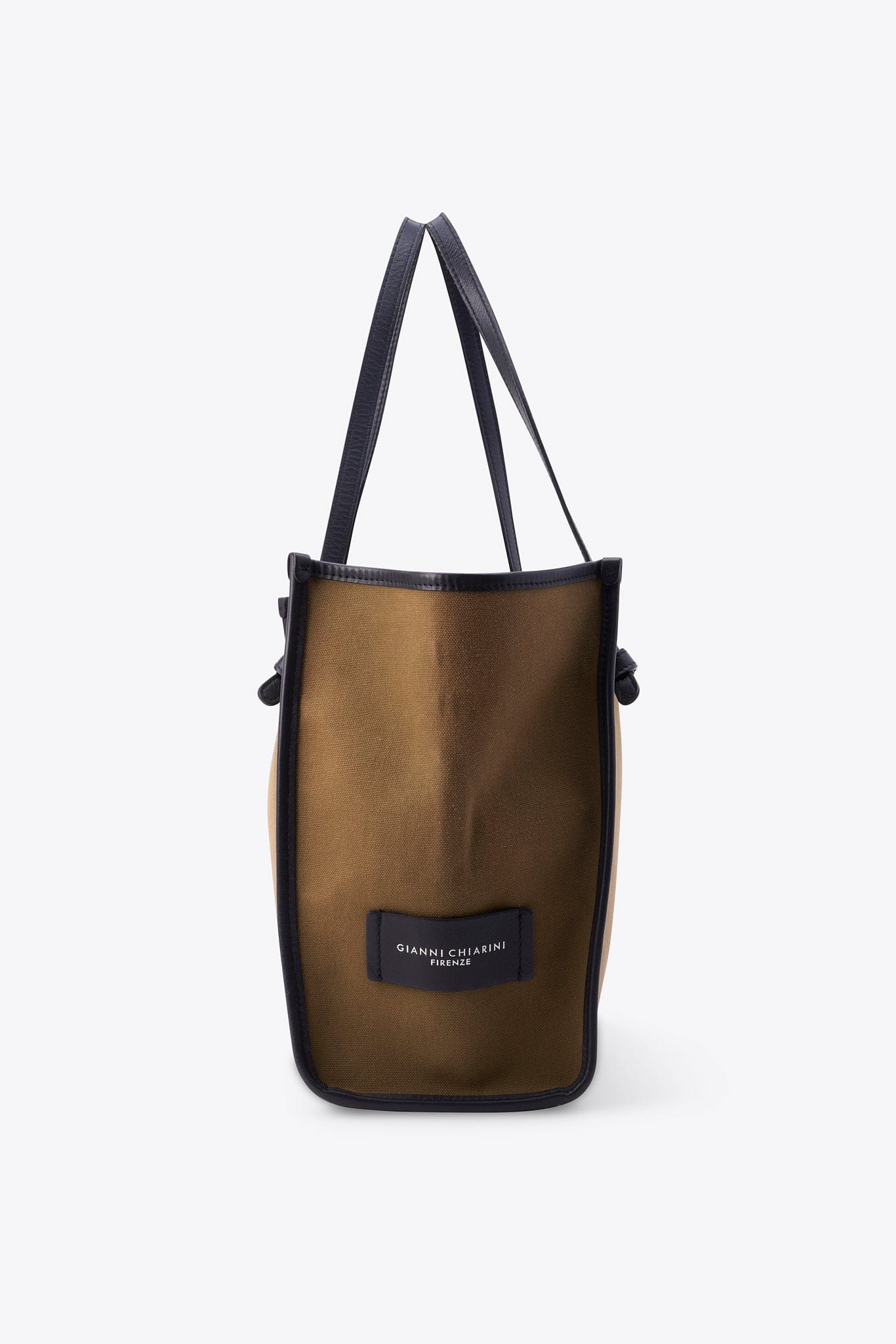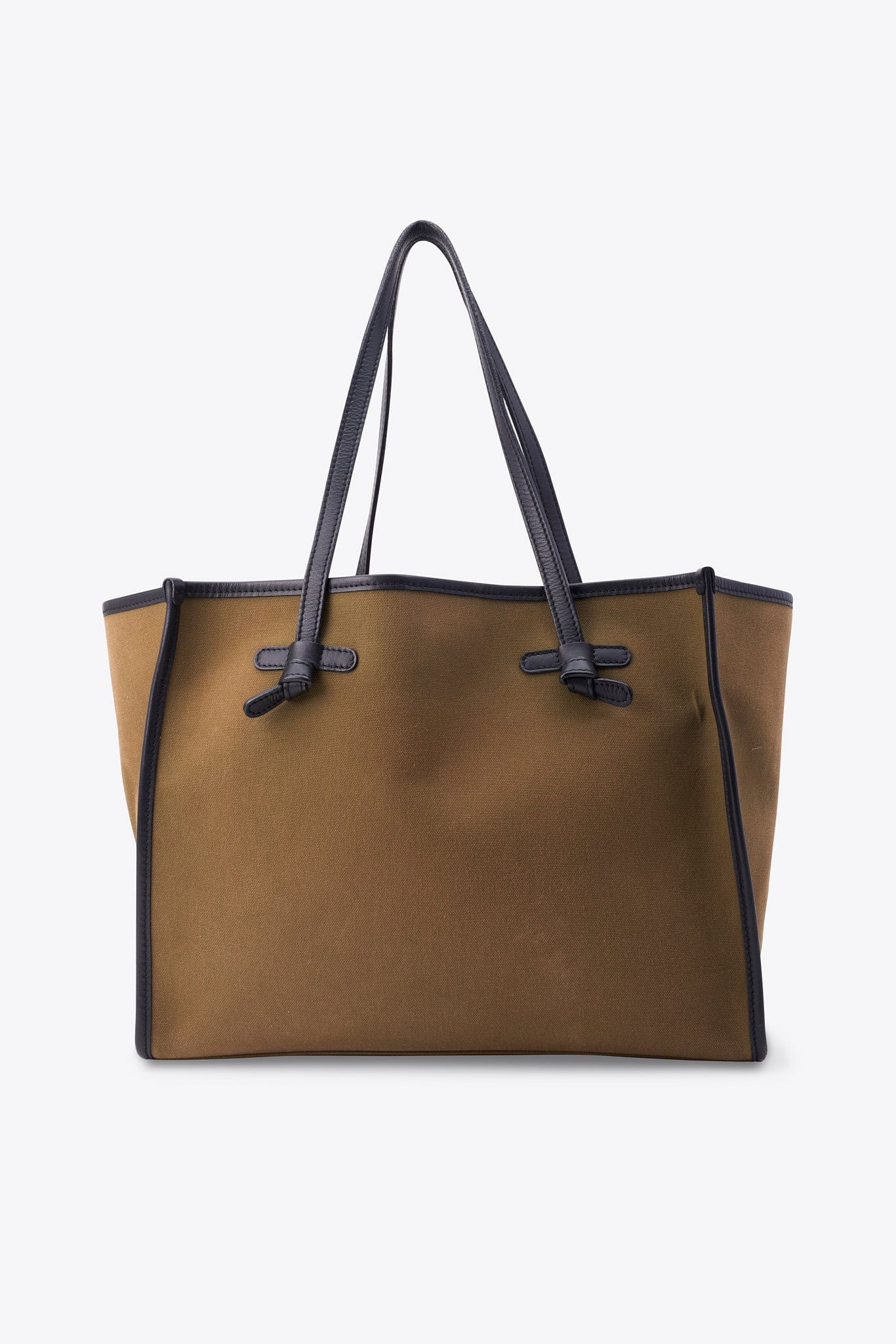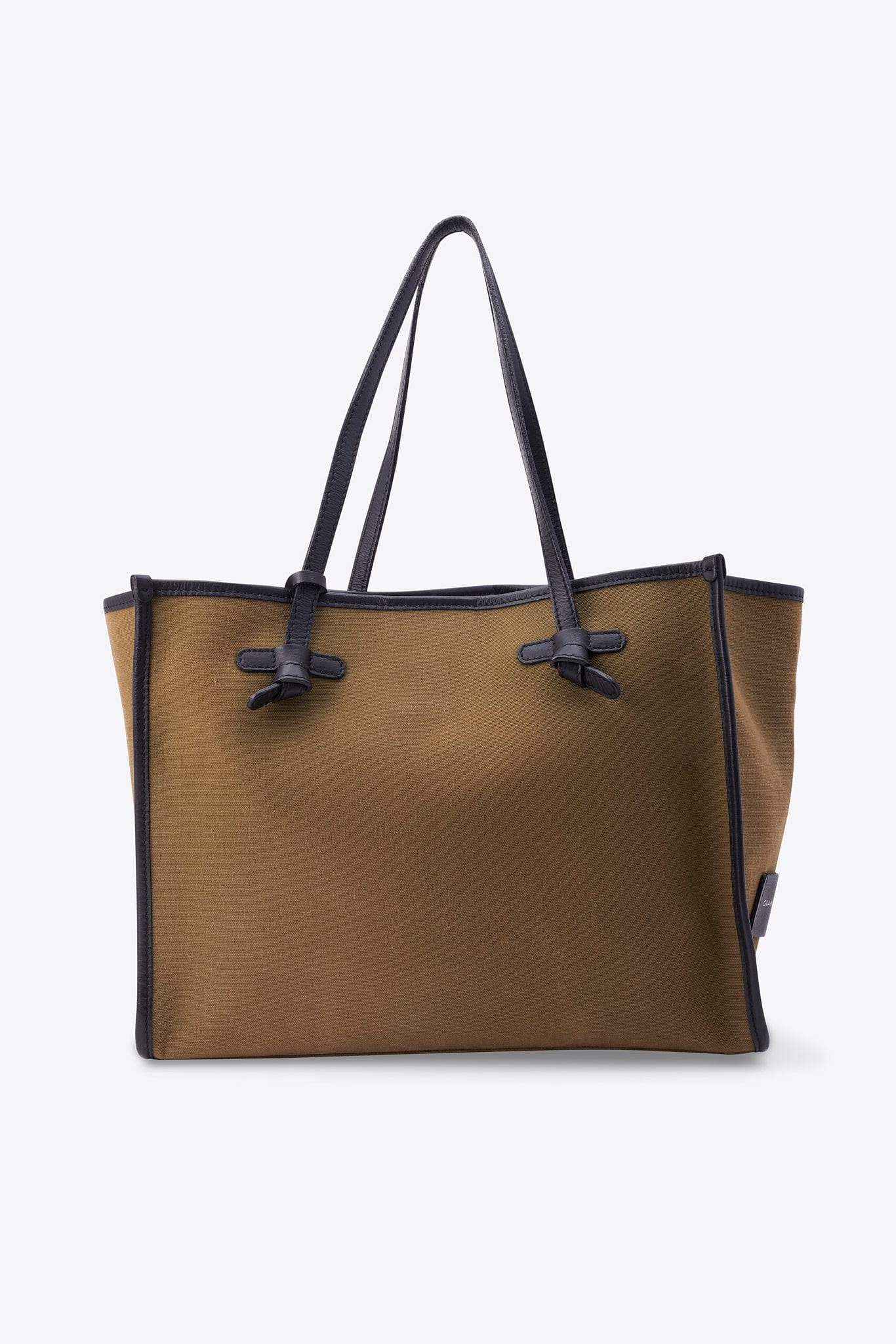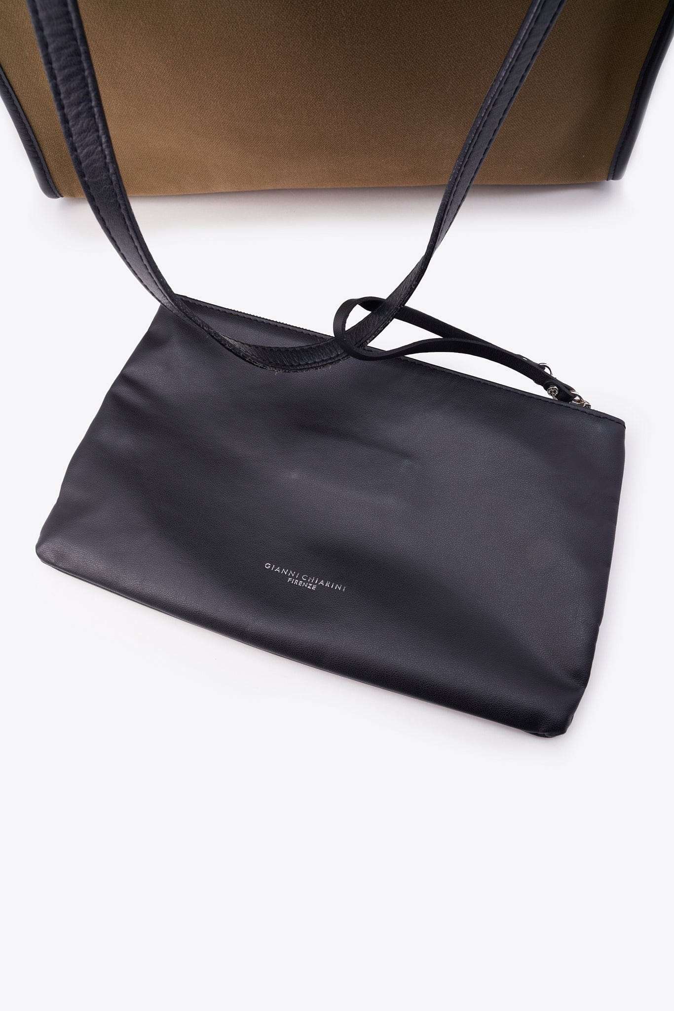 Vintage Gianni Chiarini Olive Canvas and Black Leather Tote with Pouch