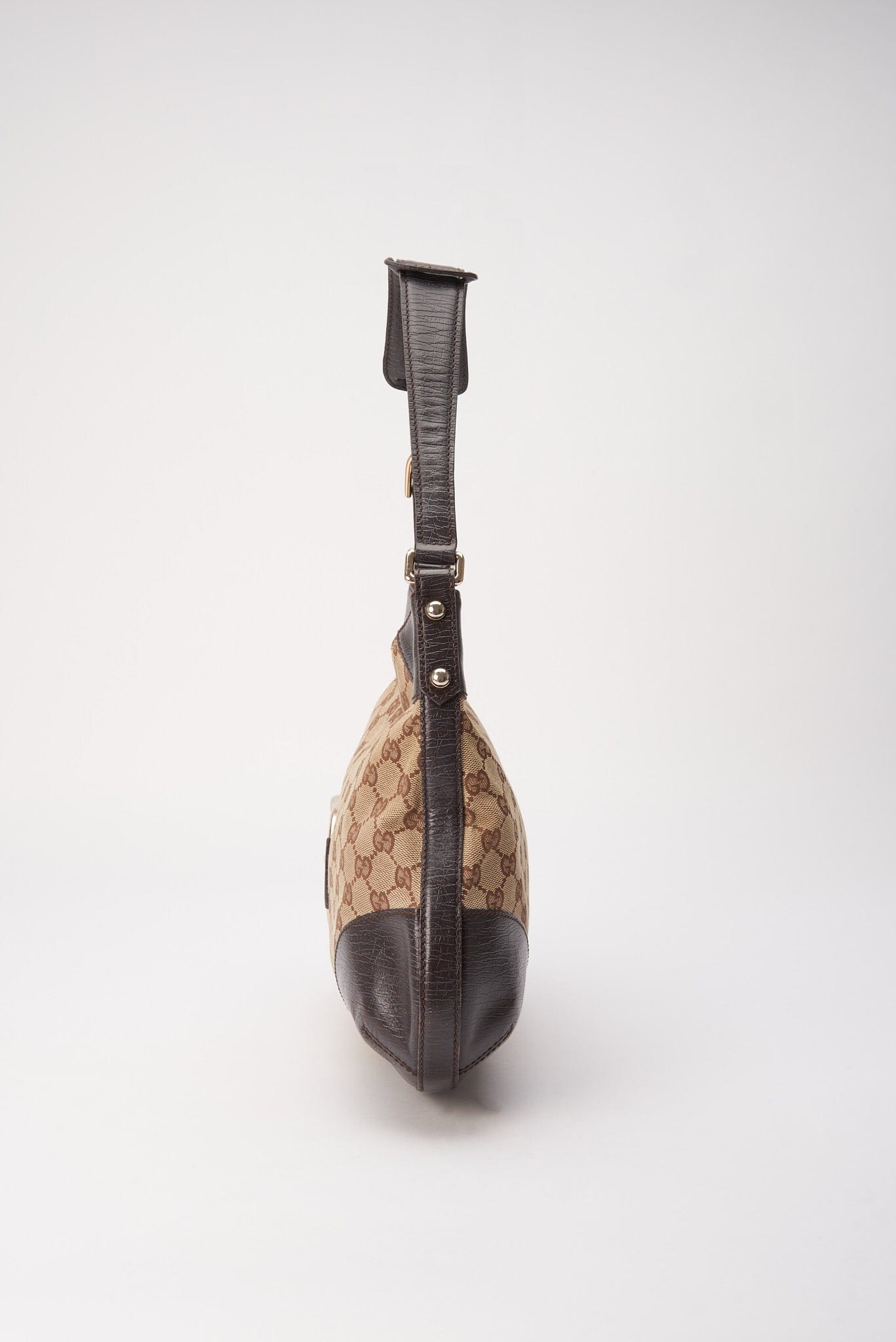 A stunning vintage Gucci bag made from the iconic GG beige/brown canvas with brown leather trim and gold hardware.