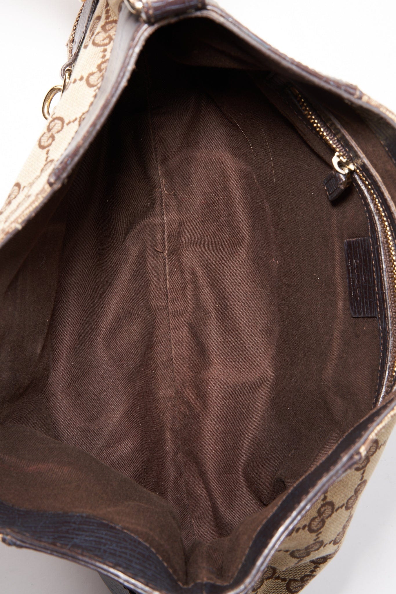 Inside the bag is lined with a brown cotton lining and there is a zipped pocket for valuables.