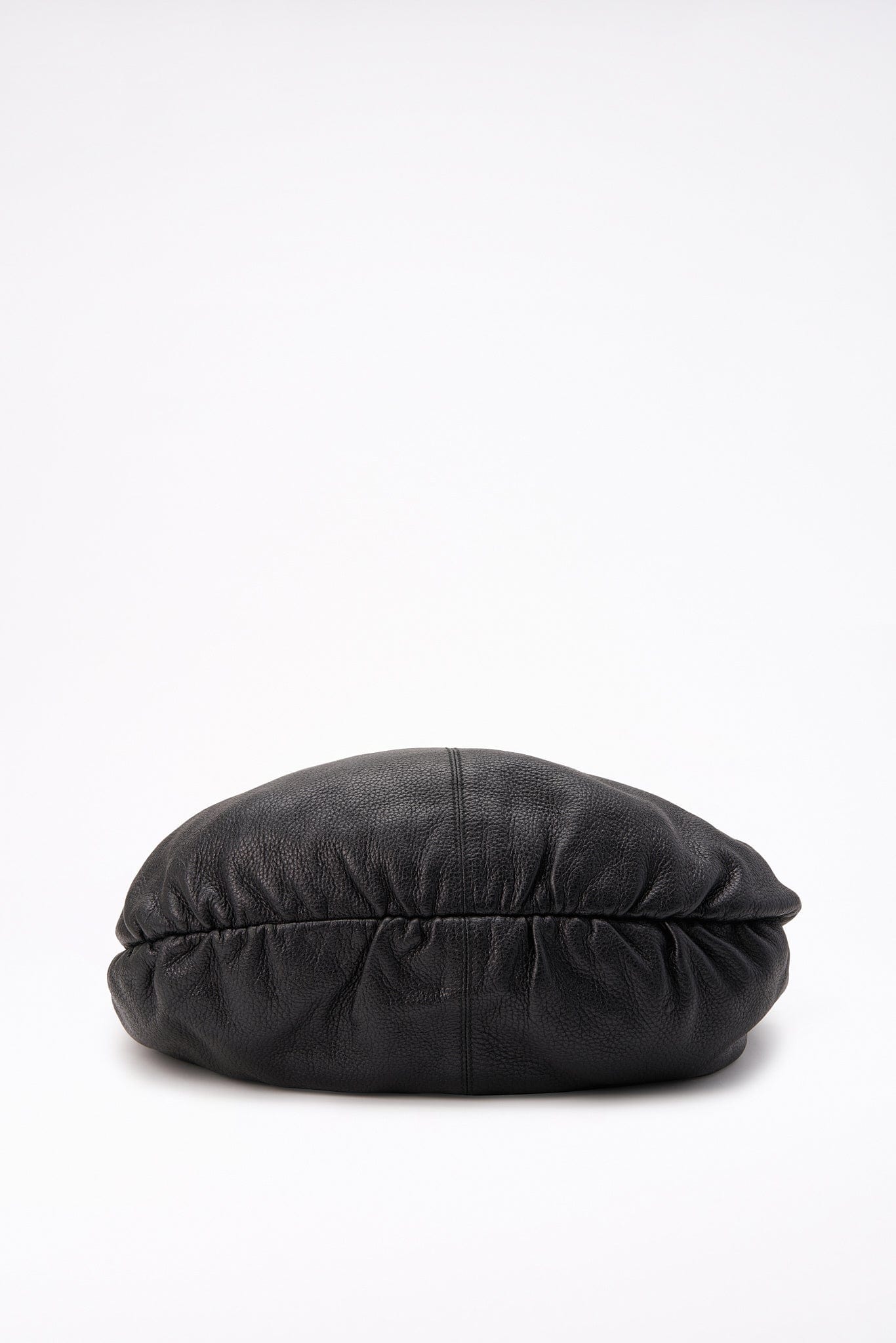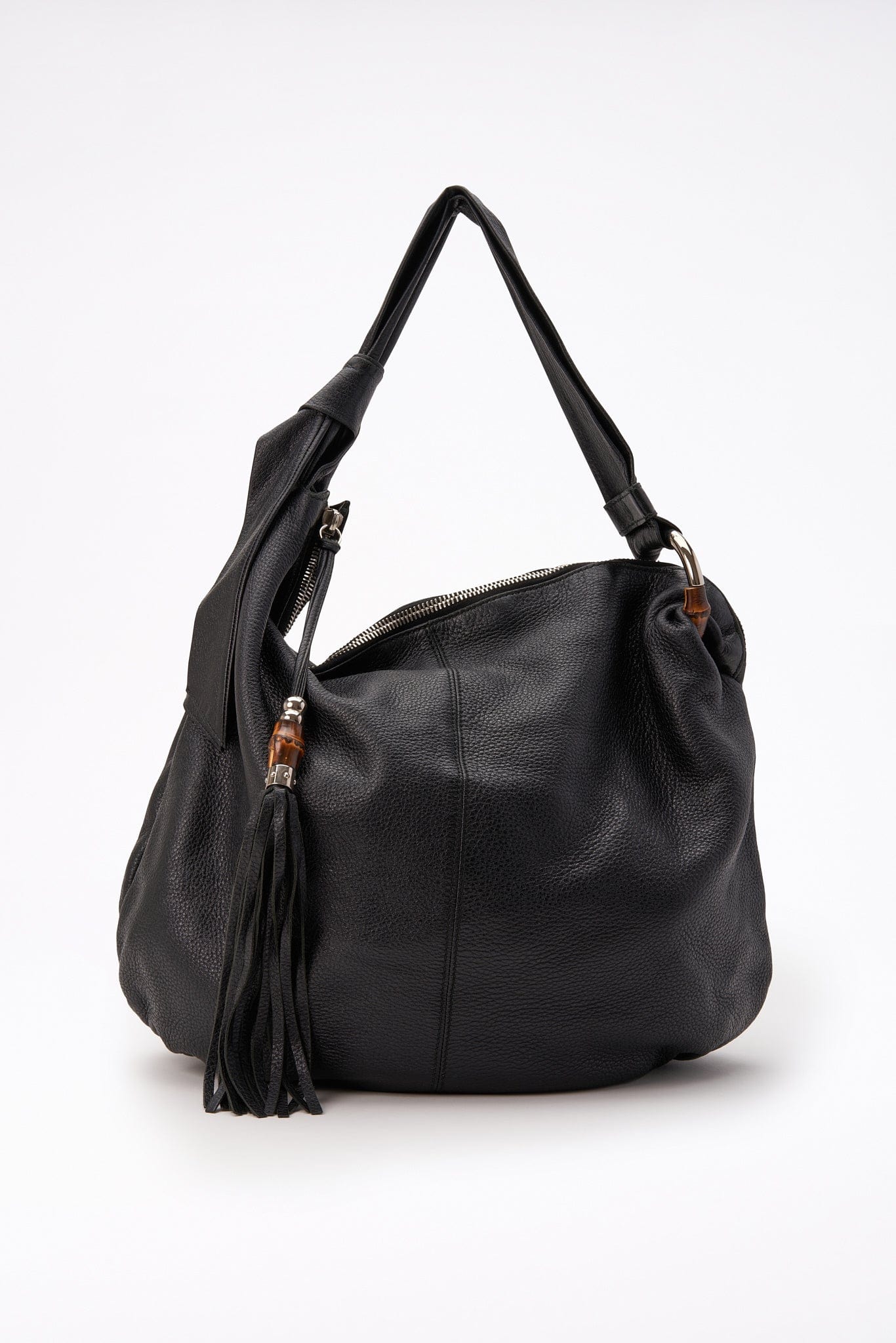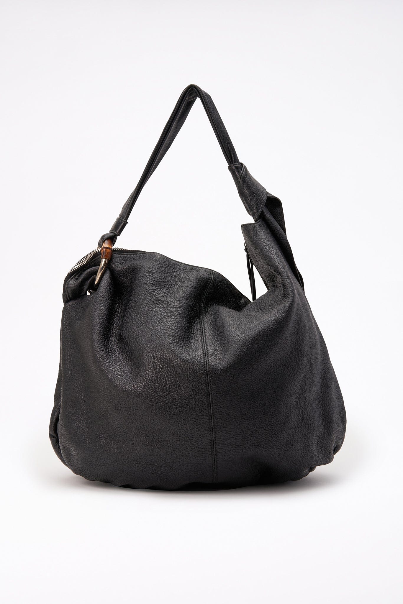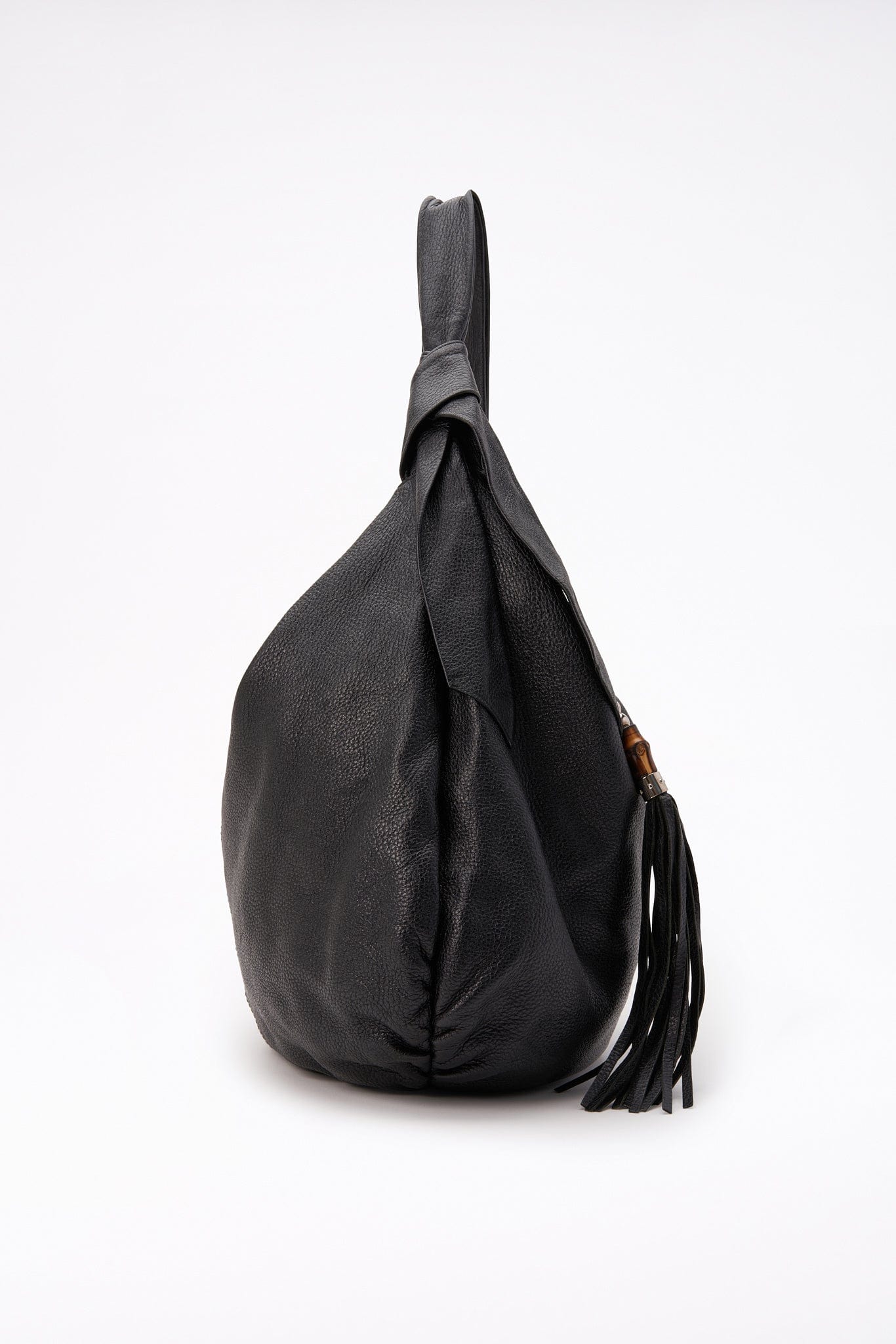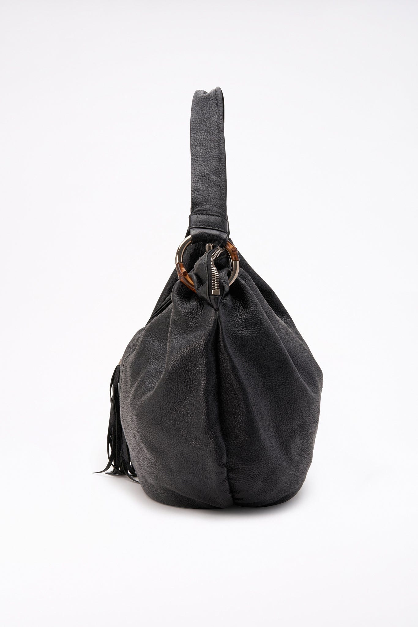 Vintage Gucci Black Leather Hobo Bag With Bamboo Detail