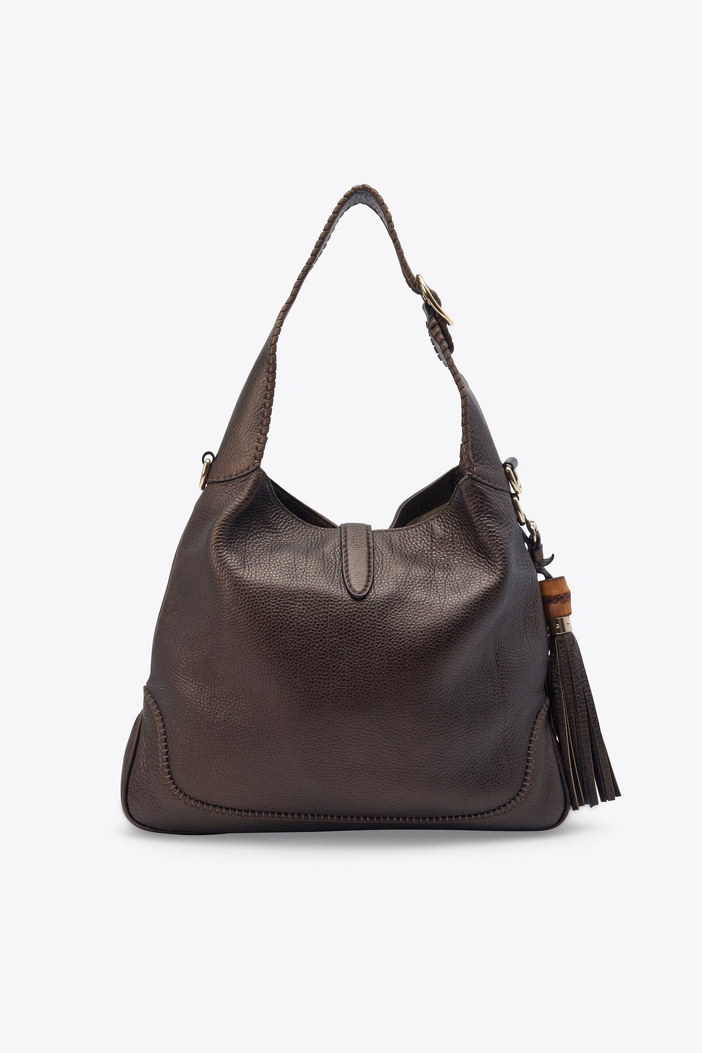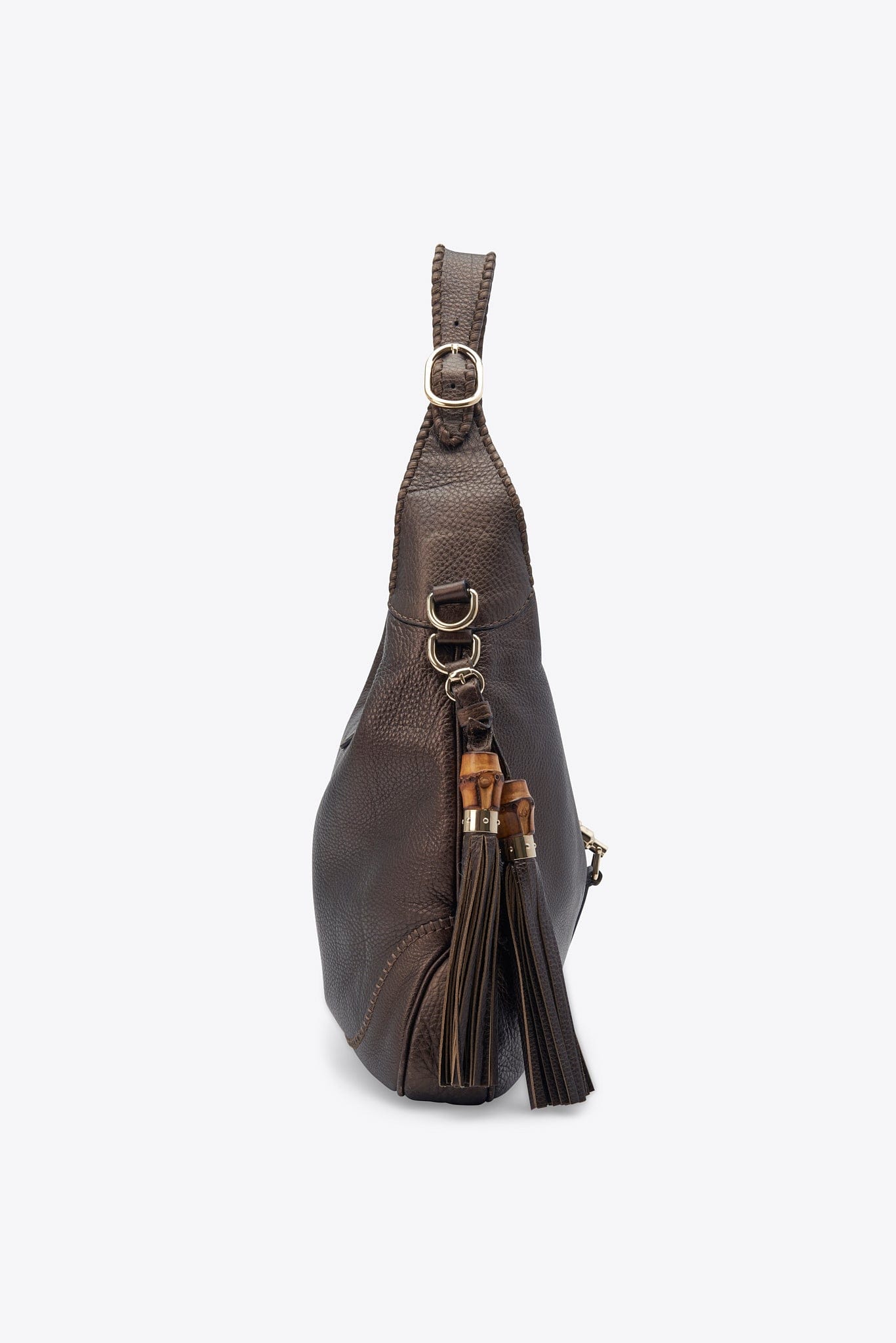 Vintage Gucci Brown Leather Bag With Bamboo Tassels