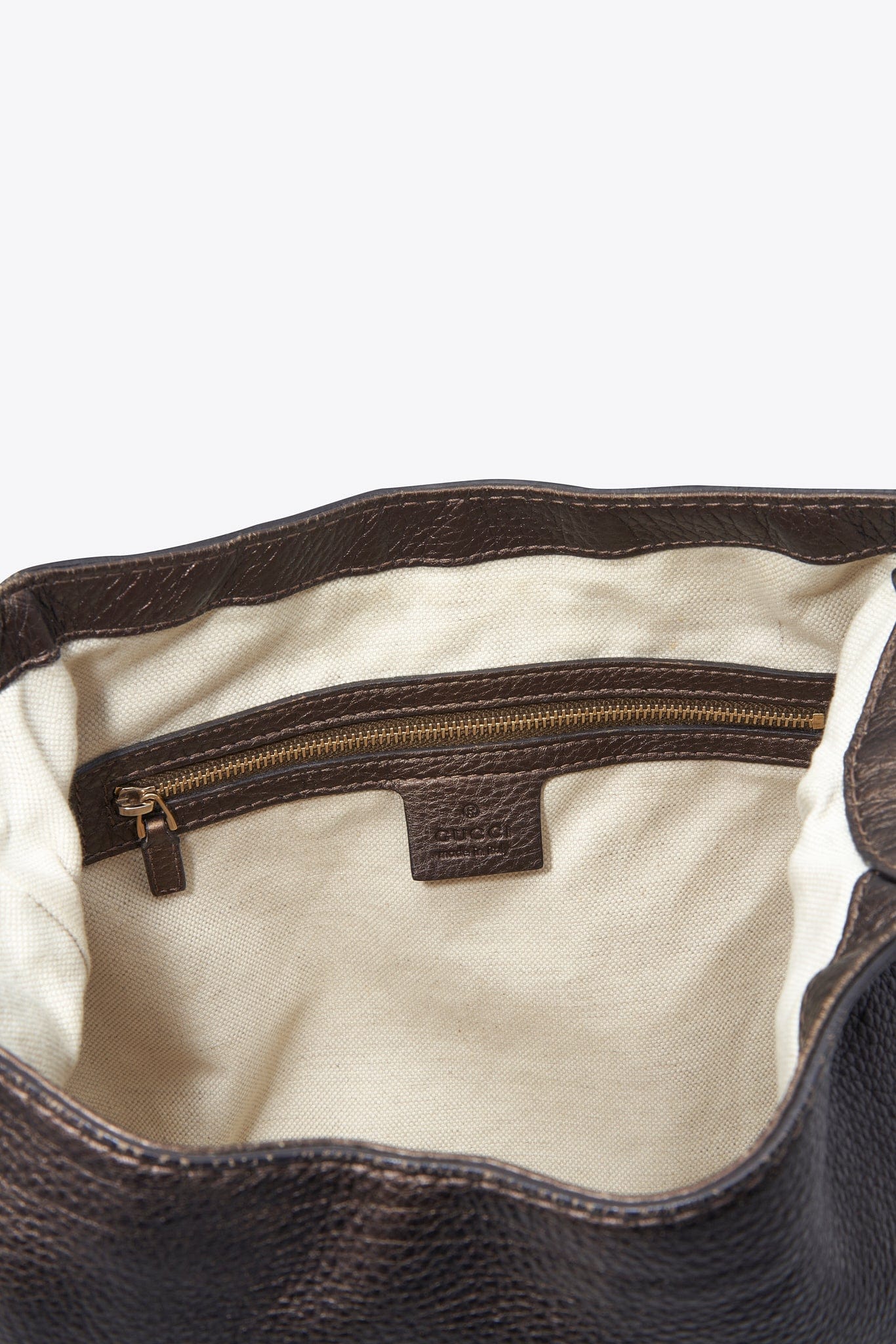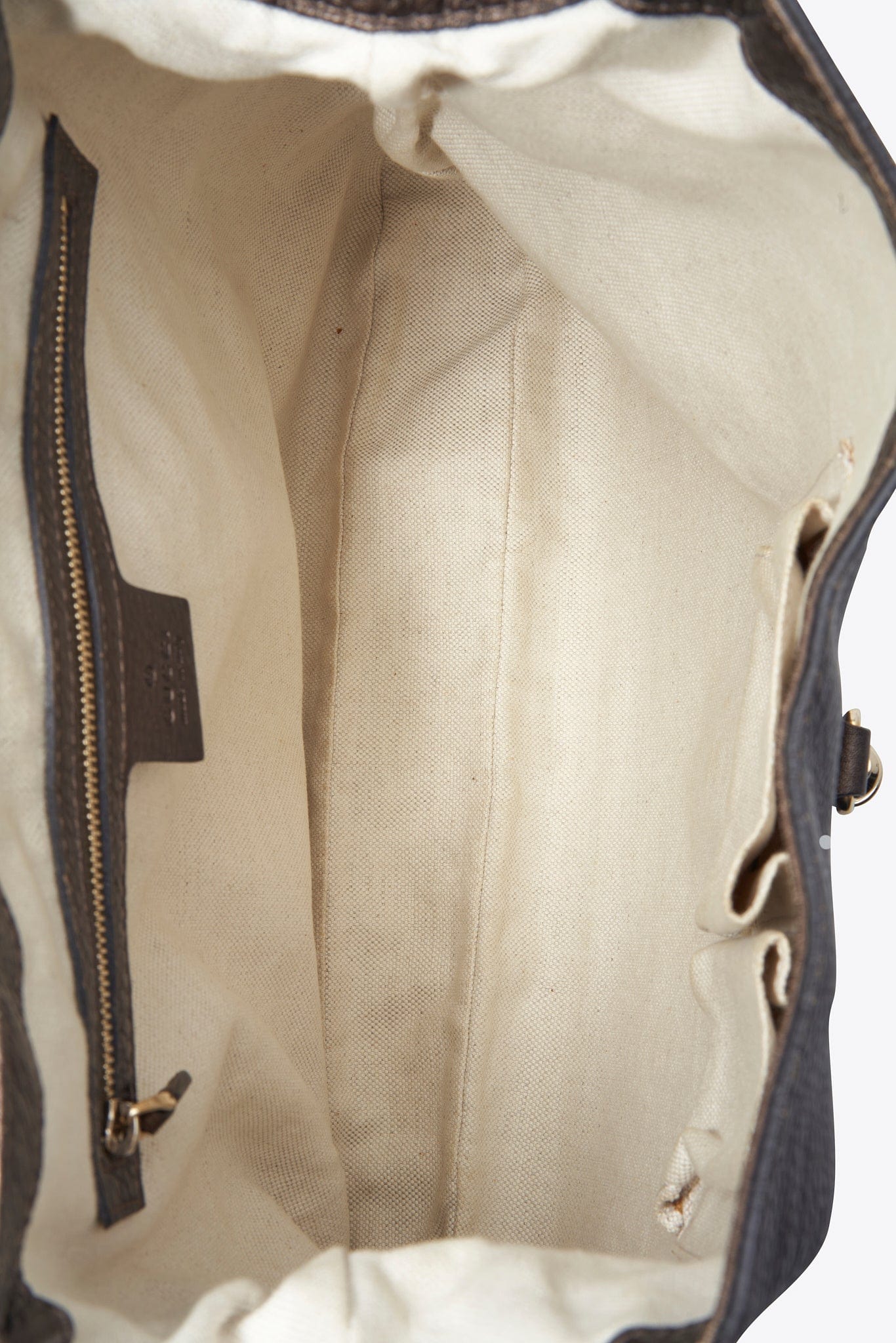 Inside the bag is lined with a beige linen and there is a zipped pocket for valuables.