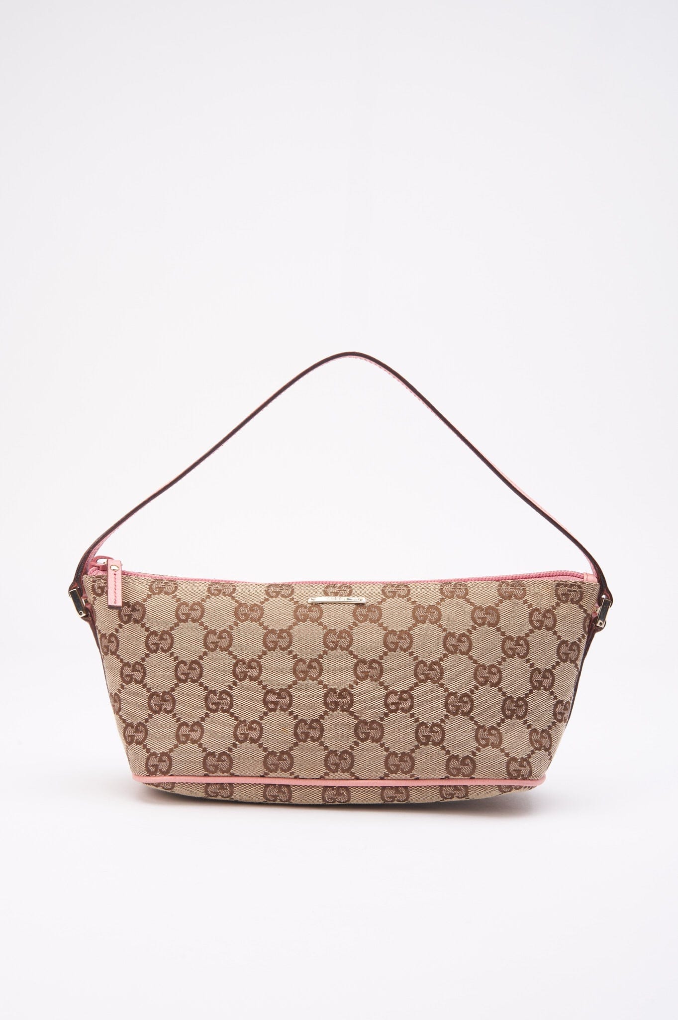 Vintage Gucci Boat Pochette Bag with Pink Leather Trim