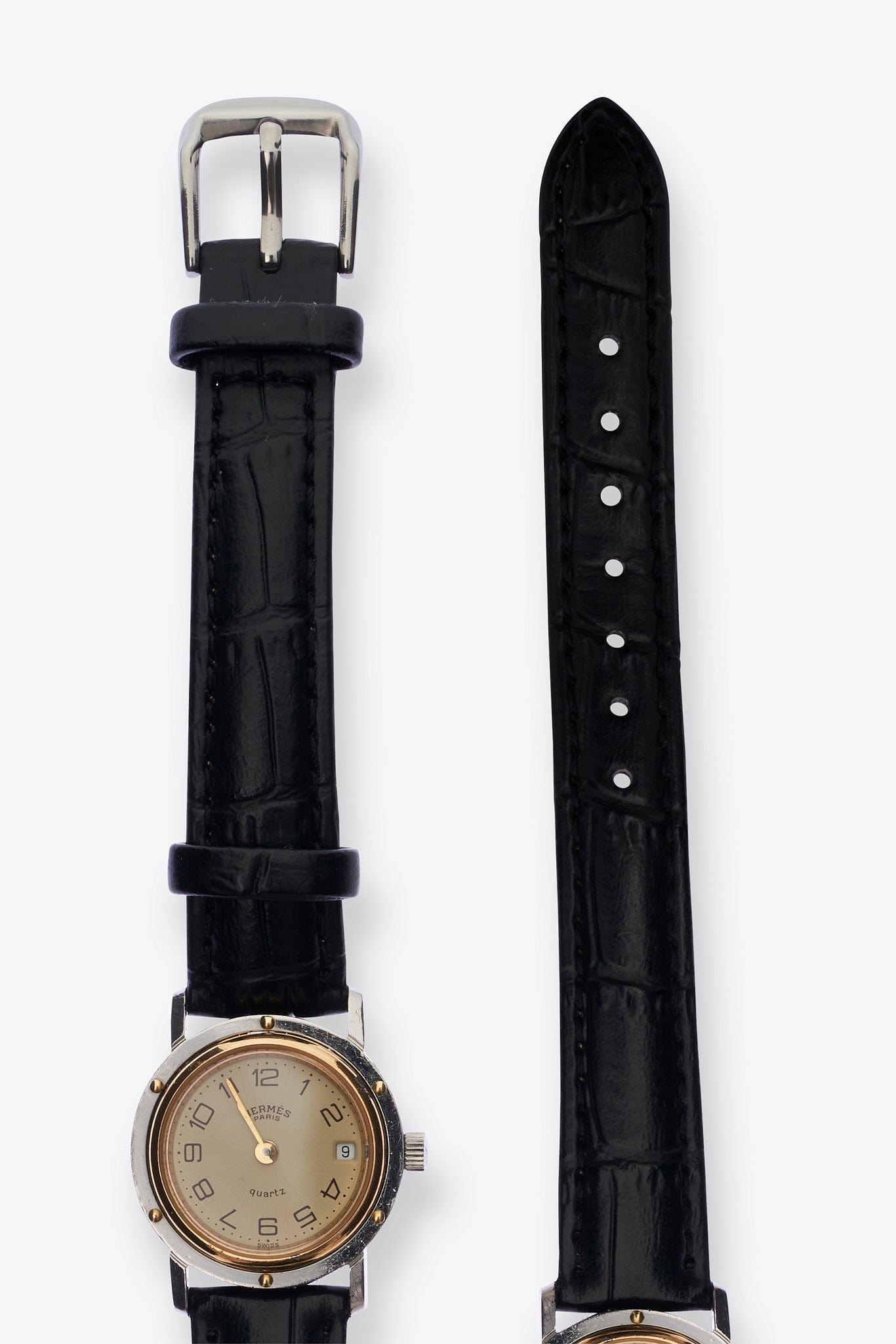 Vintage Hermès Arceau Gold Plated Watch With Black Croc Leather Strap