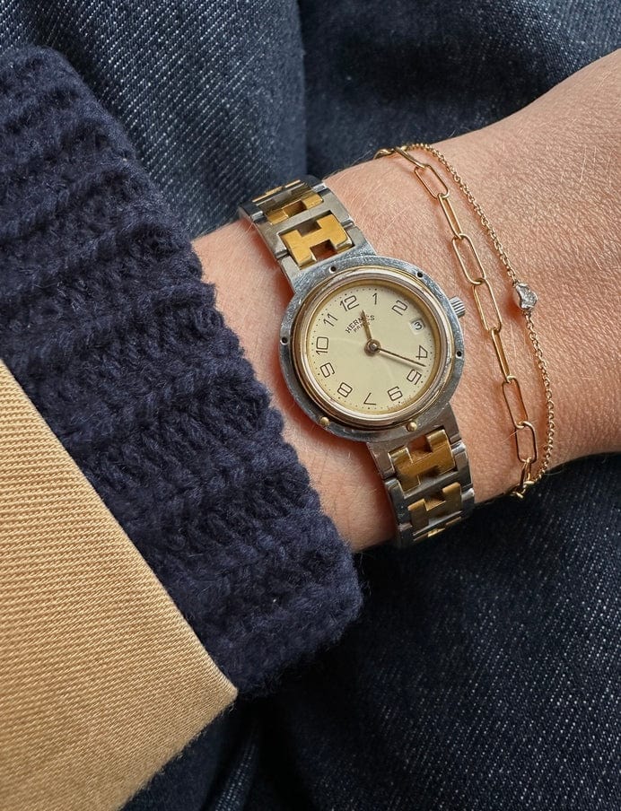 A super chic gold and silver plated Hermès vintage Clipper watch.